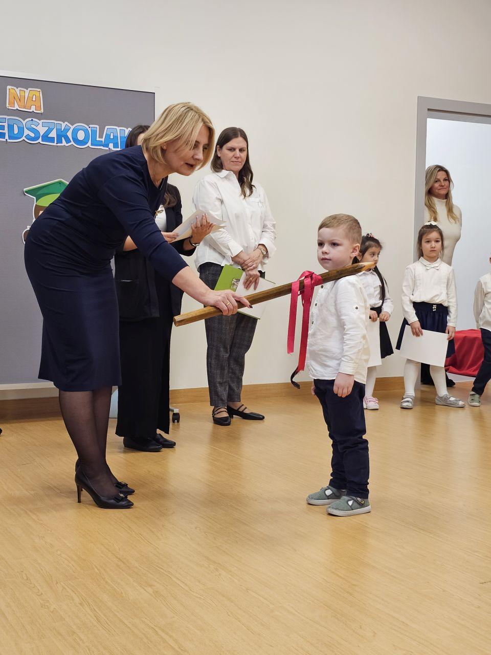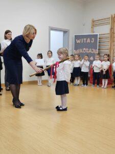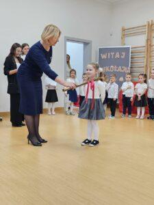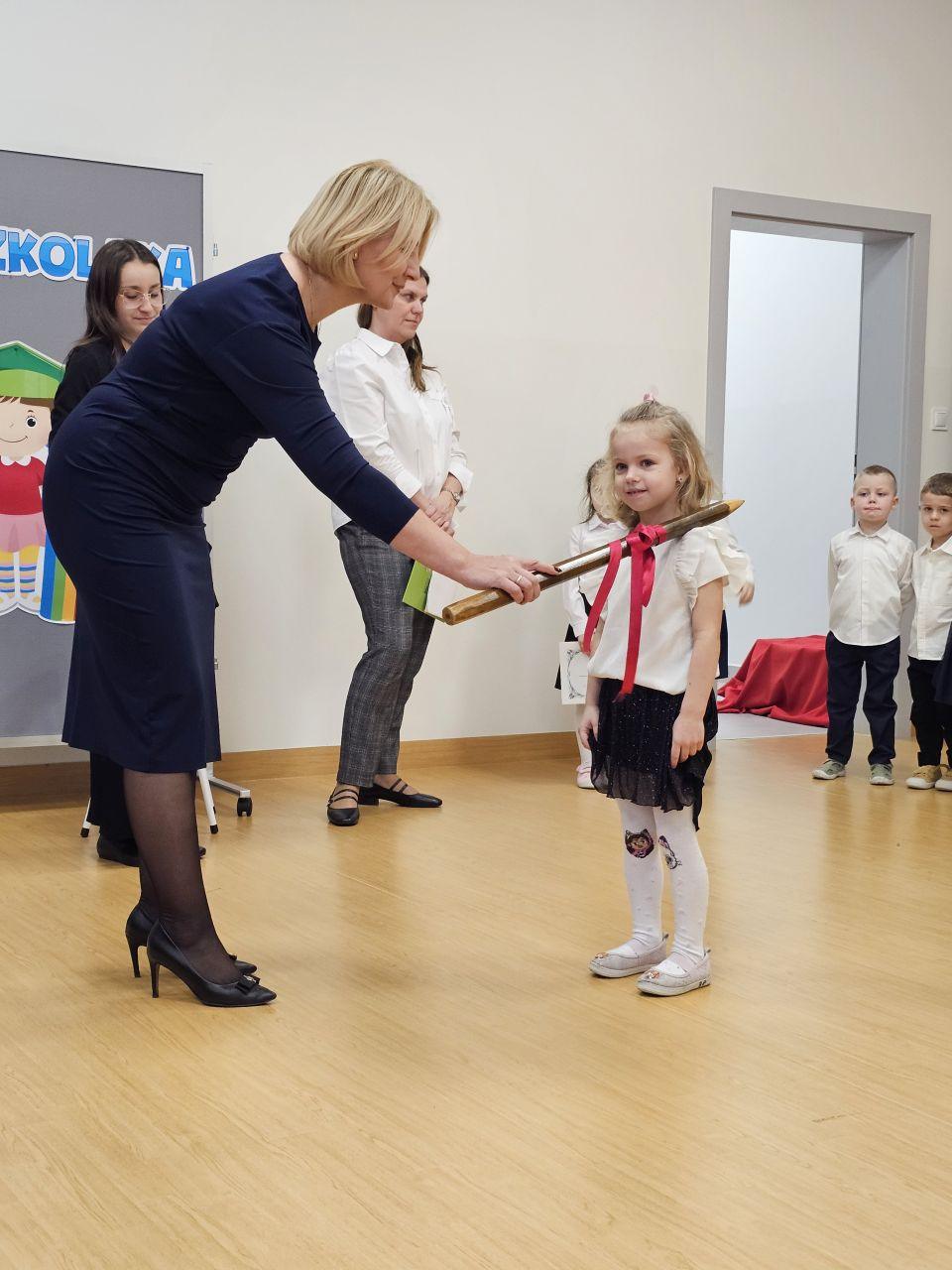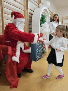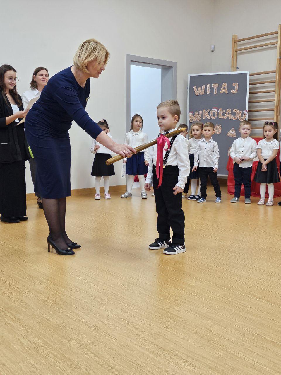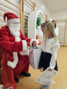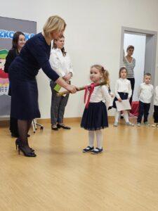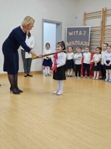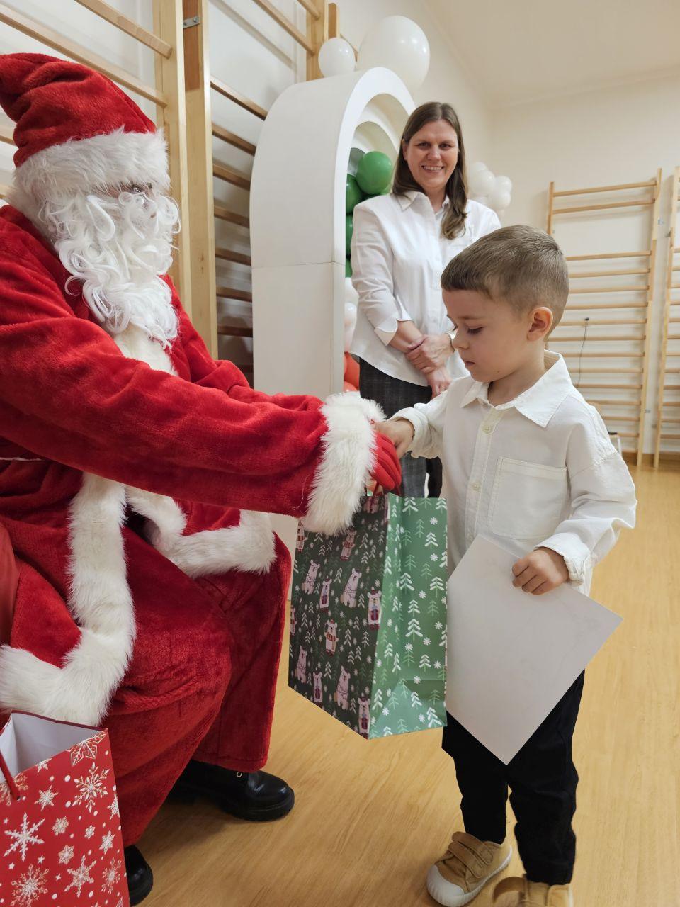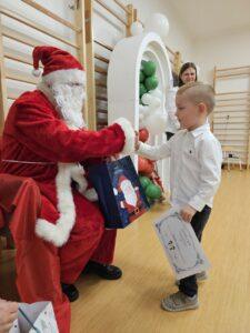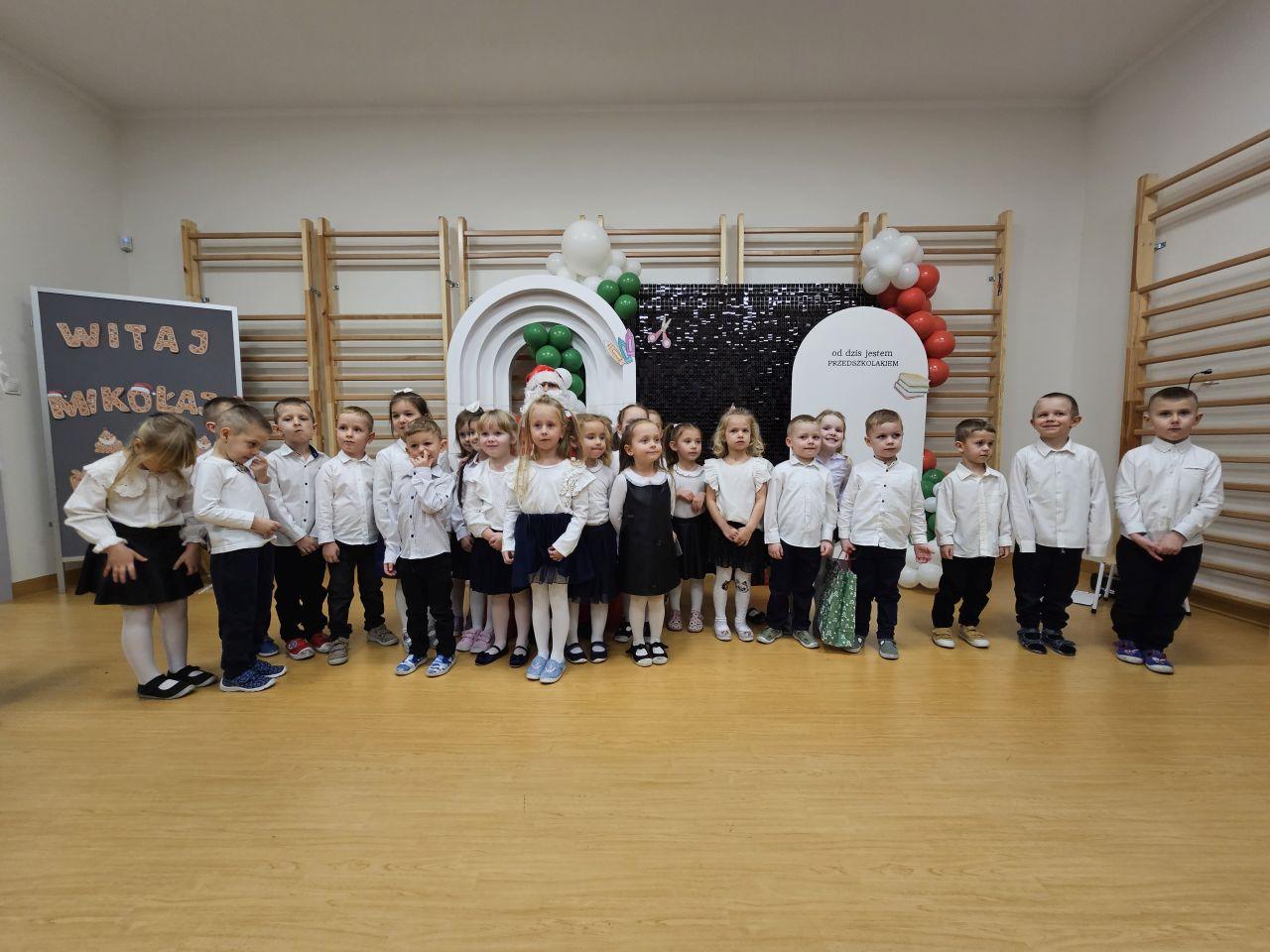 6 grudnia był to wyjątkowy dzień dla naszych przedszkolaków, na który czekały z ogromną niecierpliwością. W progi naszego przedszkola zawitał niezwykły gość – św. Mikołaj, który obdarował dzieci mocą prezentów. Dzień ten był także wyjątkowy z uwagi na uroczystość Pasowania na Przedszkolaka. Dzieci z grup Stokrotki i Niezapominajki po akcie pasowania, czyli dotknięciu ramienia każdego malucha ogromną kredką przez Panią Dyrektor – Małgorzatę Trelkę, stały się pełnoprawnymi przedszkolakami.