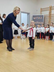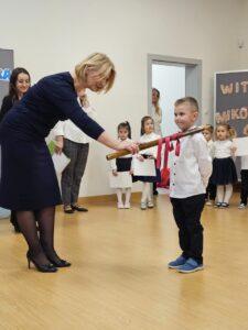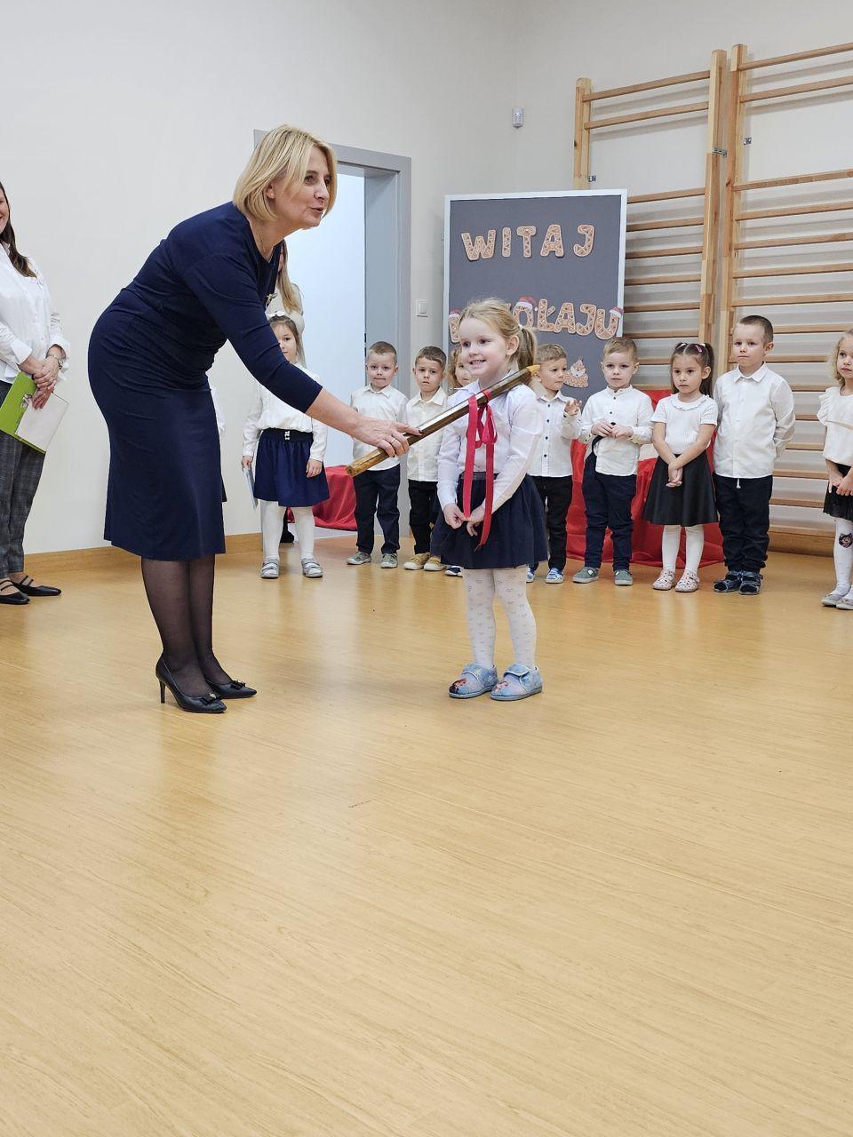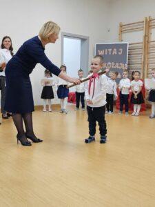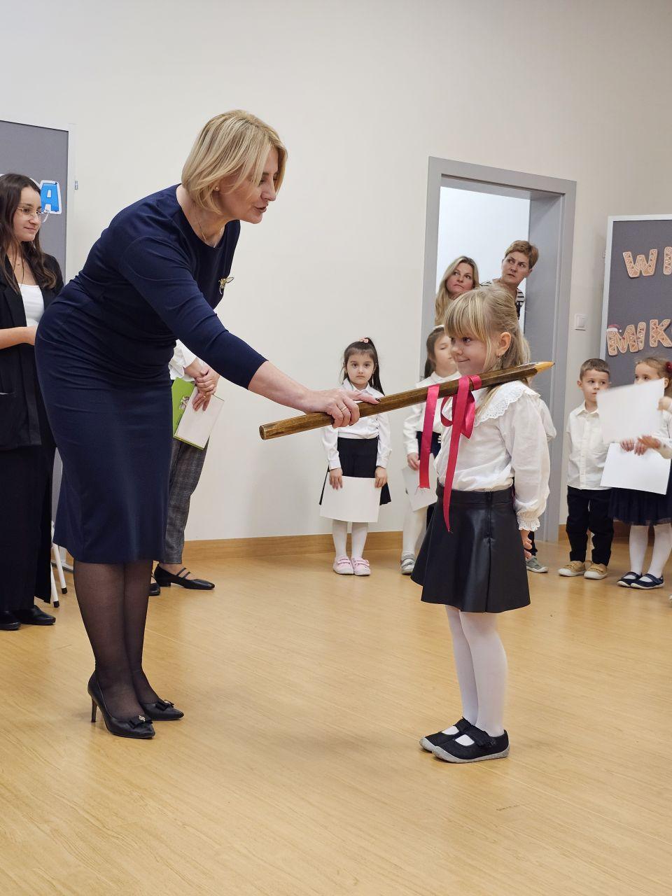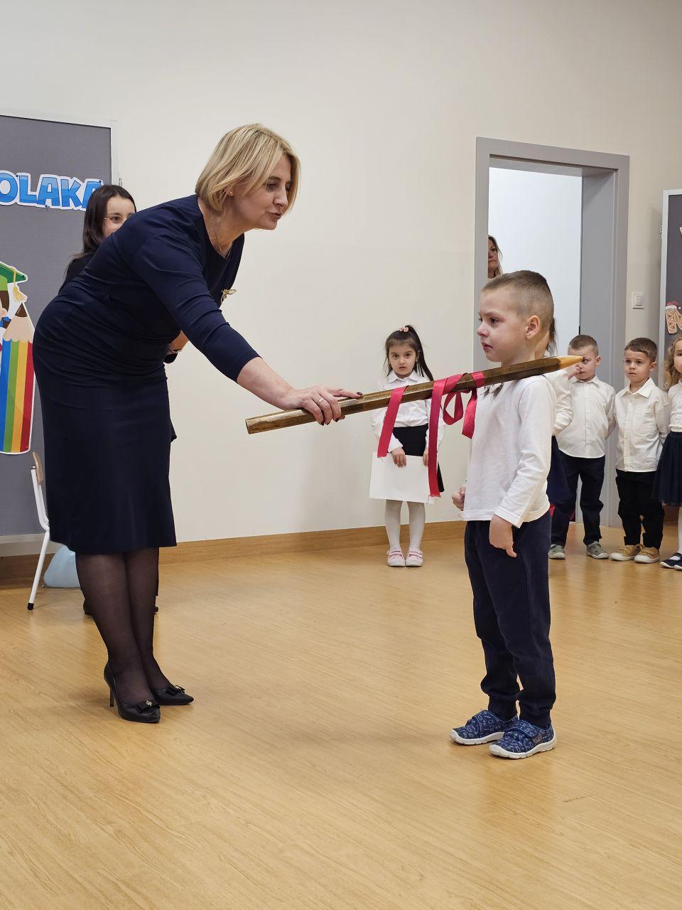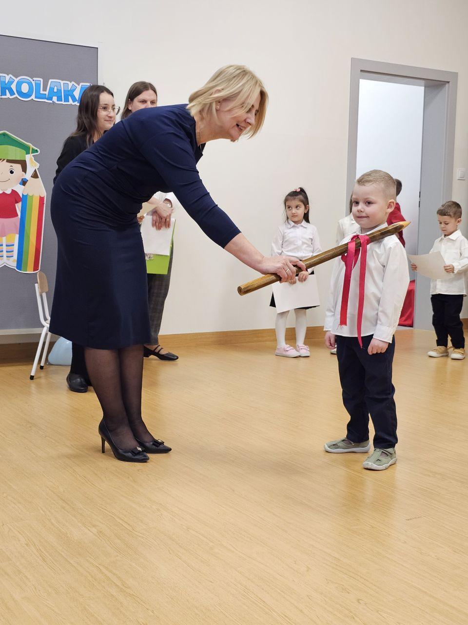 6 grudnia był to wyjątkowy dzień dla naszych przedszkolaków, na który czekały z ogromną niecierpliwością. W progi naszego przedszkola zawitał niezwykły gość – św. Mikołaj, który obdarował dzieci mocą prezentów. Dzień ten był także wyjątkowy z uwagi na uroczystość Pasowania na Przedszkolaka. Dzieci z grup Stokrotki i Niezapominajki po akcie pasowania, czyli dotknięciu ramienia każdego malucha ogromną kredką przez Panią Dyrektor – Małgorzatę Trelkę, stały się pełnoprawnymi przedszkolakami.