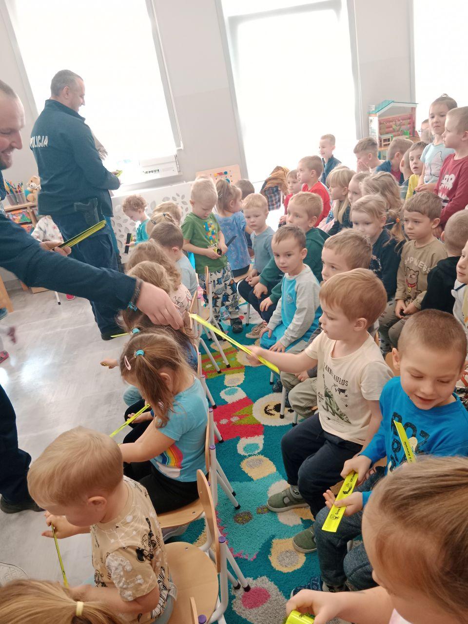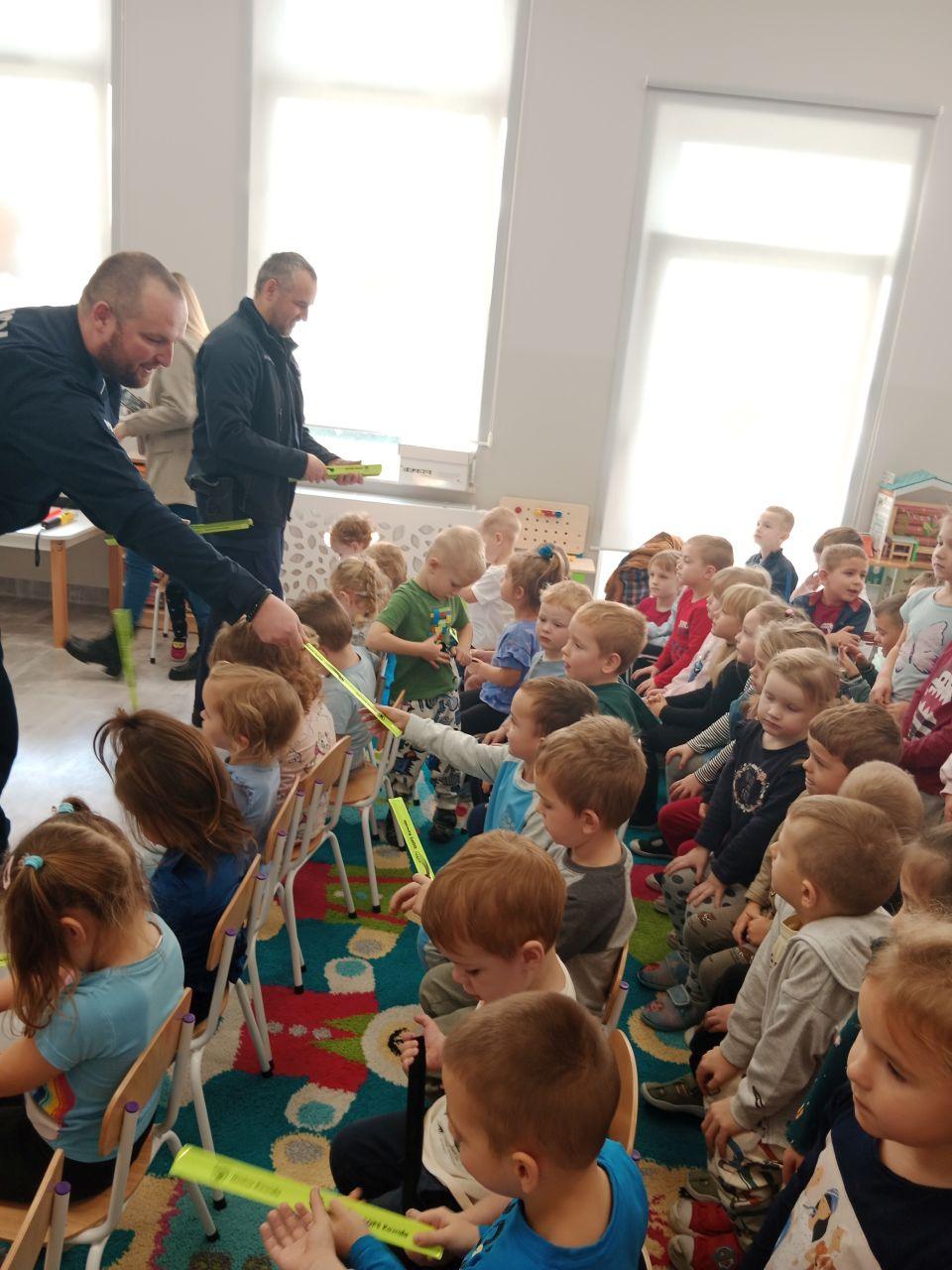 Na zakończenie spotkania dzieci otrzymały drobne upominki w postaci odblasków.