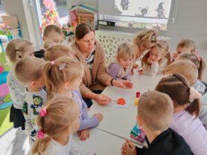w świecie barw i doznań sensorycznych. Nauczanie wielozmysłowe jest w tym przypadku najlepszą formą ich zapamiętywania i przede wszystkim dobrą zabawą. Każdy miesiąc roku przedszkolnego ma odpowiadać jednemu kolorowi, zgodnie z planem zaproponowanym przez organizatora. Dotychczas zostały zrealizowane dwa kolory: żółty (wrzesień), pomarańczowy (październik), a już niedługo następne kolory.