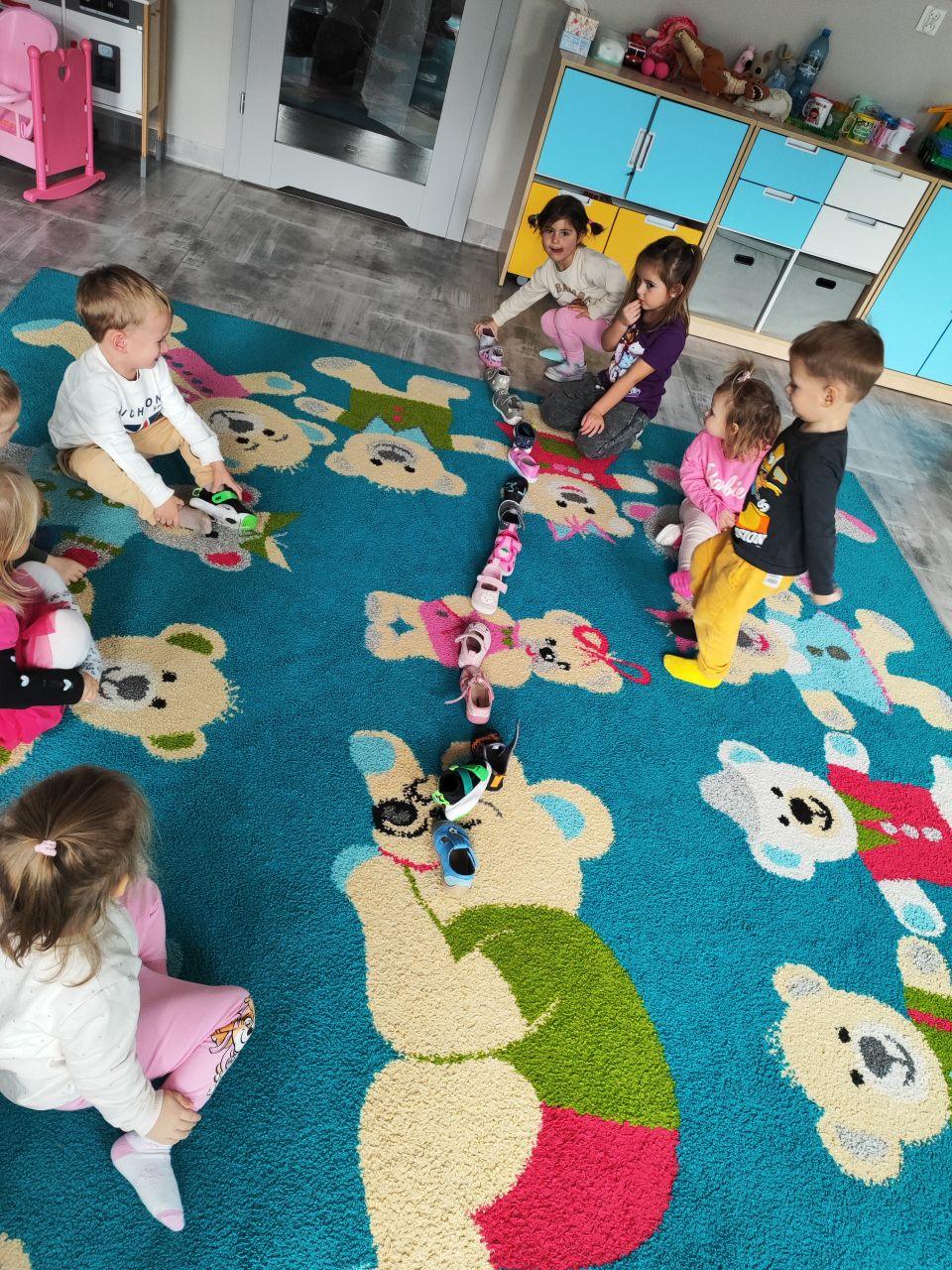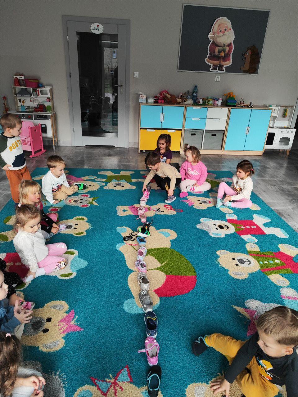Z dużym zaciekawieniem uczestniczyły w zabawach, takich jak „Kim zostanę w przyszłości?” czy tradycyjne ustawianie butów, które jak zawsze wywołało wiele emocji i uśmiechów.