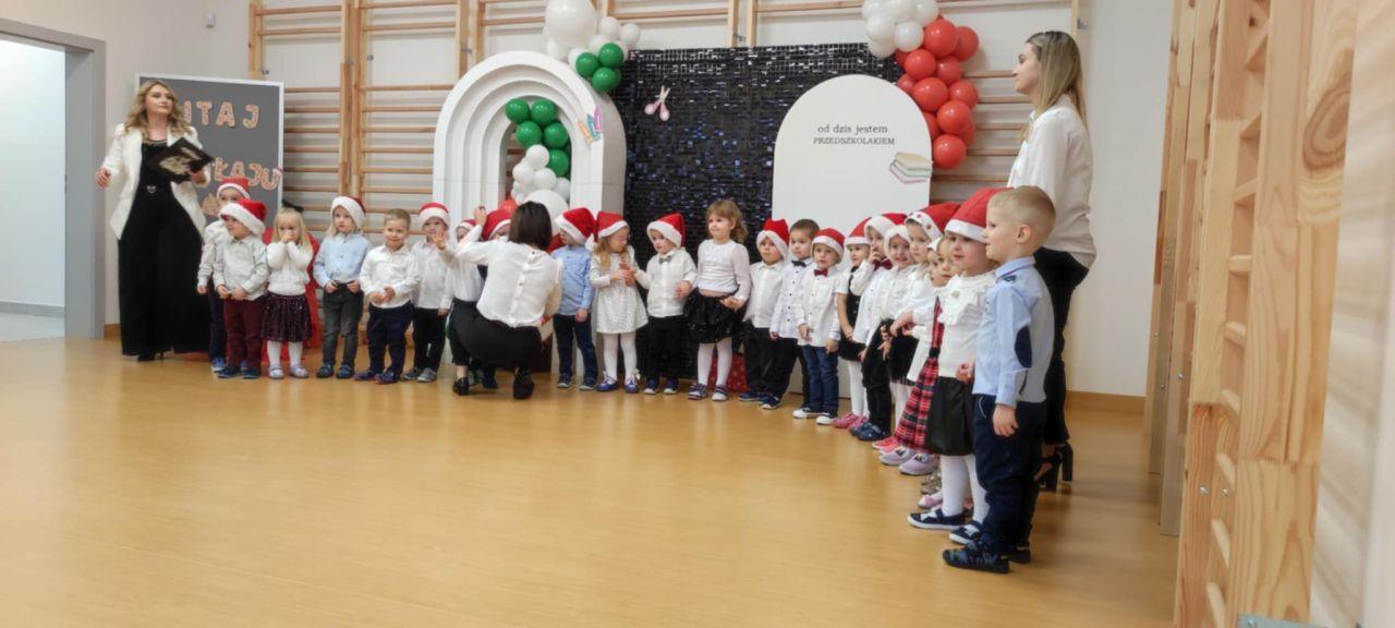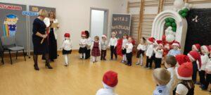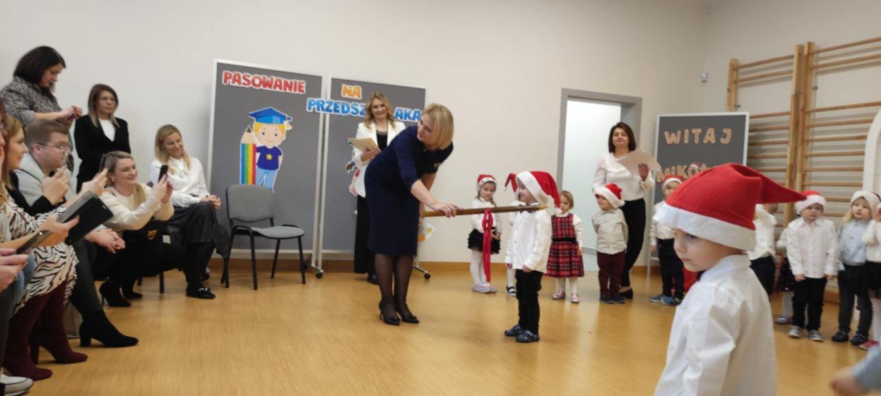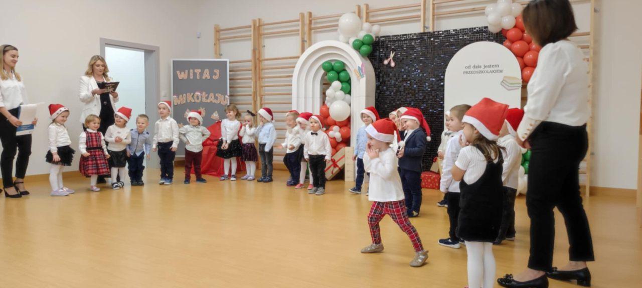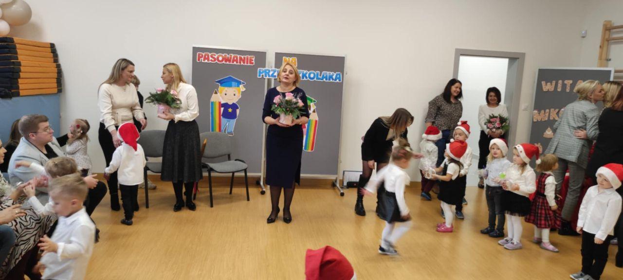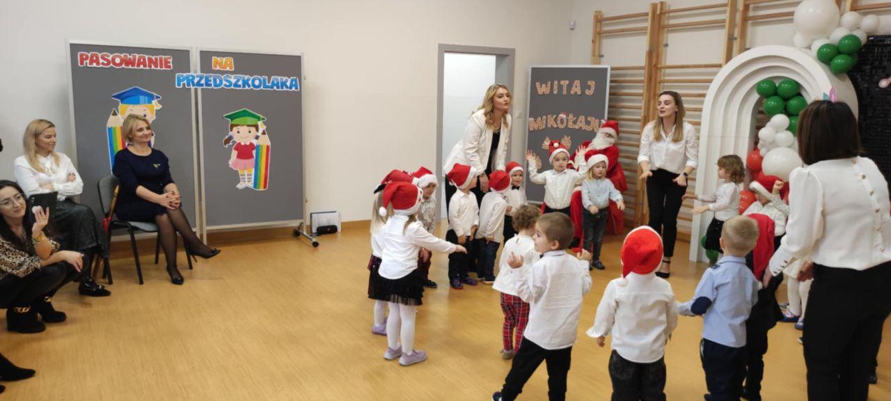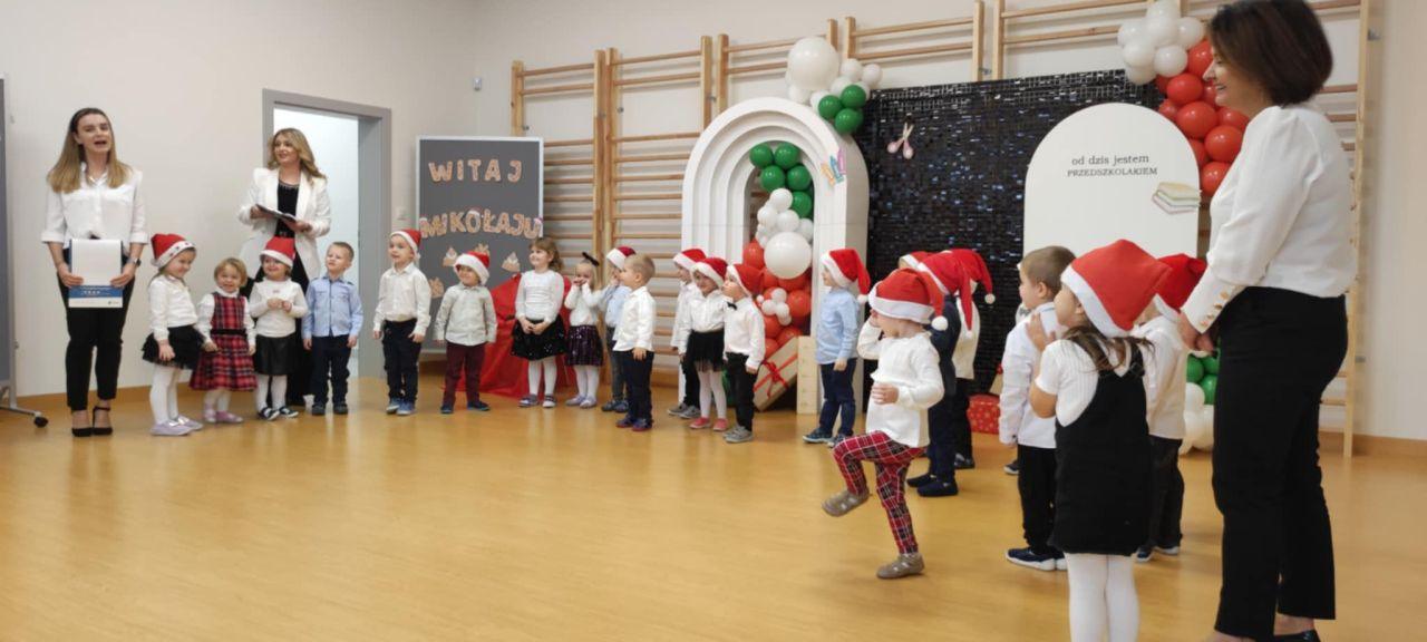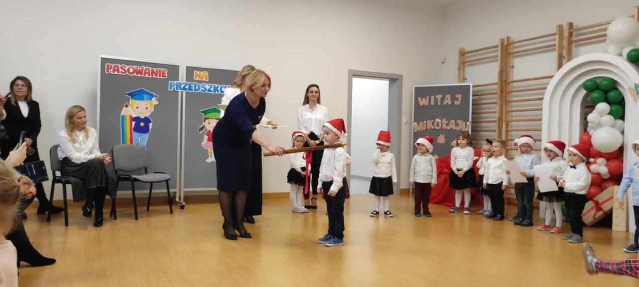 6 grudnia był to wyjątkowy dzień dla naszych przedszkolaków, na który czekały z ogromną niecierpliwością. W progi naszego przedszkola zawitał niezwykły gość – św. Mikołaj, który obdarował dzieci mocą prezentów. Dzień ten był także wyjątkowy z uwagi na uroczystość Pasowania na Przedszkolaka. Dzieci z grup Stokrotki i Niezapominajki po akcie pasowania, czyli dotknięciu ramienia każdego malucha ogromną kredką przez Panią Dyrektor – Małgorzatę Trelkę, stały się pełnoprawnymi przedszkolakami.