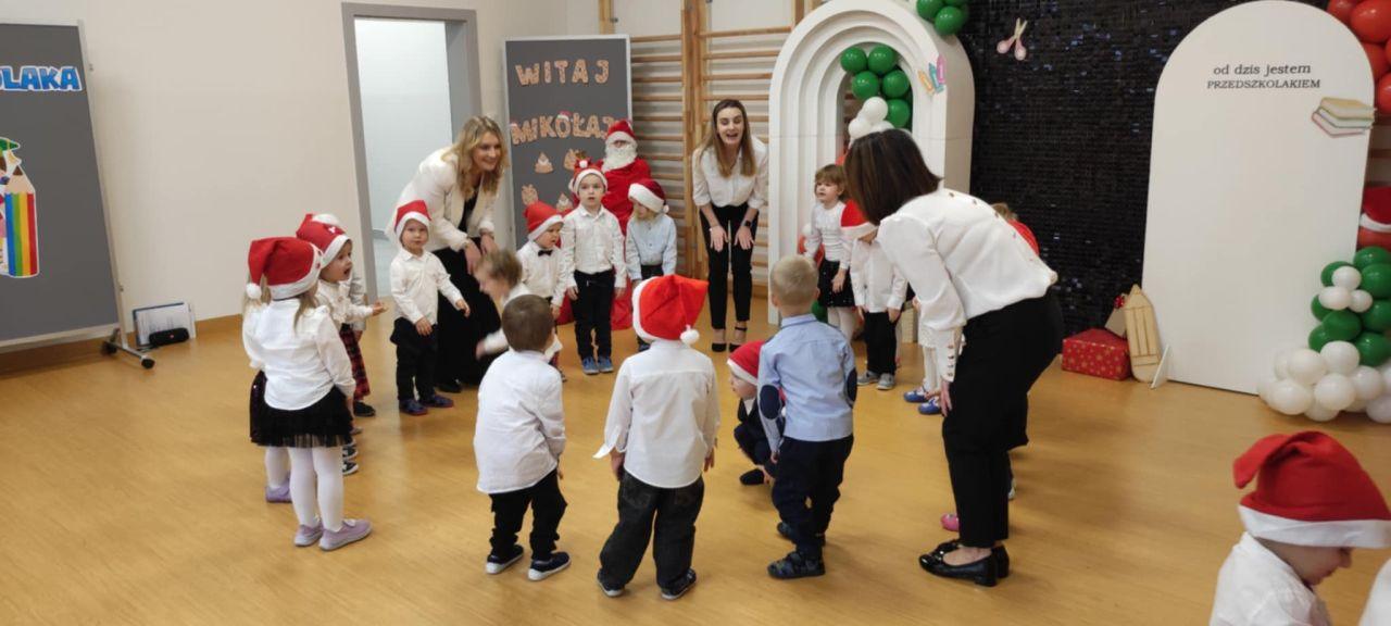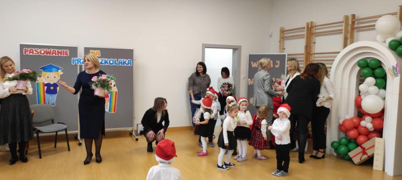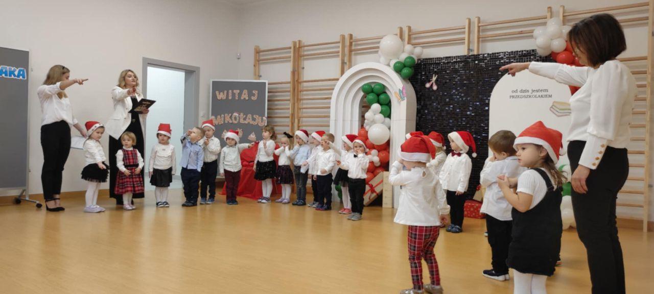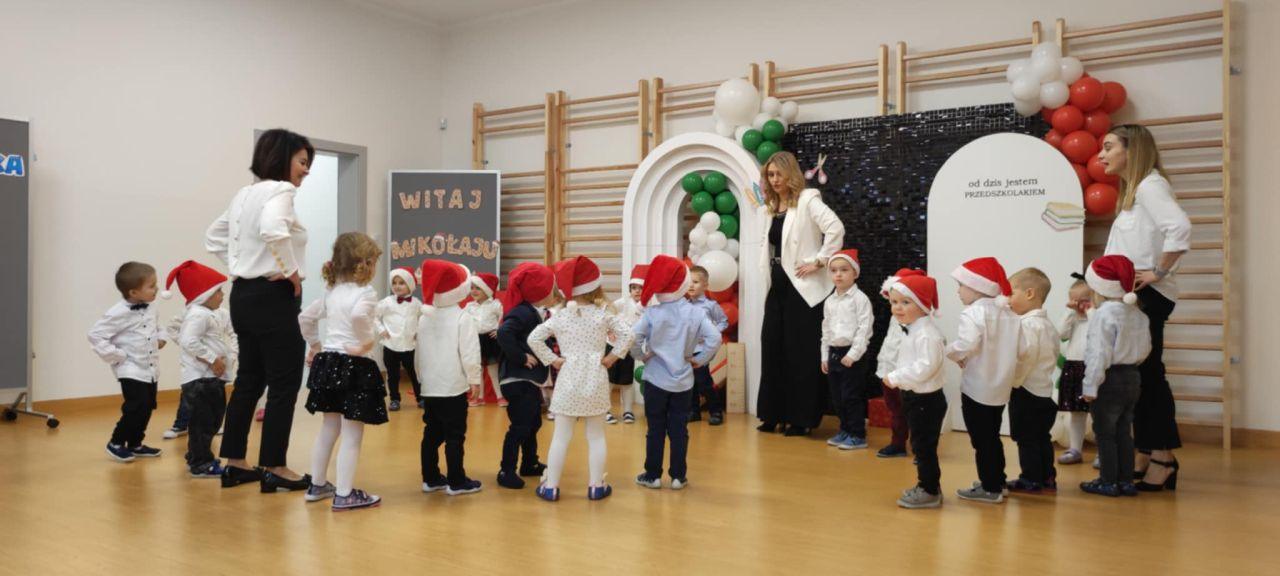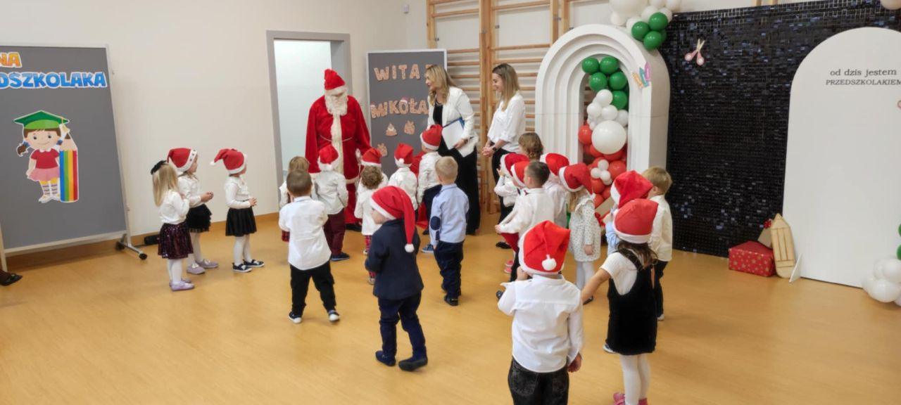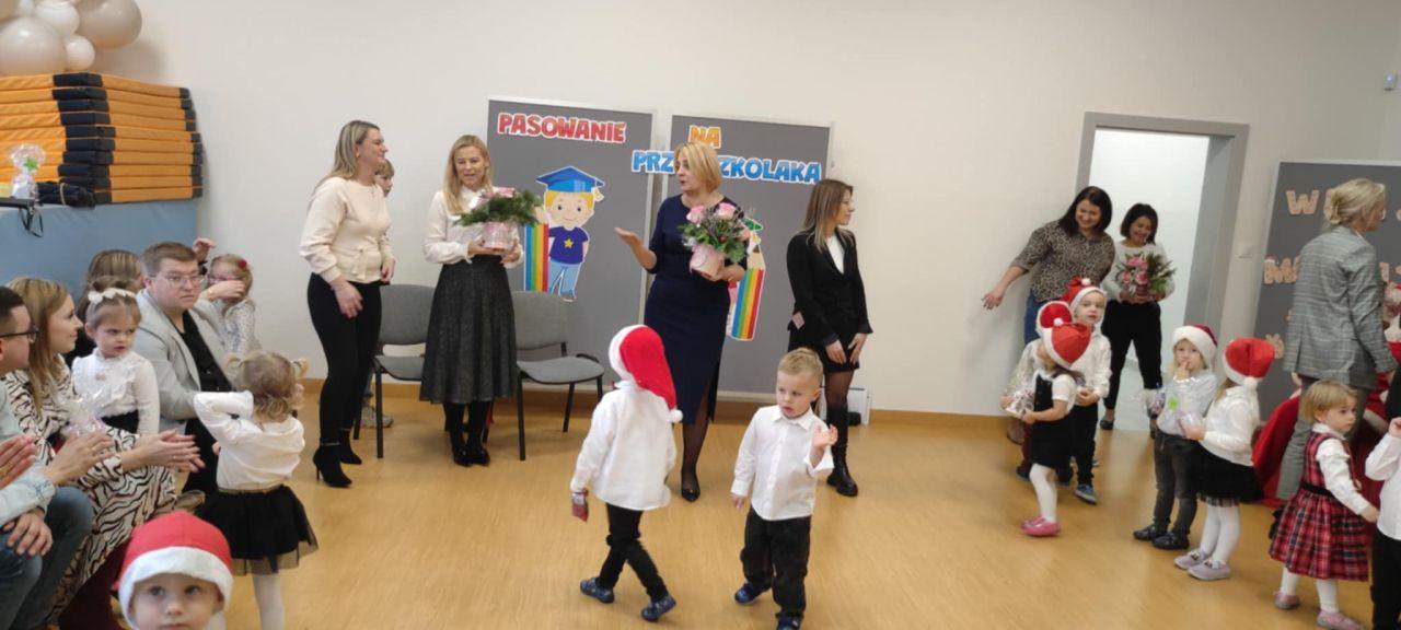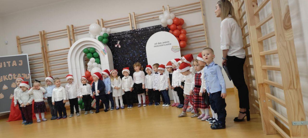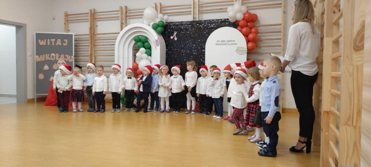 6 grudnia był to wyjątkowy dzień dla naszych przedszkolaków, na który czekały z ogromną niecierpliwością. W progi naszego przedszkola zawitał niezwykły gość – św. Mikołaj, który obdarował dzieci mocą prezentów. Dzień ten był także wyjątkowy z uwagi na uroczystość Pasowania na Przedszkolaka. Dzieci z grup Stokrotki i Niezapominajki po akcie pasowania, czyli dotknięciu ramienia każdego malucha ogromną kredką przez Panią Dyrektor – Małgorzatę Trelkę, stały się pełnoprawnymi przedszkolakami.