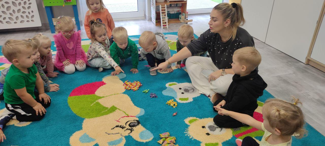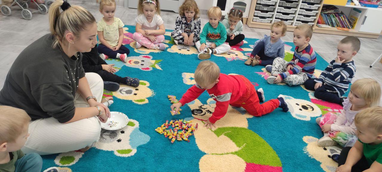 W ramach projektu edukacyjnego „20 minut dla matematyki” grupa Stokrotki wzięła udział w słodkich zajęciach 🙂 Dzieci przeliczały cukierki, tworzyły zbiory, bawiły się w poszukiwanie cukierków schowanych w sali. Uczestniczyły w zabawach ruchowych, ćwiczyły kolory . Na koniec każde dziecko otrzymało po wybranym przez siebie cukierku 🙂 To był wesoły dzień!