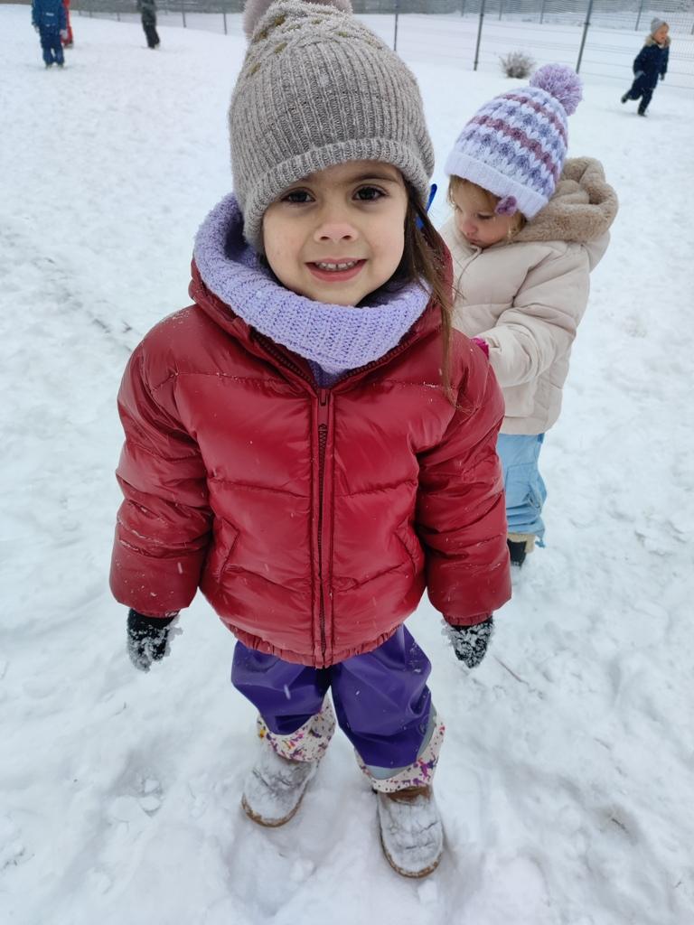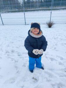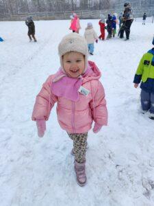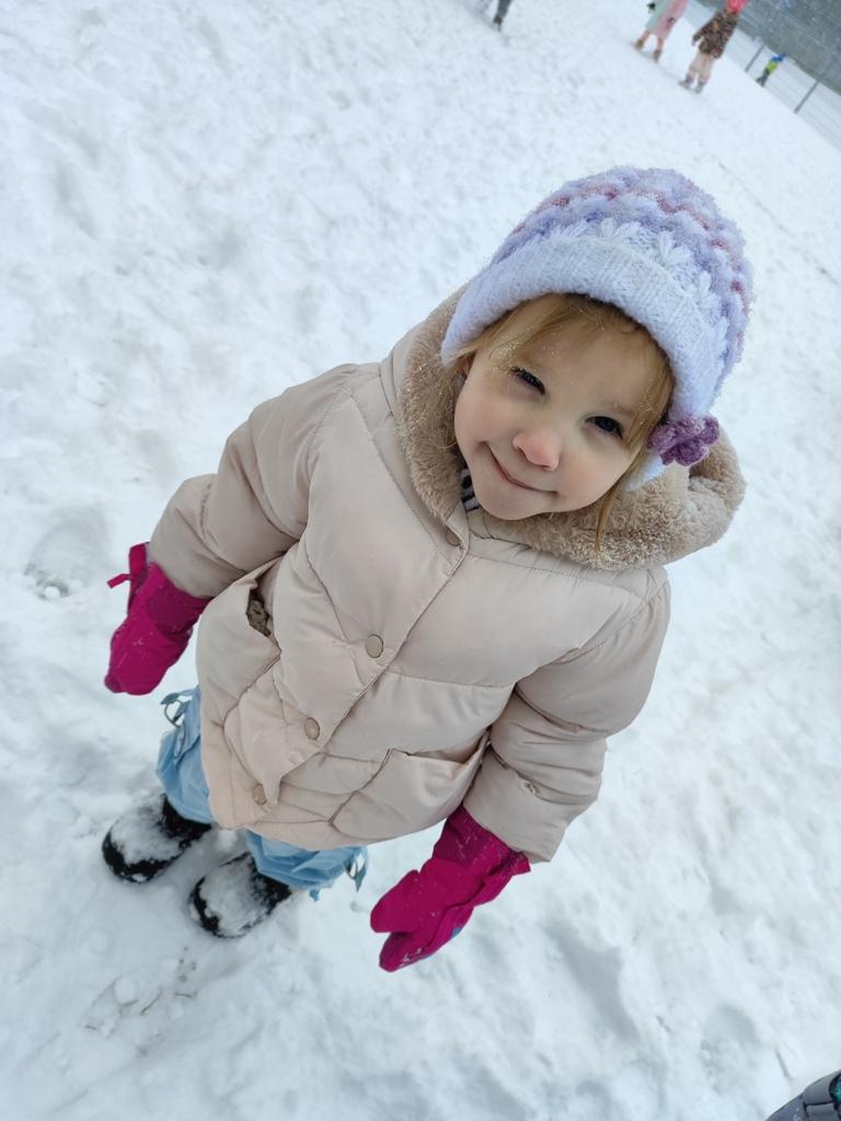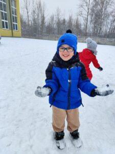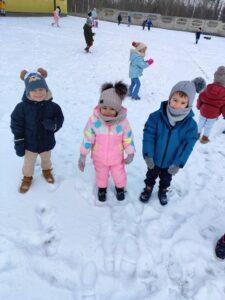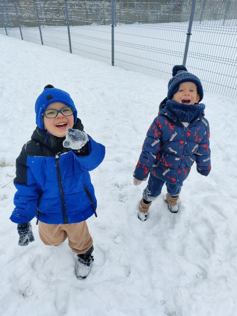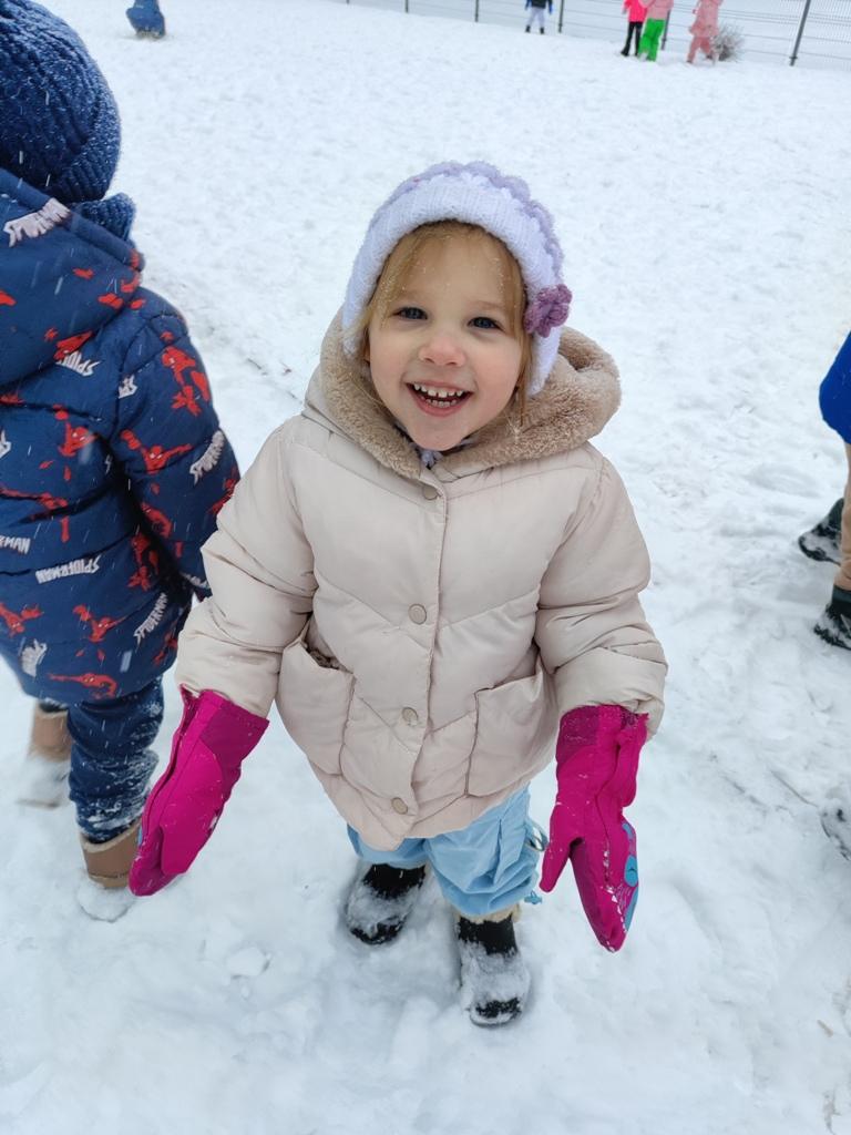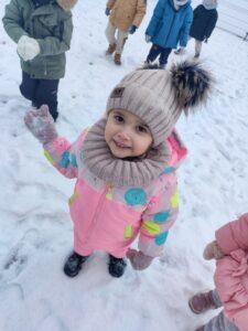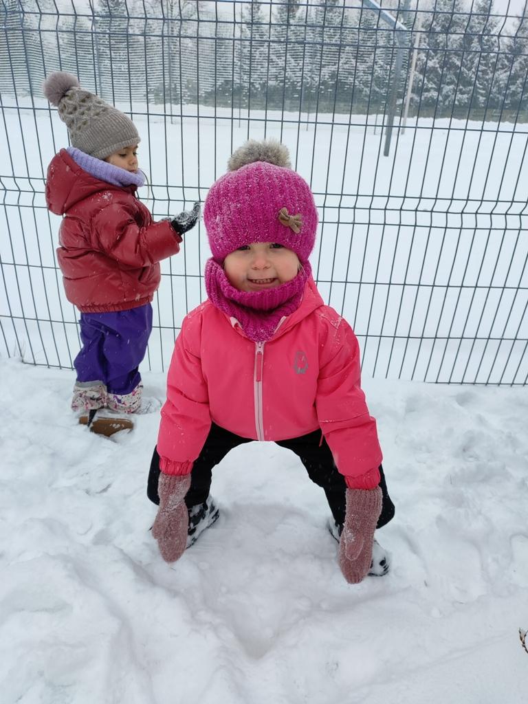 Dzieci z zaangażowaniem uczestniczyły w zimowych aktywnościach – biegały, bawiły się na śniegu, odkrywały zimową przyrodę i cieszyły się każdą chwilą spędzoną poza salą. Nie brakowało śmiechu, uśmiechów oraz spontanicznej radości, które najlepiej świadczą o tym, jak ważny jest codzienny kontakt z naturą i możliwość swobodnej zabawy.