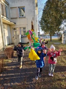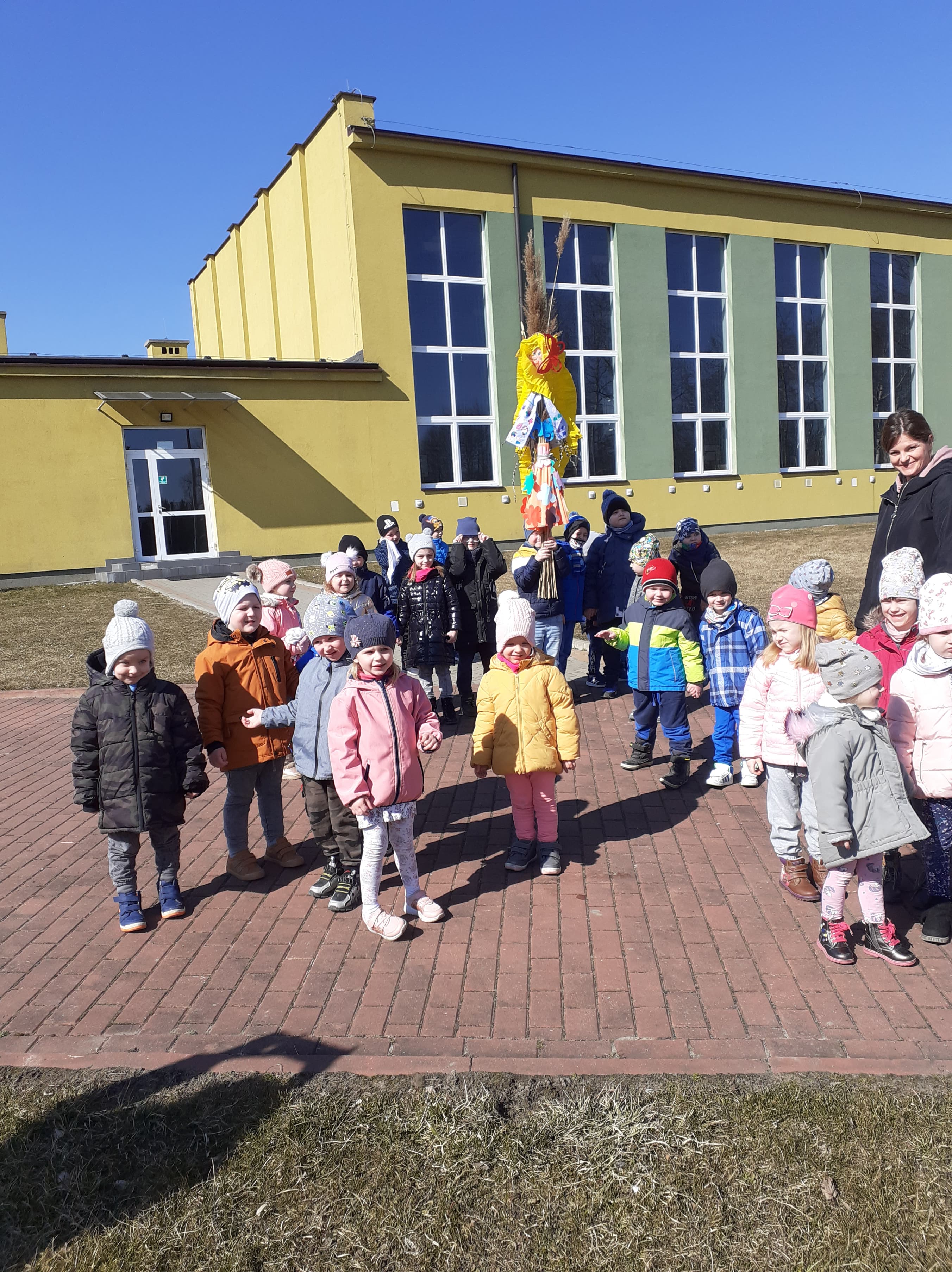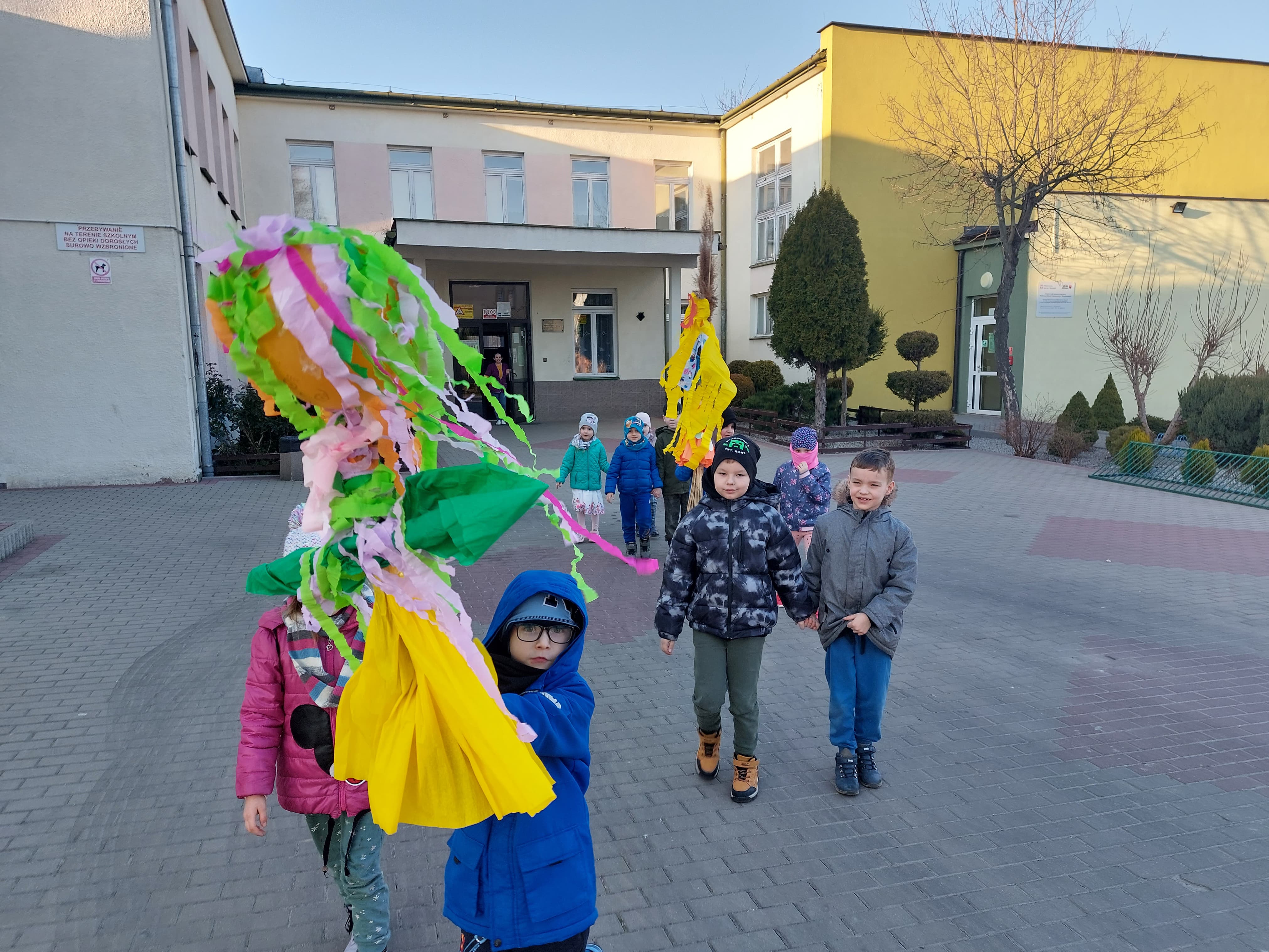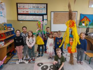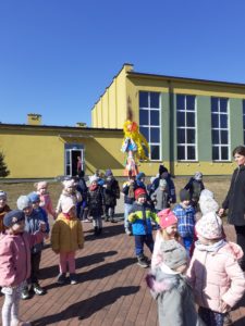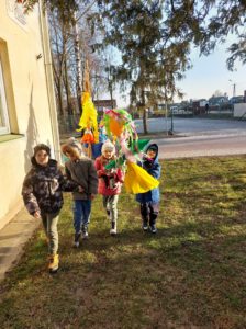 W dniu 21.03.2022 r. najmłodsze przedszkolaki oraz dzieci z oddziałów przedszkolnych 0 a i 0 b wzięły udział w obrzędzie „Pożegnania Zimy – powitania Wiosny”.