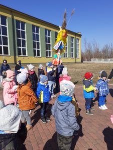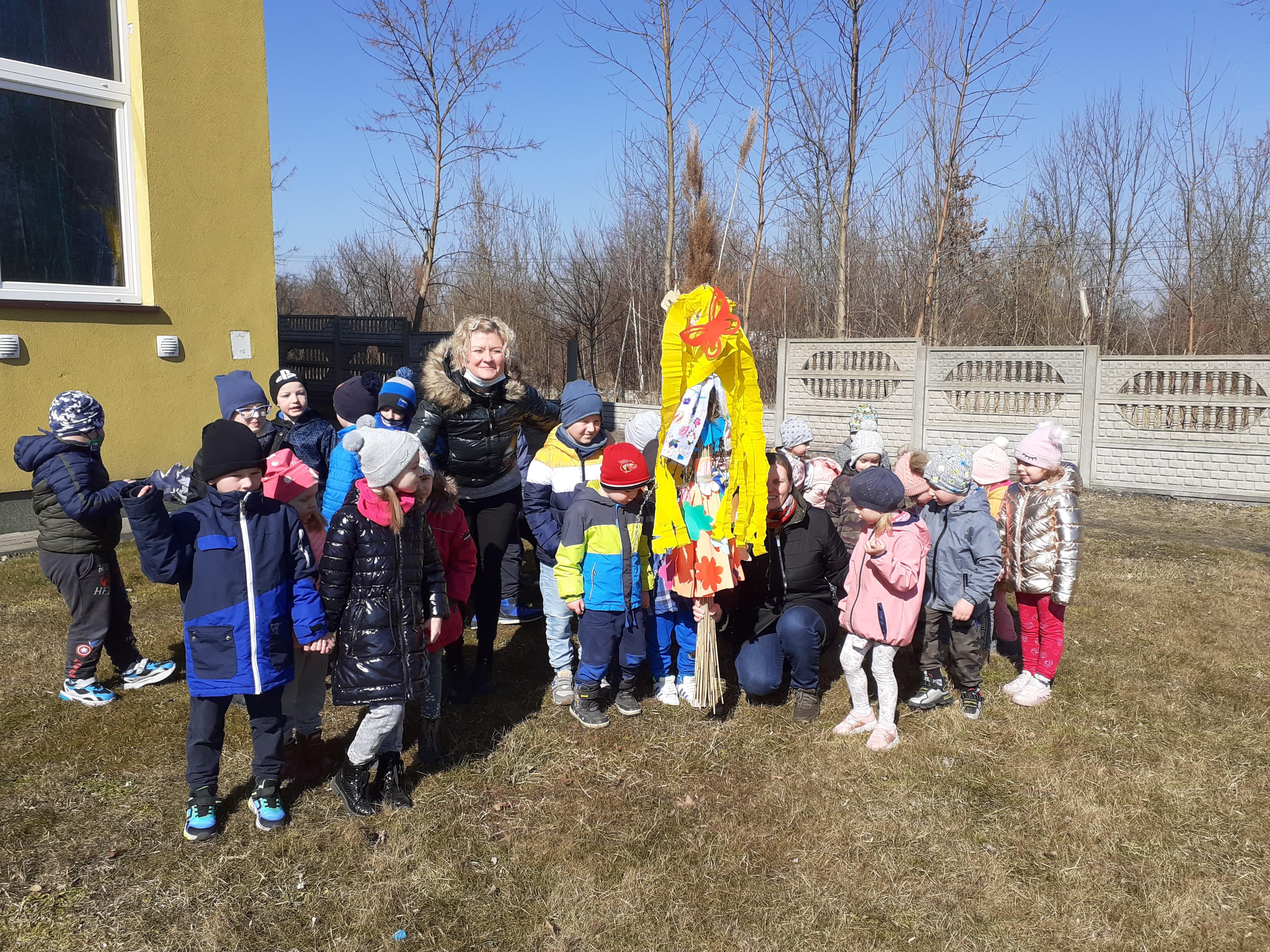 Powitanie wiosny to dla każdego przedszkolaka wyczekiwane wydarzenie. Ogromne emocje wśród dzieci wzbudziły już same przygotowania, które rozpoczęły się wcześniej. Dzieci z wielkim zaangażowaniem rozmawiały i obserwowały oznaki wiosny oraz pomagały w wykonaniu kukły Marzanny. Podczas spaceru po okolicy w barwnym korowodzie, trzymając w rękach Marzannę dzieci wyraziły swoją radość z powodu nadejścia kalendarzowej wiosny.