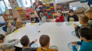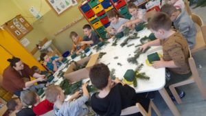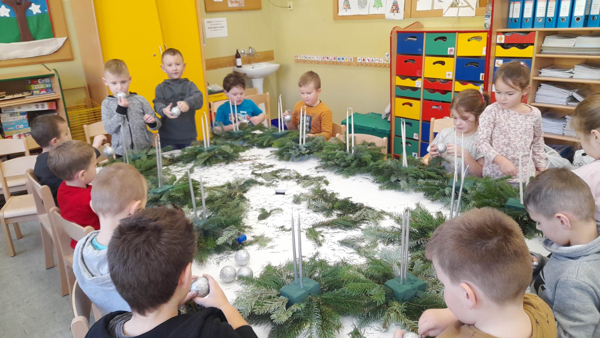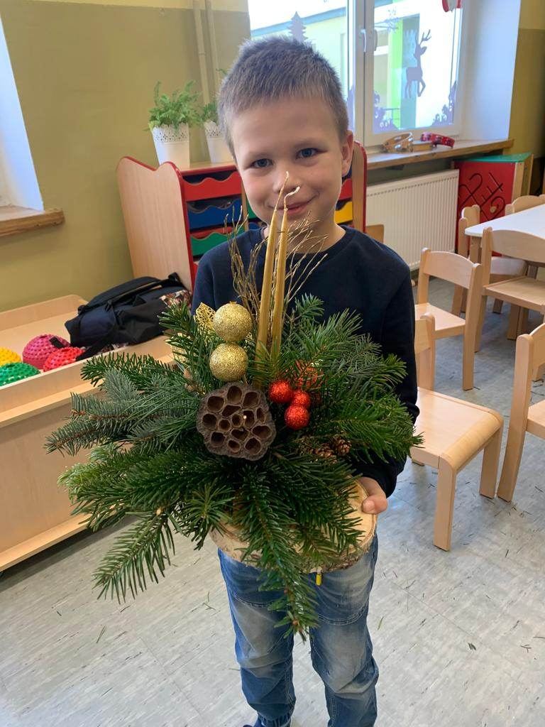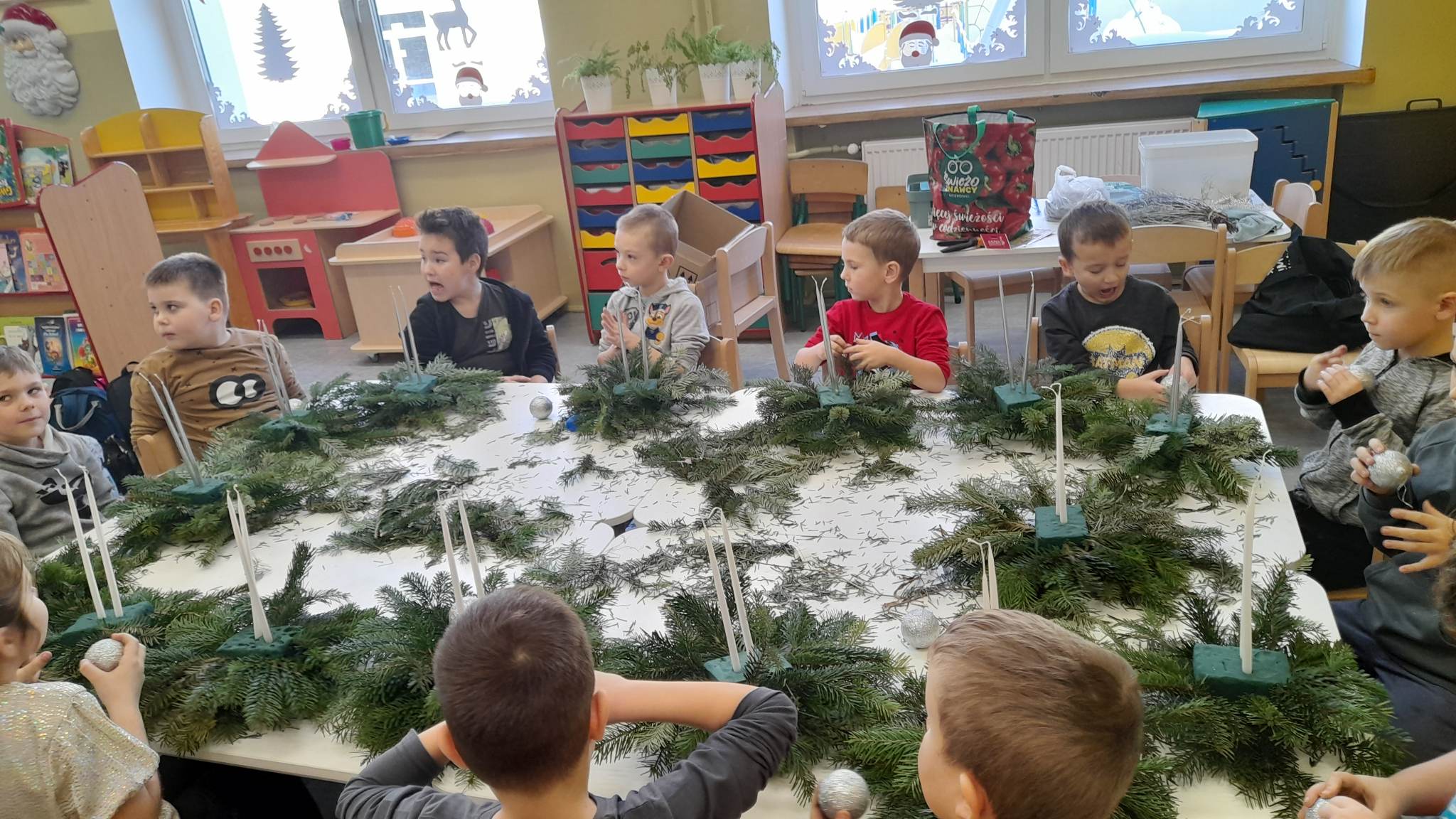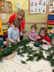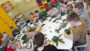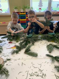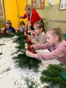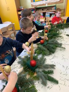 Stroik świąteczny to najbardziej popularna ozdoba bożonarodzeniowa. Podstawą tradycyjnego stroika świątecznego są gałązki igliwia (świerka, jodły, sosny). Do stroików można dodać szyszki, wstążki, ozdoby choinkowe, szczególnie bombki. W tym roku przedszkolaki z naszej szkoły mogły wykazać się swoją kreatywnością podczas samodzielnego wykonywania stroików świątecznych. Warsztaty przygotowane zostały przez jednego z rodziców – panią Katarzynę Pszczółkę, której składamy serdeczne podziękowania.