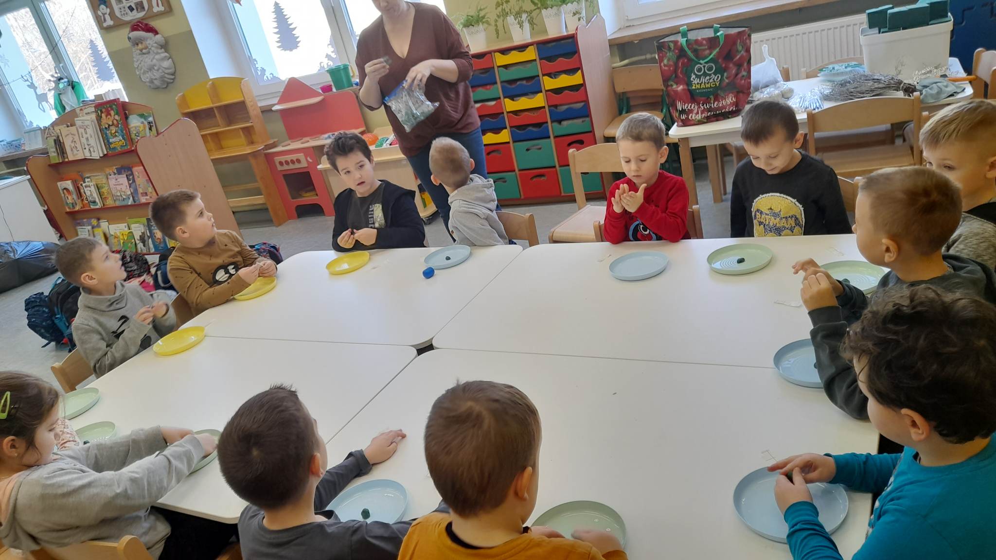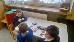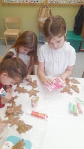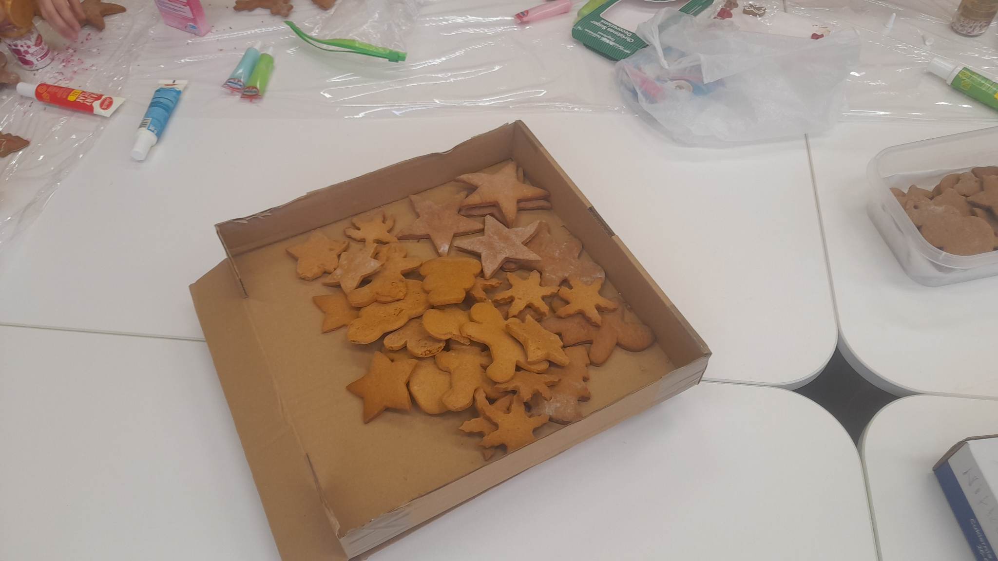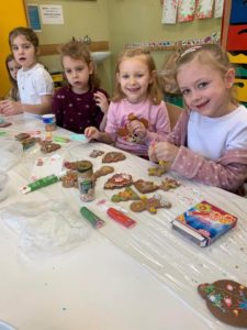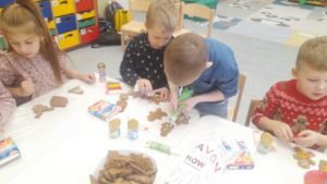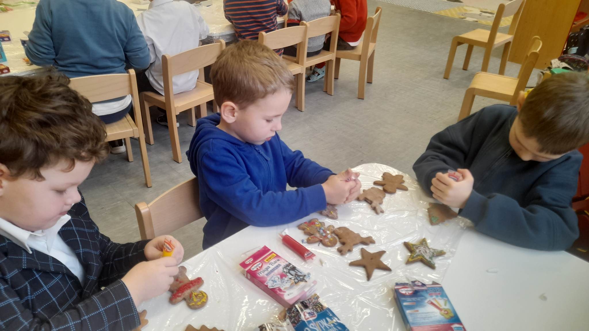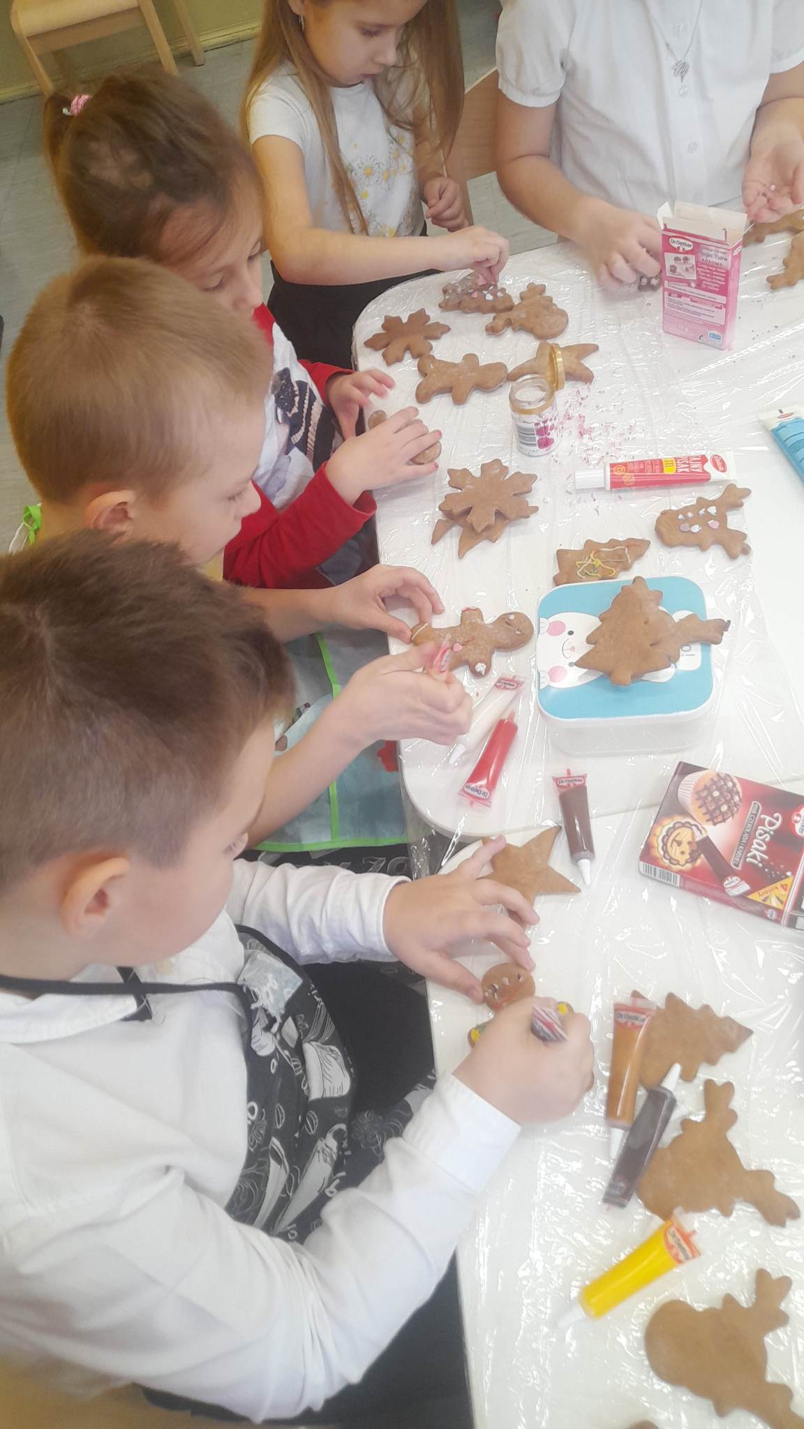 Dekorowanie pierniczków lukrowymi pisakami i kolorową posypką to też okazja do spotkania w miłej przedświątecznej atmosferze. Poprzez wspólne działania, samodzielne dekorowanie pierniczków dzieci mogły osobiście doświadczyć świątecznych przygotowań, kultywowały tradycję, pobudzały inwencję twórczą oraz odczuwały radość świątecznego oczekiwania.