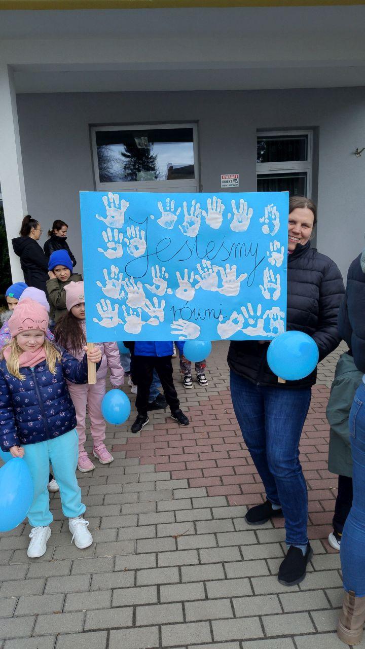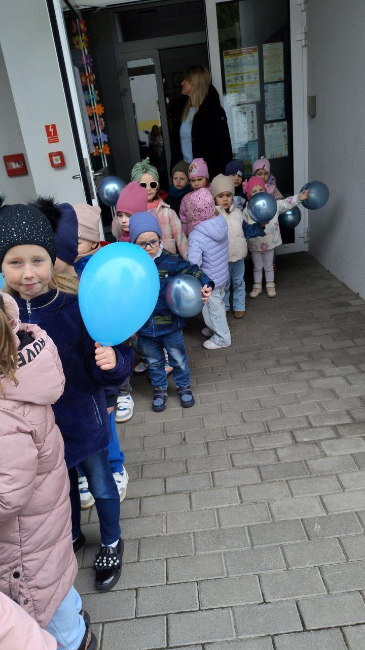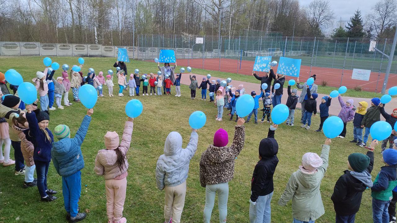 8 kwietnia w naszym przedszkolu obchodziliśmy Dzień Świadomości Autyzmu – ważne święto, które przypomina, że każdy człowiek rozwija się w swoim tempie, ma swoje mocne strony, potrzeby i wyjątkowy sposób patrzenia na świat. Autyzm to zaburzenie neurorozwojowe, które wpływa na sposób komunikowania się, odbierania bodźców i budowania relacji. Dzieci i dorośli w spektrum często widzą i czują więcej, inaczej porządkują informacje, a ich świat bywa pełen intensywnych wrażeń. Naszym zadaniem – jako społeczności -jest tworzyć przestrzeń pełną zrozumienia, akceptacji i życzliwości. Od samego rana wszystkie grupy świętowały ten dzień w swoich salach. Dzieci i nauczyciele przyszli ubrani na niebiesko, czyli w kolorze solidarności z osobami w spektrum autyzmu. W każdej grupie odbyły się rozmowy, zajęcia i aktywności, które pomagały dzieciom zrozumieć, że różnimy się od siebie – i to jest wartość. Kulminacją wydarzenia był uroczysty przemarsz, w którym uczestniczyło całe przedszkole. Każda grupa przygotowała własny transparent -dzieci odbijały na nich swoje dłonie, tworząc symbol jedności i wspólnego działania. Każde dziecko trzymało również niebieski balon, który dodawał wydarzeniu wyjątkowego, radosnego charakteru.