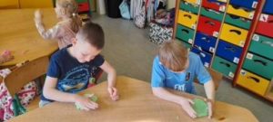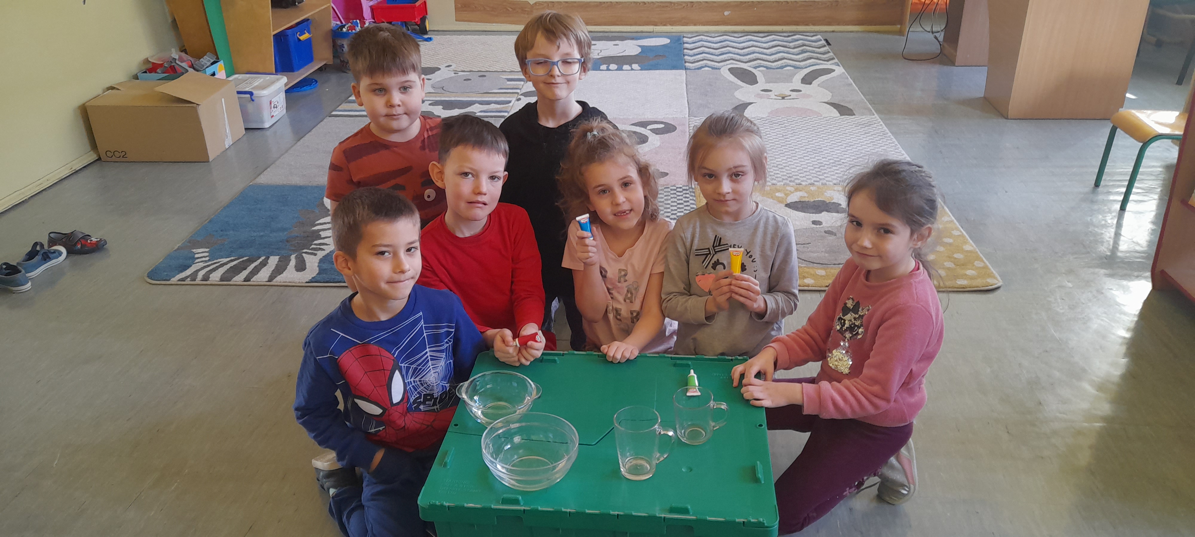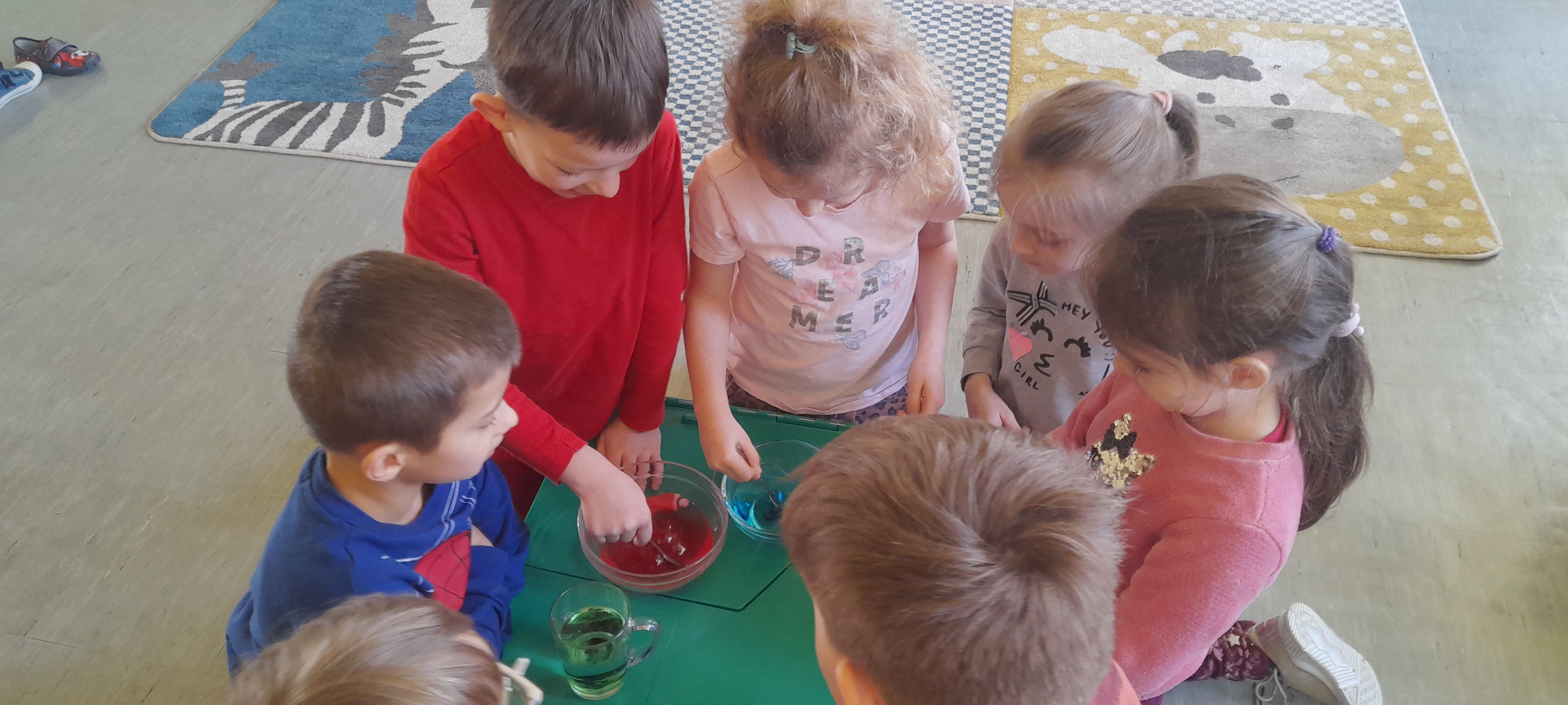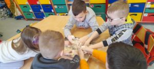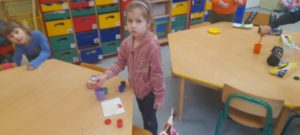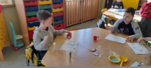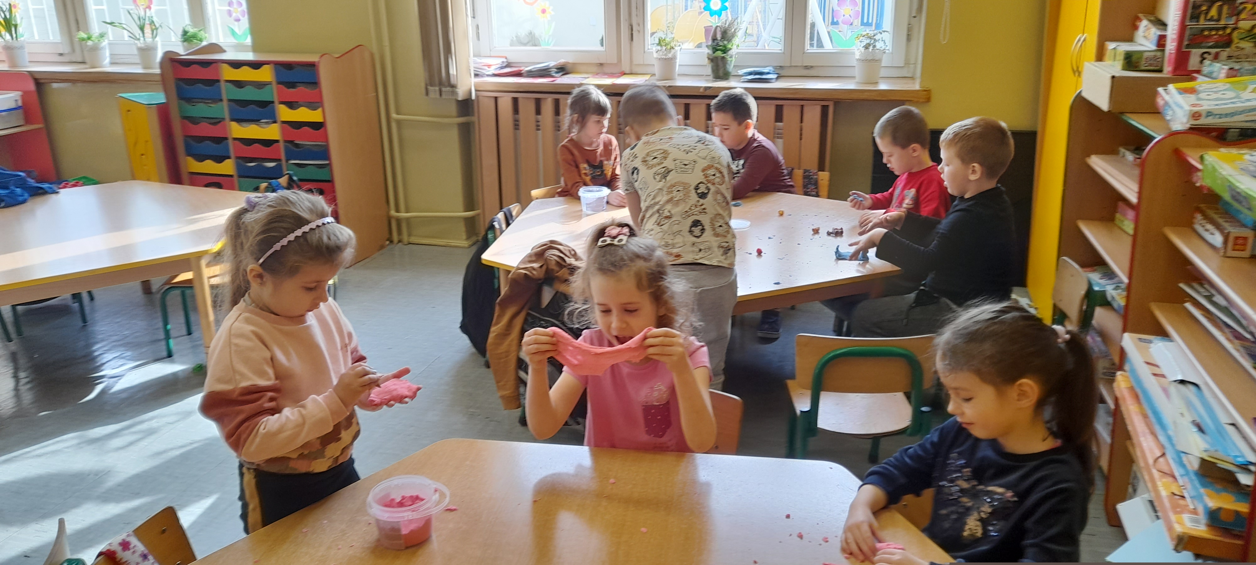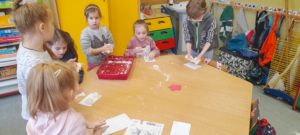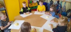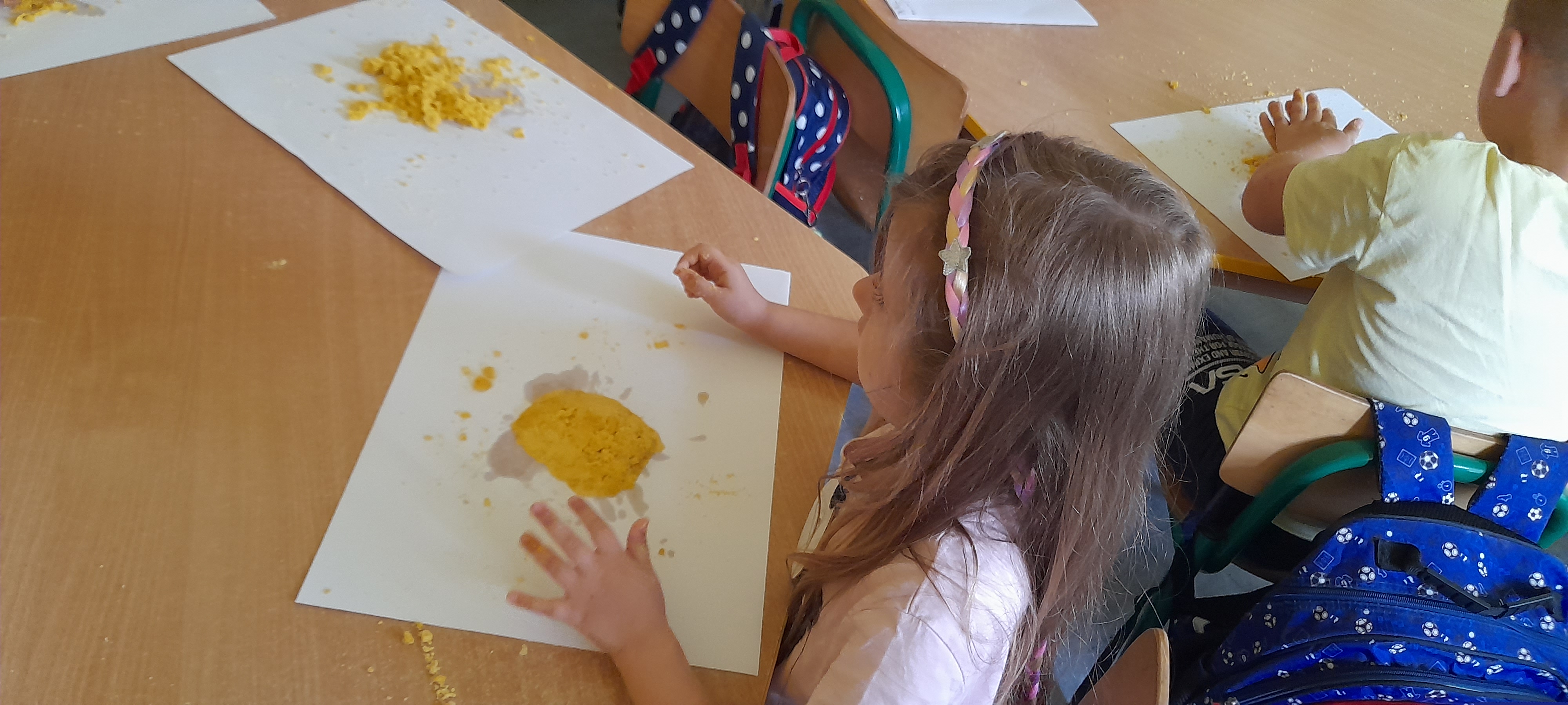W drugim semestrze roku szkolnego 2021/2022 dzieci z grupy 0A kontynuowały realizację innowacji pedagogicznej „Zabawy senso – psotne”. Głównym celem innowacji była stymulacja sensoryczna w formie zabaw sensorycznych, które wpłynęły na poprawę percepcji słuchowej i wzrokowej, sprawności manualnej, równowagi, koncentracji uwagi, logicznego myślenia, spostrzegawczości, szybkości reakcji i refleksu, integracji słuchowo – wzrokowo – dotykowo – kinestetyczno – ruchowej, funkcji psychomotorycznych.
