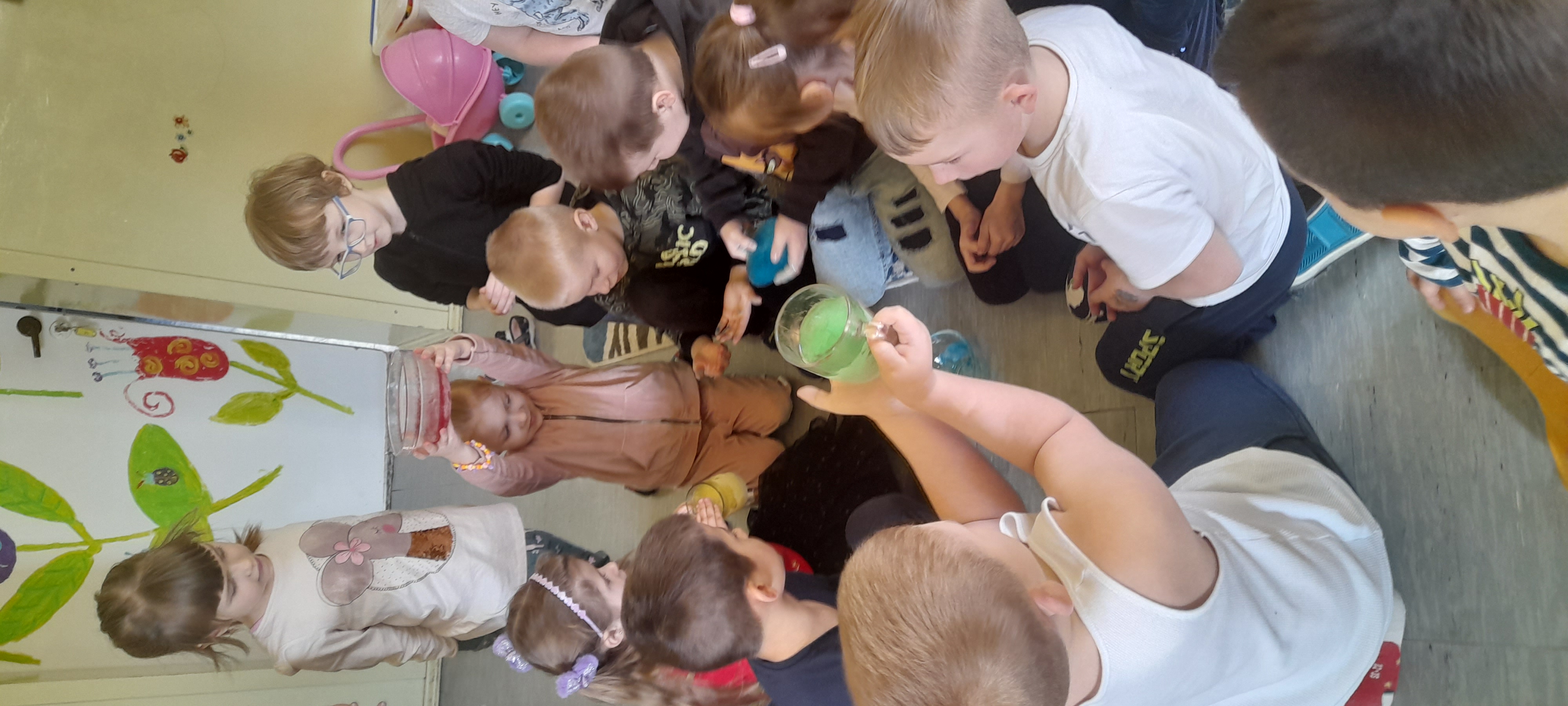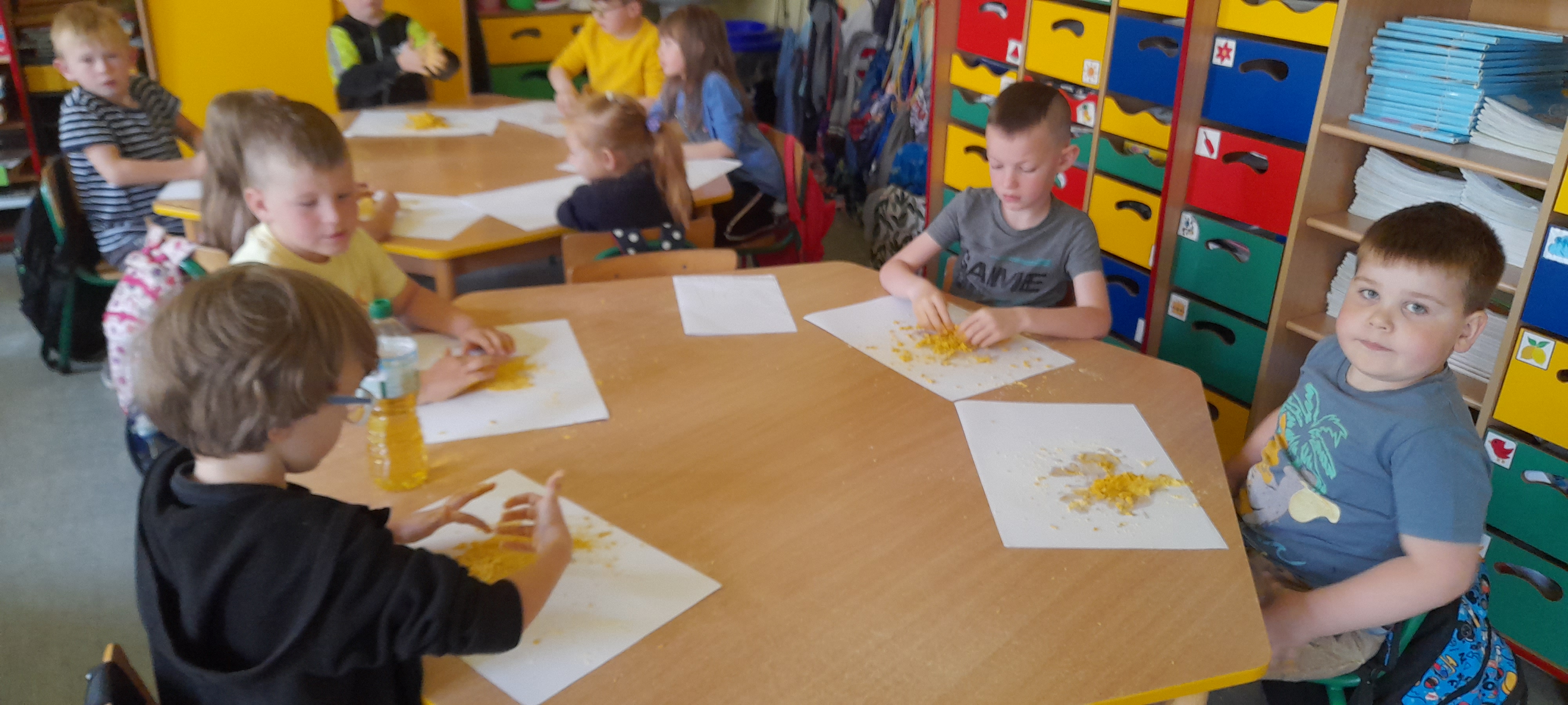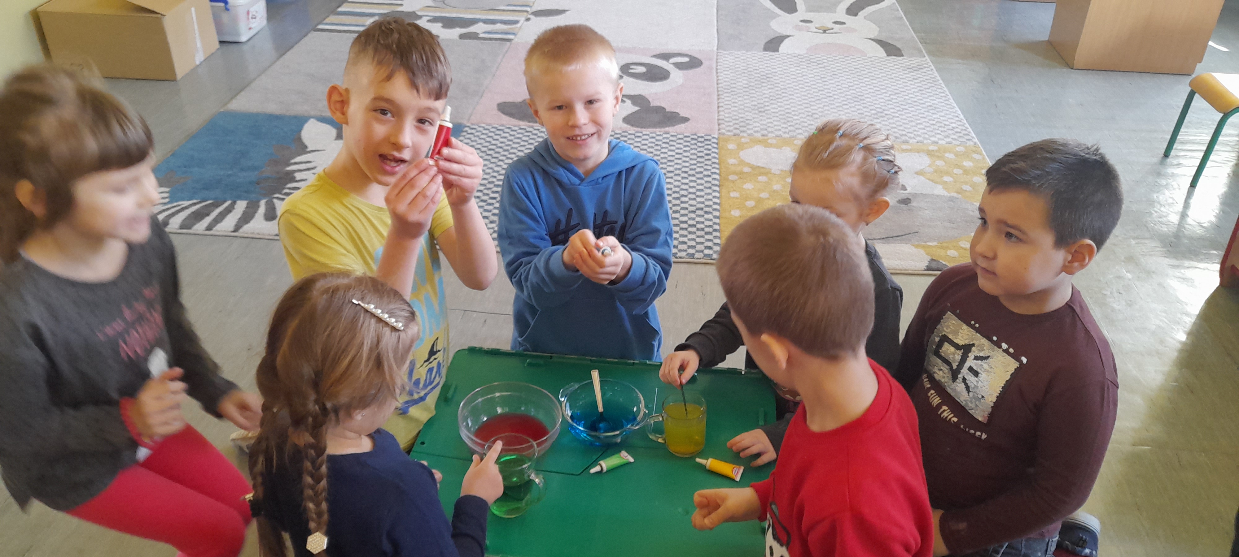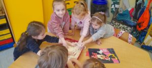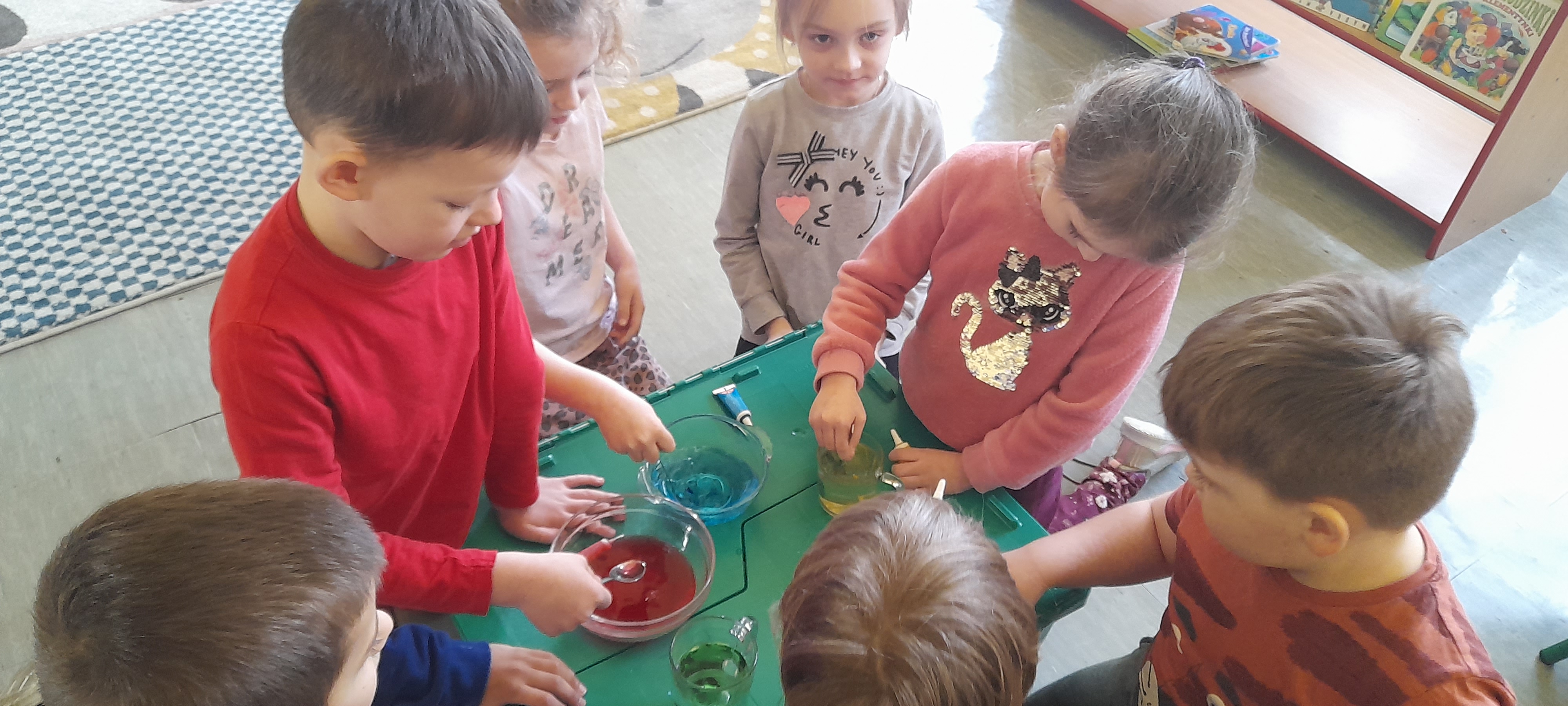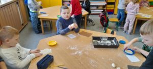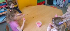 W drugim semestrze roku szkolnego 2021/2022 dzieci z grupy 0A kontynuowały realizację innowacji pedagogicznej „Zabawy senso – psotne”. Głównym celem innowacji była stymulacja sensoryczna w formie zabaw sensorycznych, które wpłynęły na poprawę percepcji słuchowej i wzrokowej, sprawności manualnej, równowagi, koncentracji uwagi, logicznego myślenia, spostrzegawczości, szybkości reakcji i refleksu, integracji słuchowo – wzrokowo – dotykowo – kinestetyczno – ruchowej, funkcji psychomotorycznych.