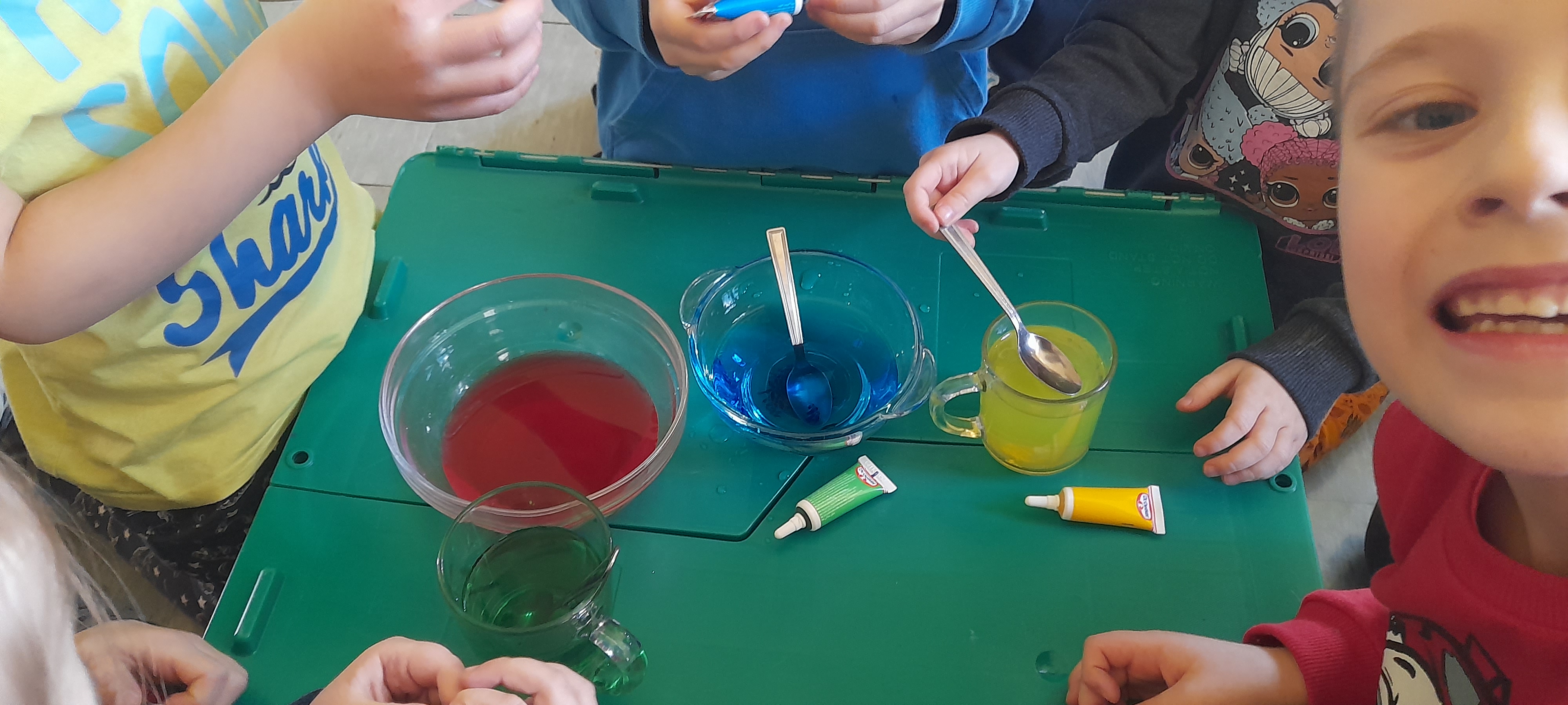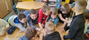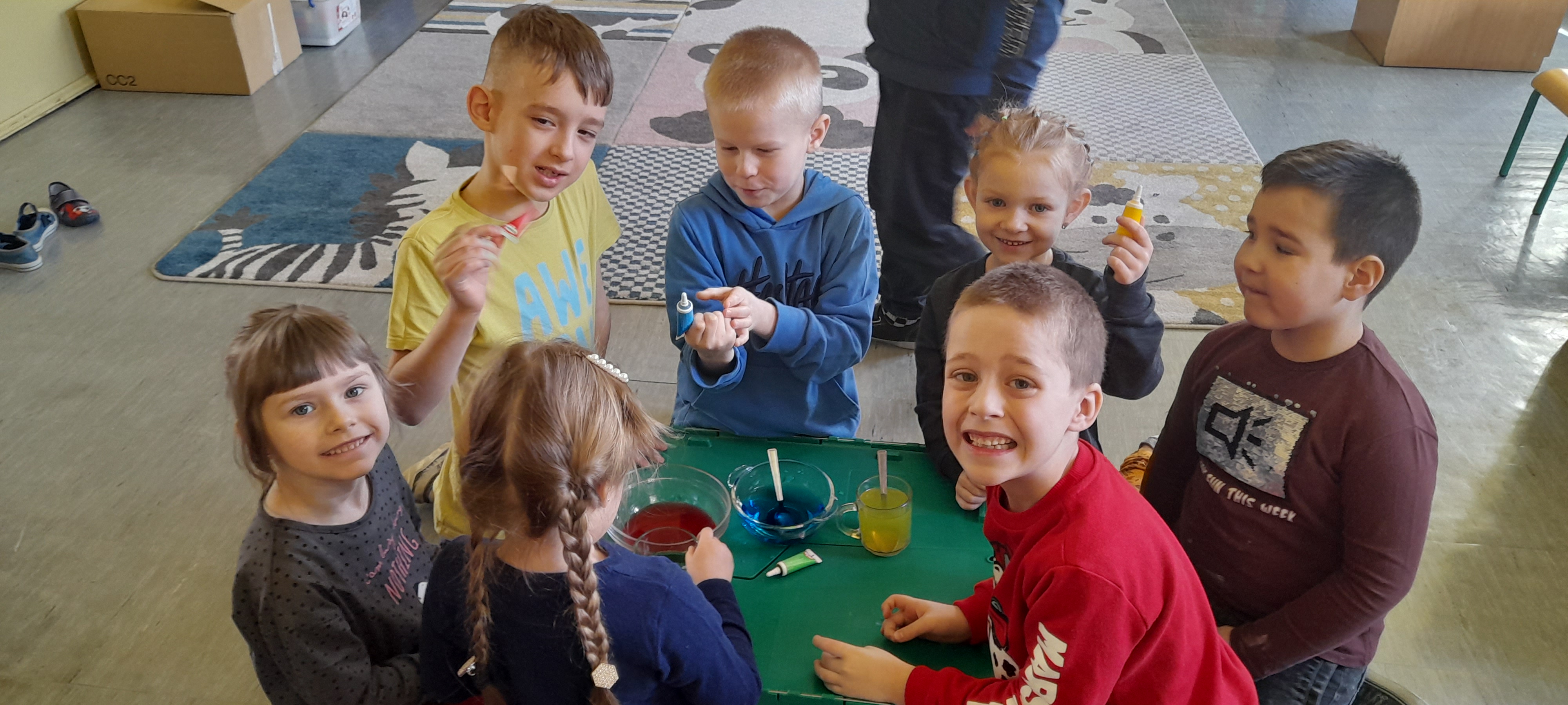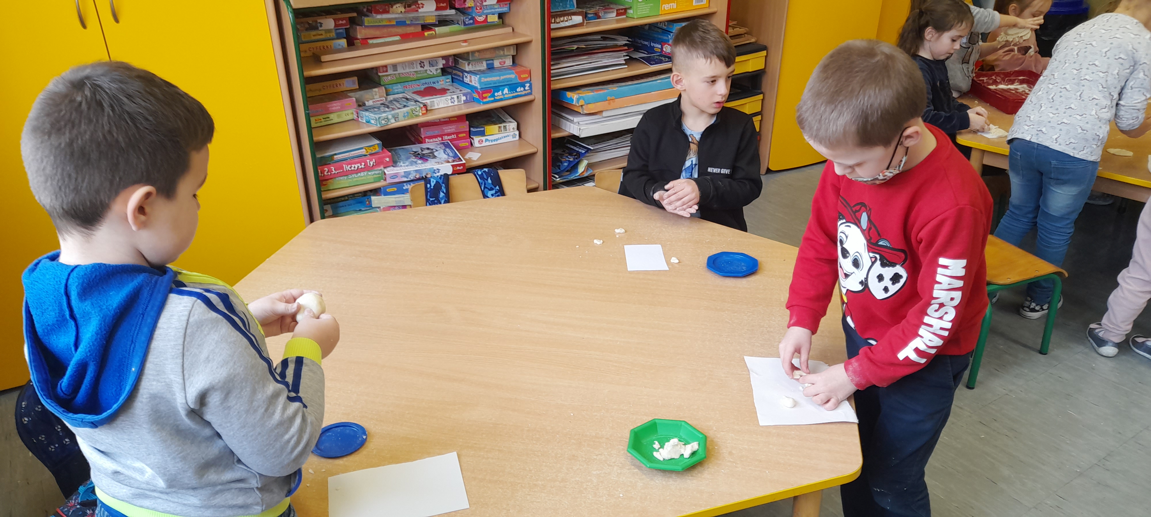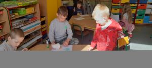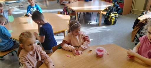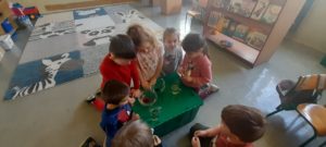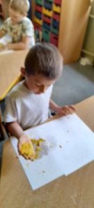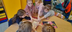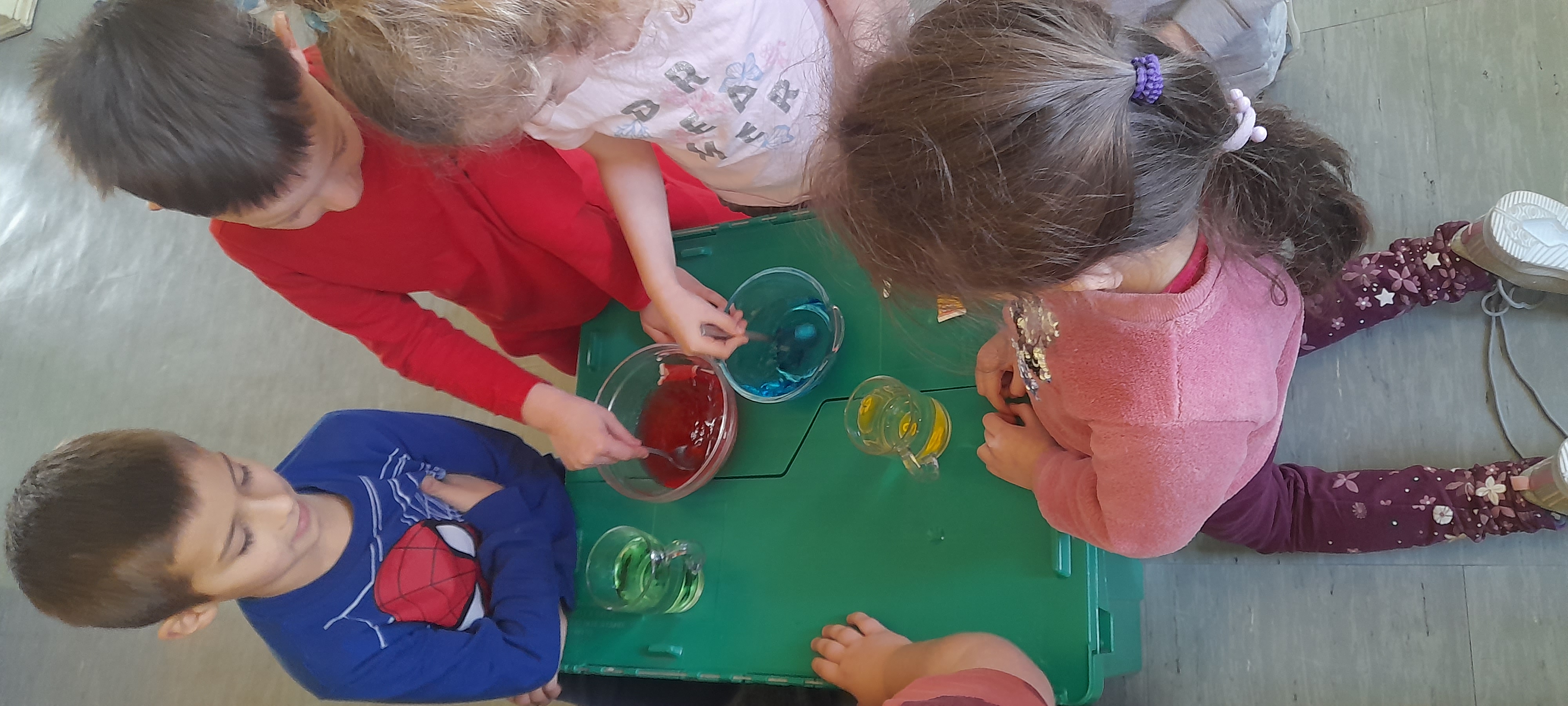 W drugim semestrze roku szkolnego 2021/2022 dzieci z grupy 0A kontynuowały realizację innowacji pedagogicznej „Zabawy senso – psotne”. Głównym celem innowacji była stymulacja sensoryczna w formie zabaw sensorycznych, które wpłynęły na poprawę percepcji słuchowej i wzrokowej, sprawności manualnej, równowagi, koncentracji uwagi, logicznego myślenia, spostrzegawczości, szybkości reakcji i refleksu, integracji słuchowo – wzrokowo – dotykowo – kinestetyczno – ruchowej, funkcji psychomotorycznych.