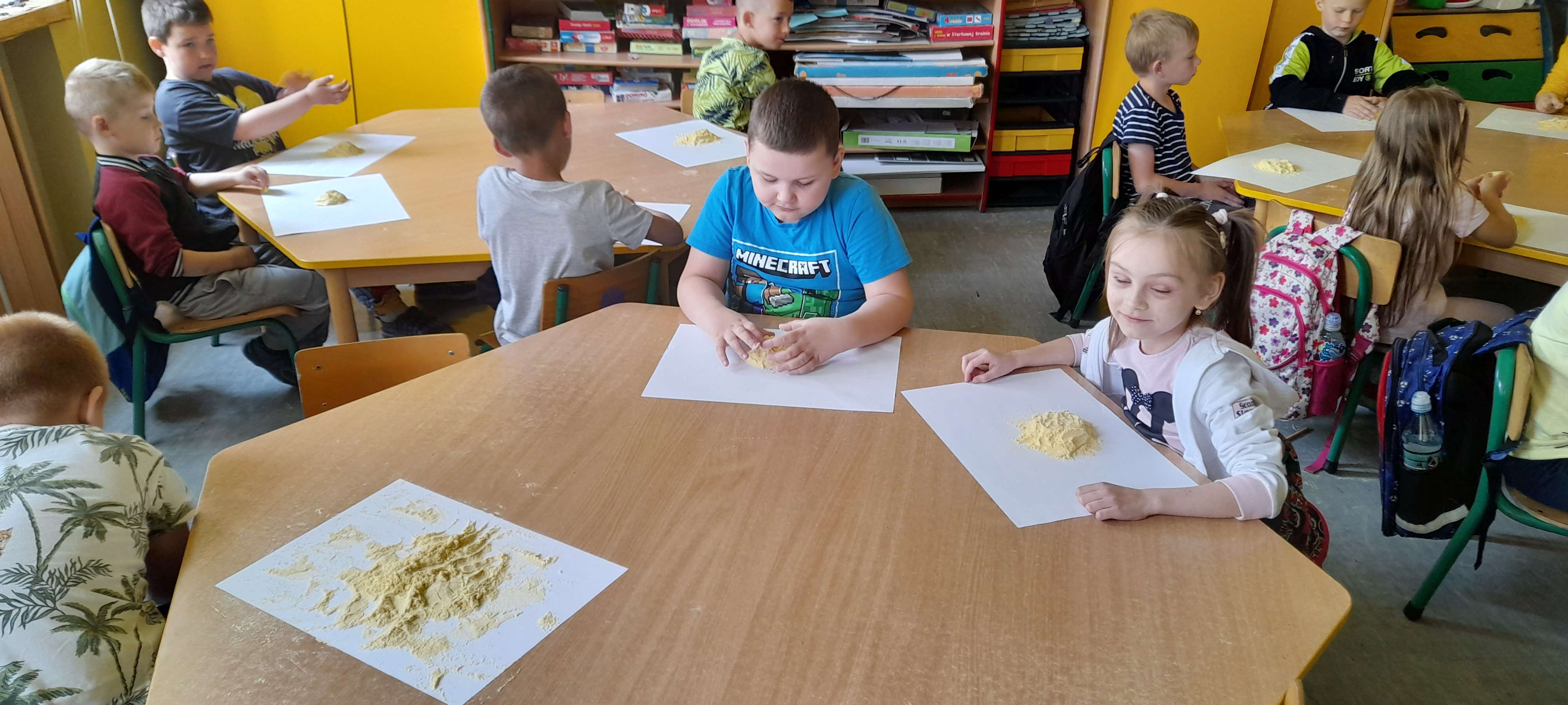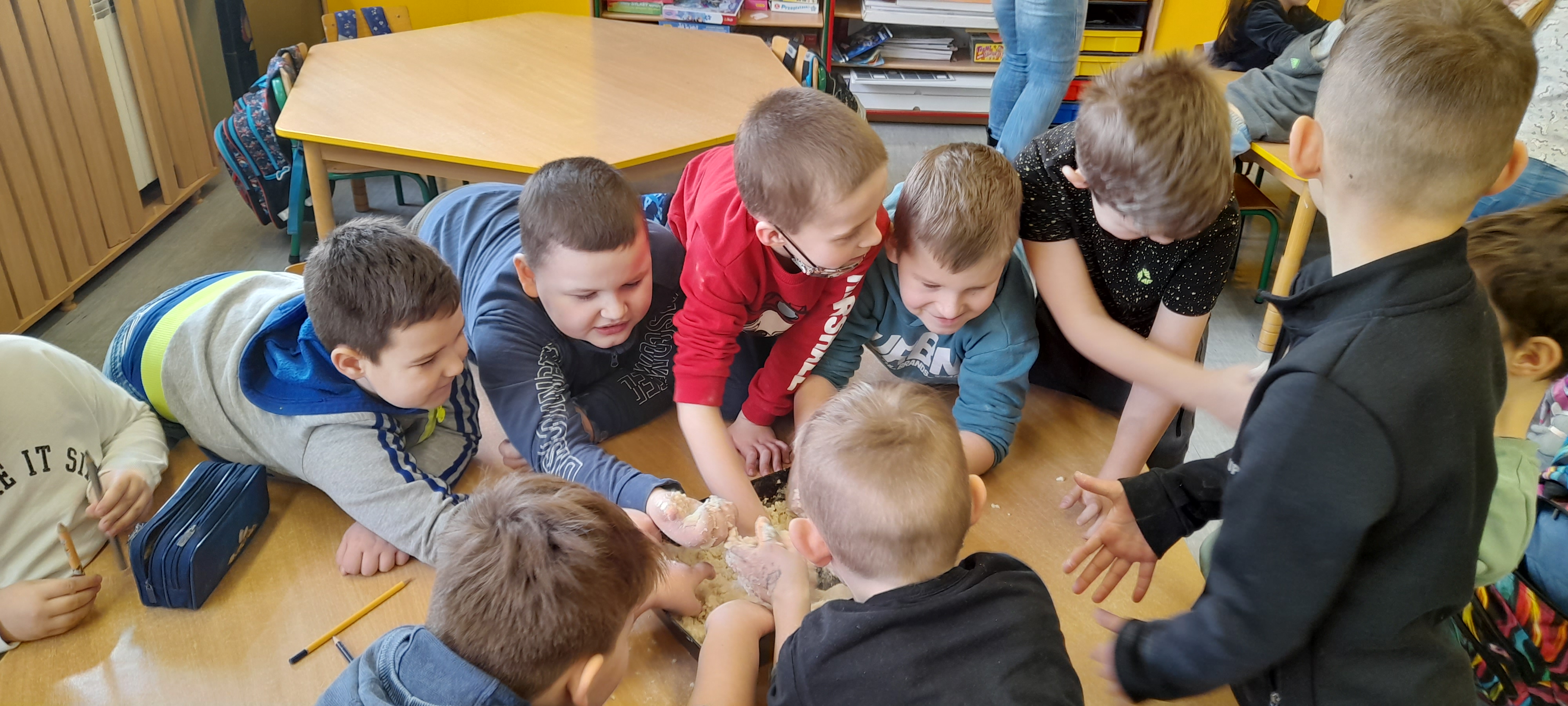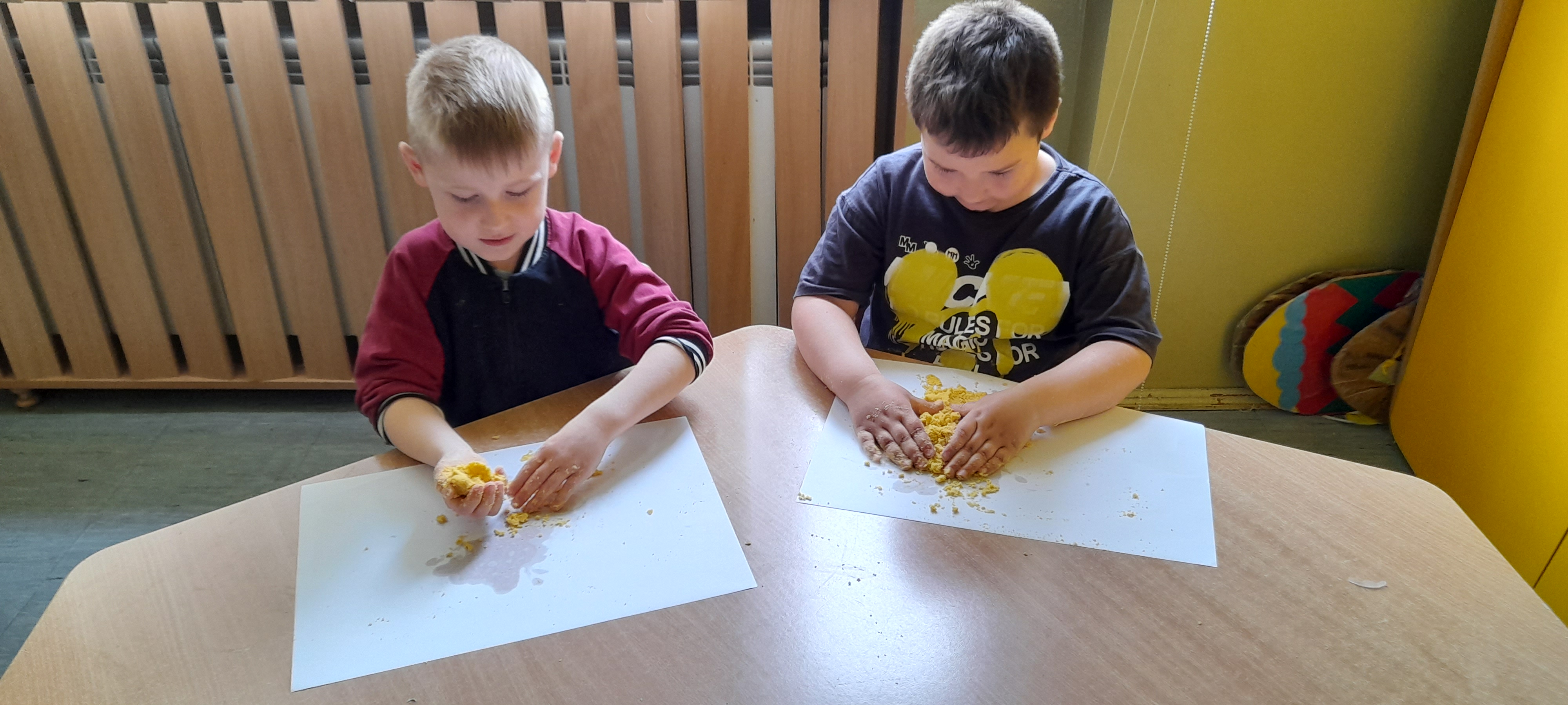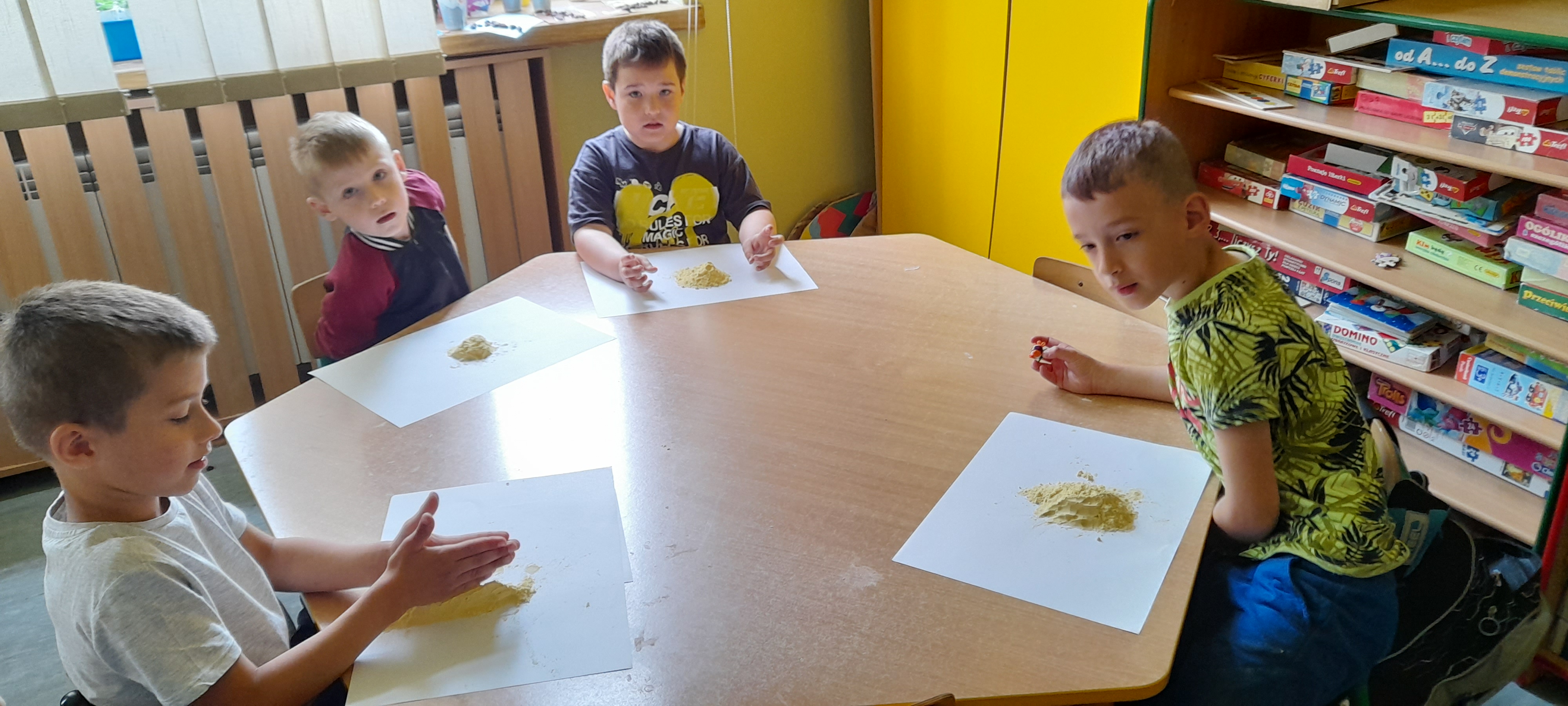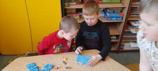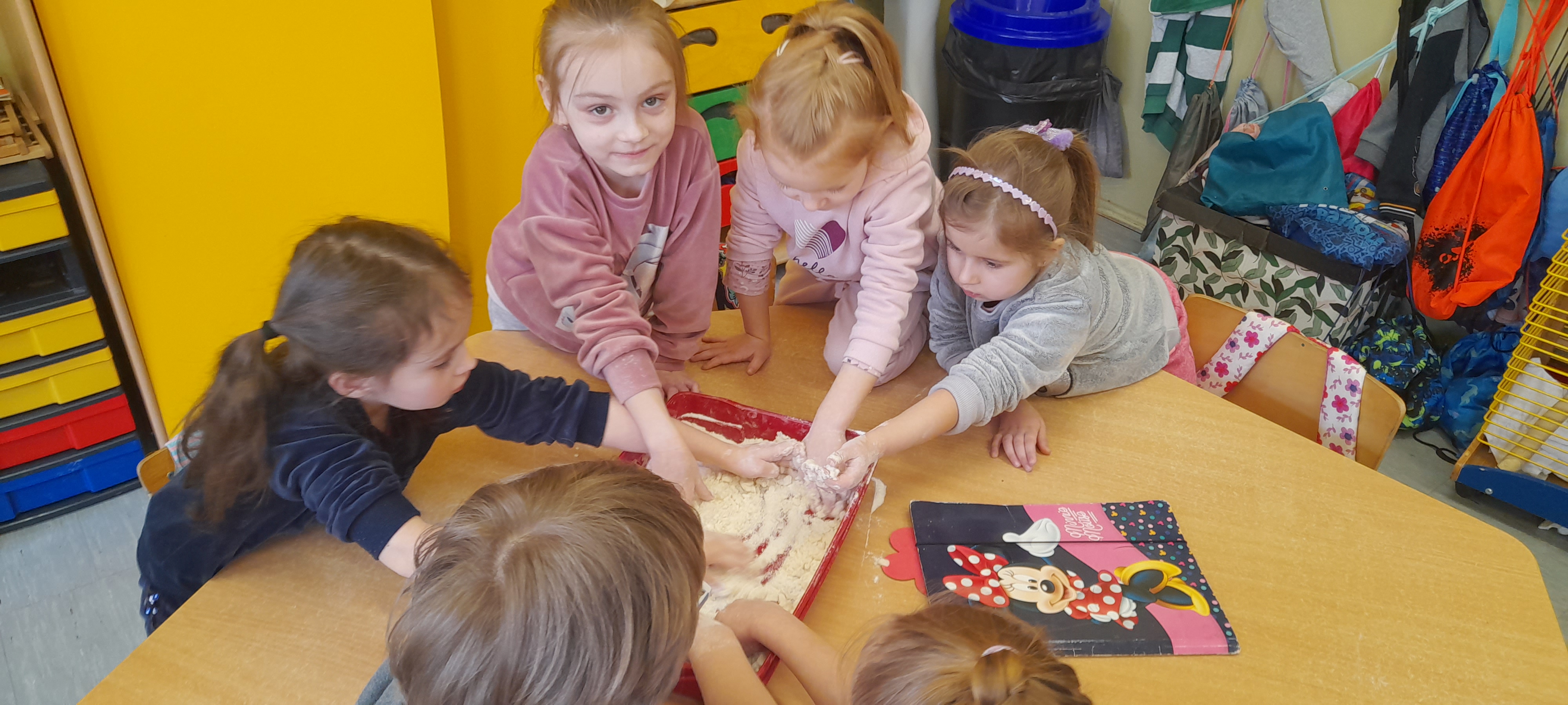 Dzieci zwiększyły sprawność i wydolność, wzmocniły siłę mięśniową. Program innowacji łączył ze sobą treści edukacji przedszkolnej oraz elementy metody integracji sensorycznej. W ramach wdrażanego przedsięwzięcia w drugim semestrze zostały zrealizowane następujące zadania: zabawy piaskiem, samodzielne wykonanie piasku kinetycznego, kolorowe woreczki, woda i kolorowy lód, solne obrazki, figurki z masy solnej, samodzielne wykonanie masy solnej, sypka tablica, zabawy rączkami, zabawy usprawniające aparat artykulacyjny, zabawy i ćwiczenia ruchowe stymulujące układ prioproceptywny, ruchowy, pobudzające zmysł wzroku i słuchu. Zachęcamy do obejrzenia fotorelacji z niektórych zrealizowanych przedsięwzięć: