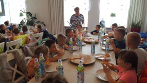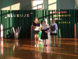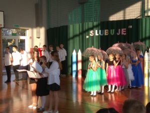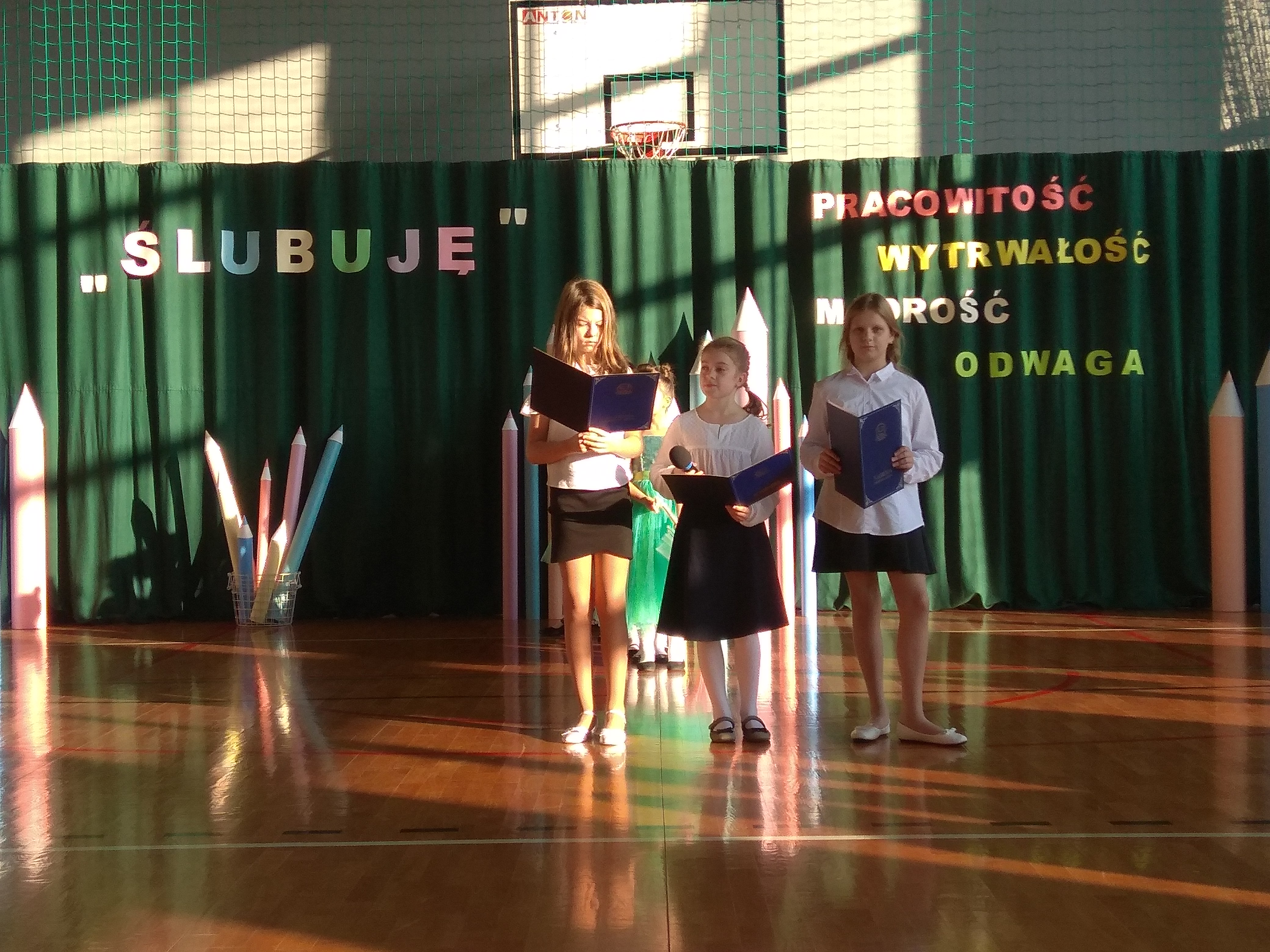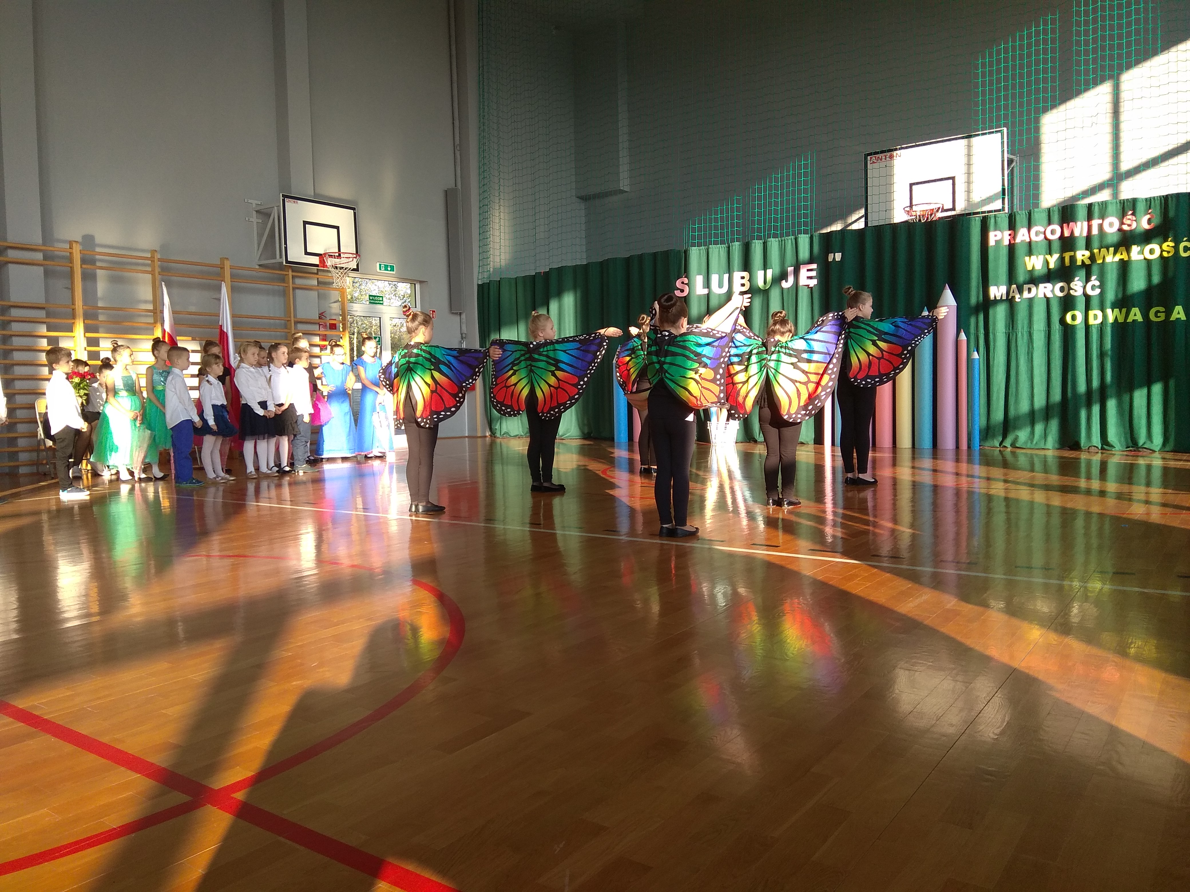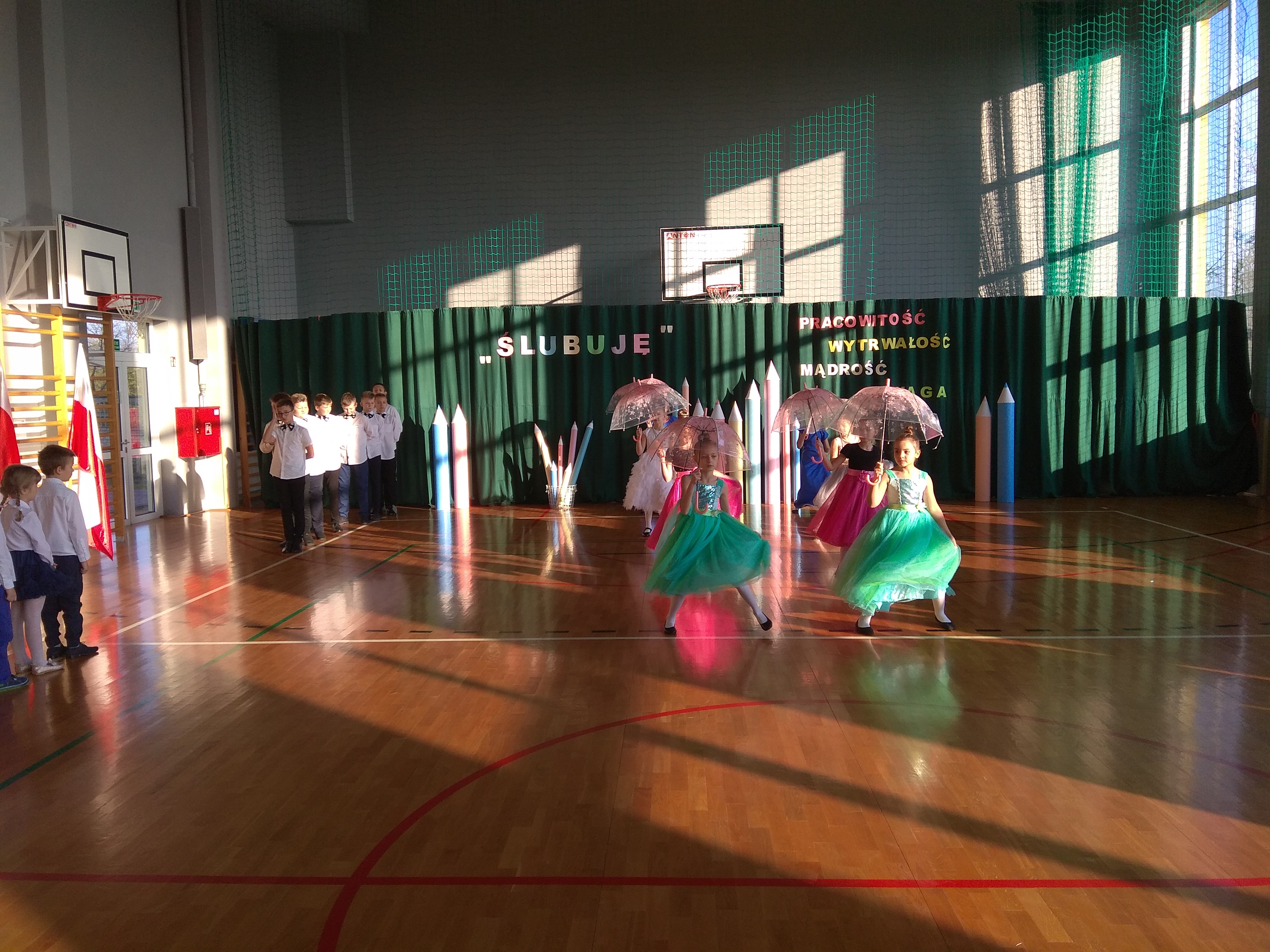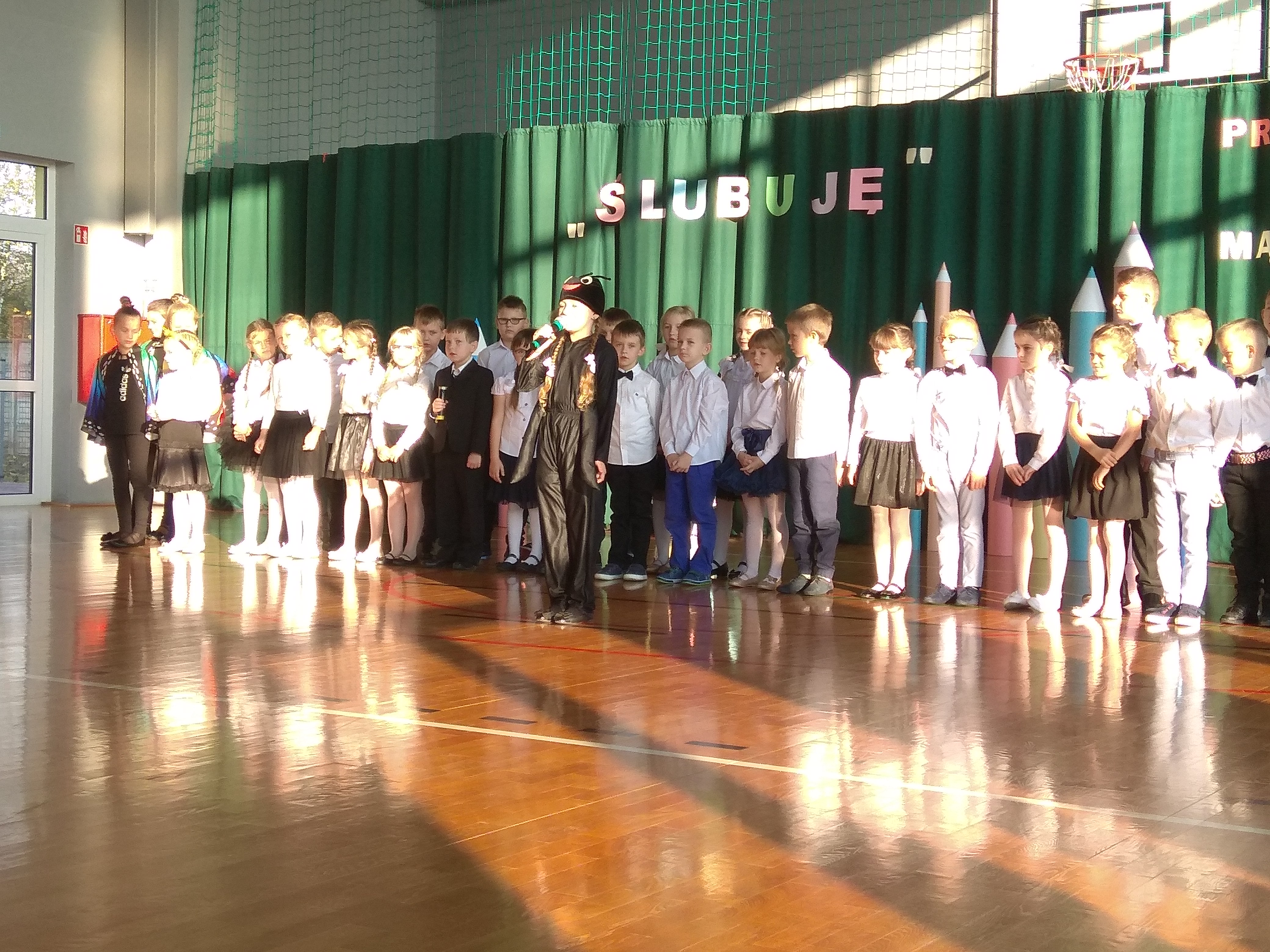 Ceremonię wzbogaciły wzruszające taneczne występy uczniów ze starszych klas. Doniosłym momentem uroczystości było ślubowanie, które wzbudziło wiele emocji. Aktu pasowania dokonała pani dyrektor Małgorzata Trelka. Uczniowie otrzymali drobne upominki, legitymacje uczniowskie oraz dyplomy. W tych wyjątkowych chwilach pierwszoklasistom towarzyszyli rodzice, wychowawcy, nauczyciele, a także starsi koledzy, którzy obiecali im opiekę i wsparcie. Po części oficjalnej uczniowie wyjechali do Krainy Marzeń, gdzie zabawom i szaleństwom nie było końca. Czekała na nich także jeszcze jedna niespodzianka – wizyta w pizzerii. To był naprawdę wyjątkowy dzień!