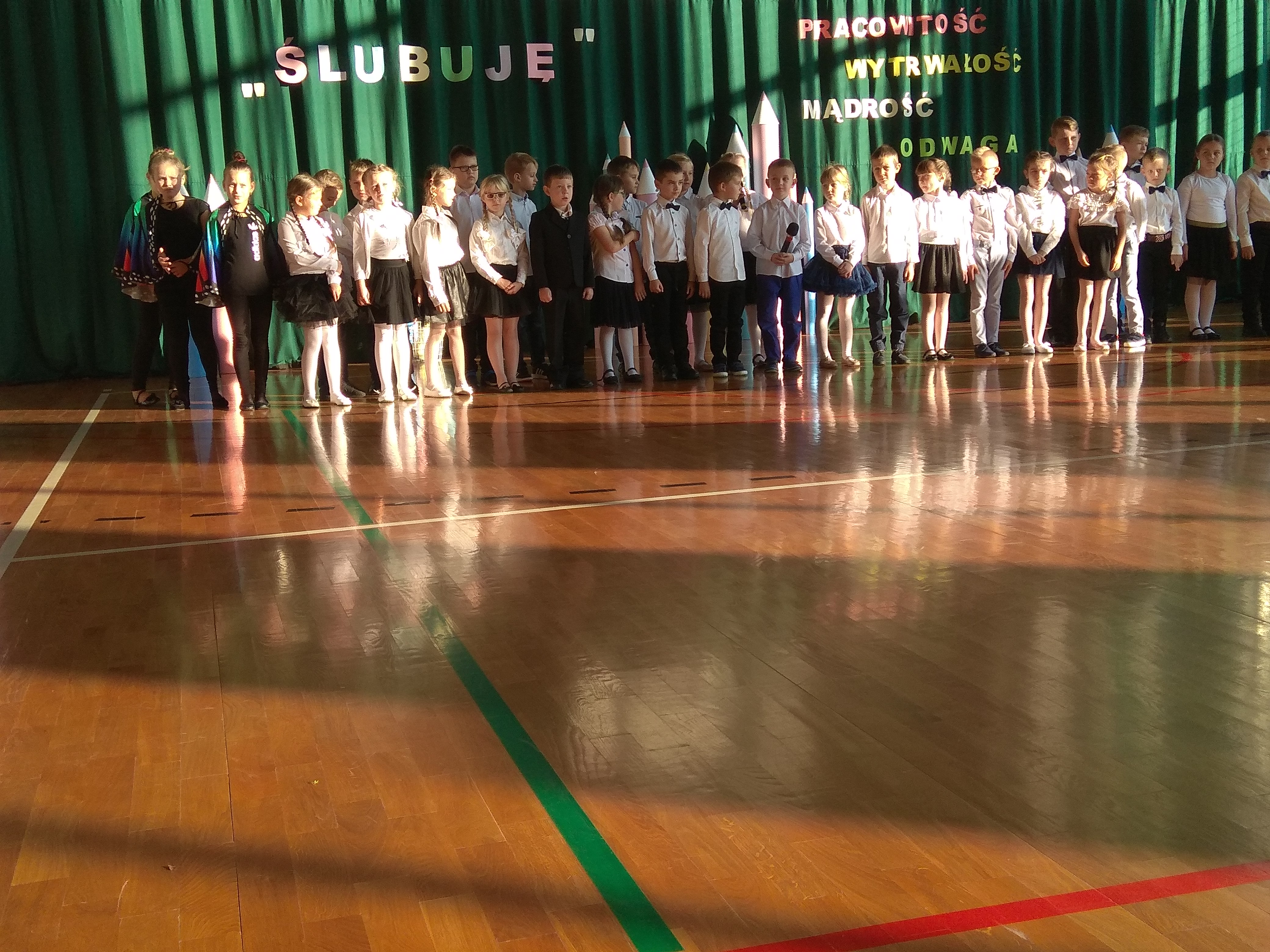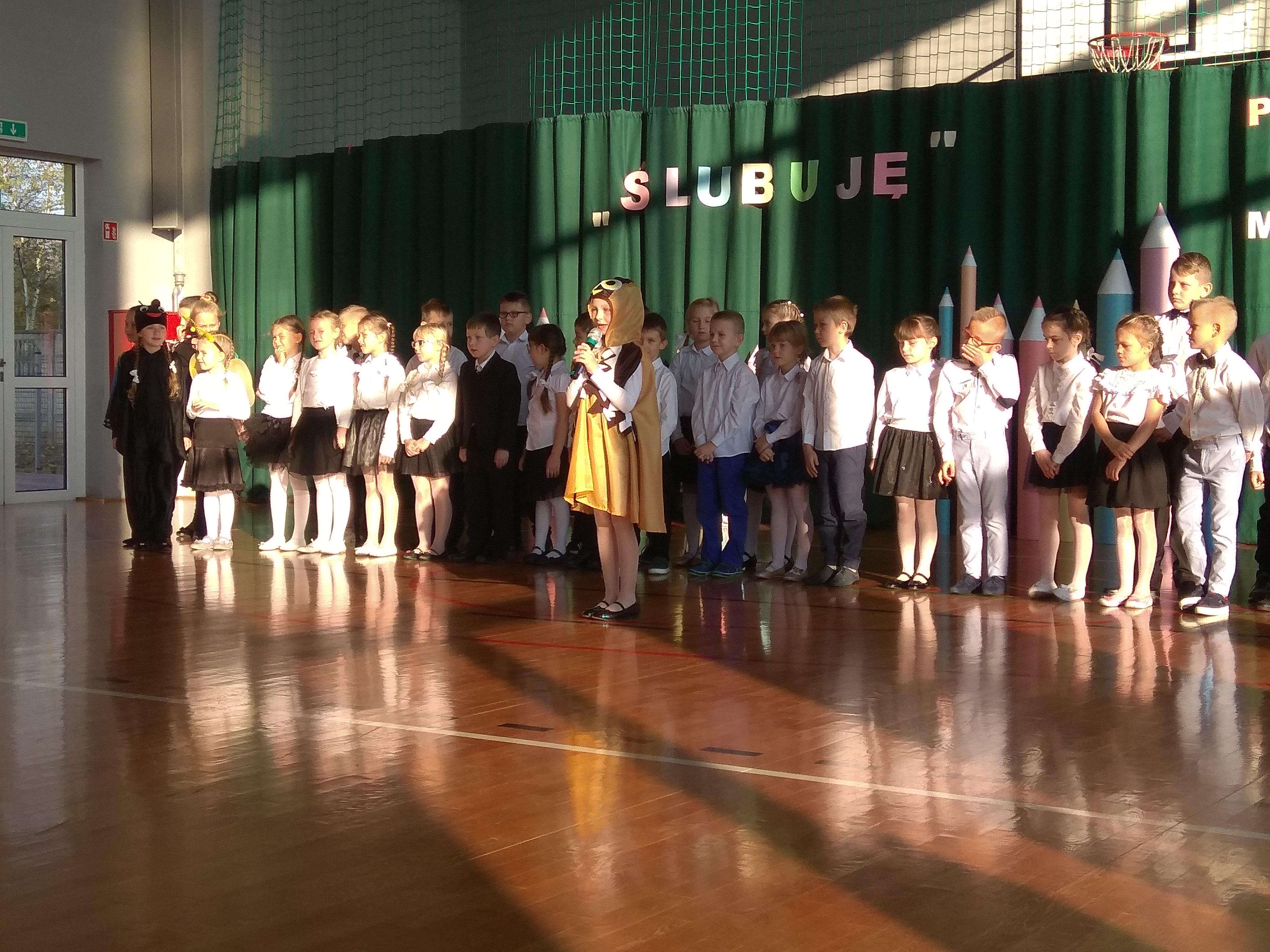 25 października 2019r. to dzień, który na długo utkwi w pamięci najmłodszych uczniów naszej szkoły z klas 1a i 1b. To w tym dniu złożyli uroczyste ślubowanie . Odświętnie ubrani i bardzo przejęci przystąpili do zaprezentowania swoich artystycznych umiejętności.