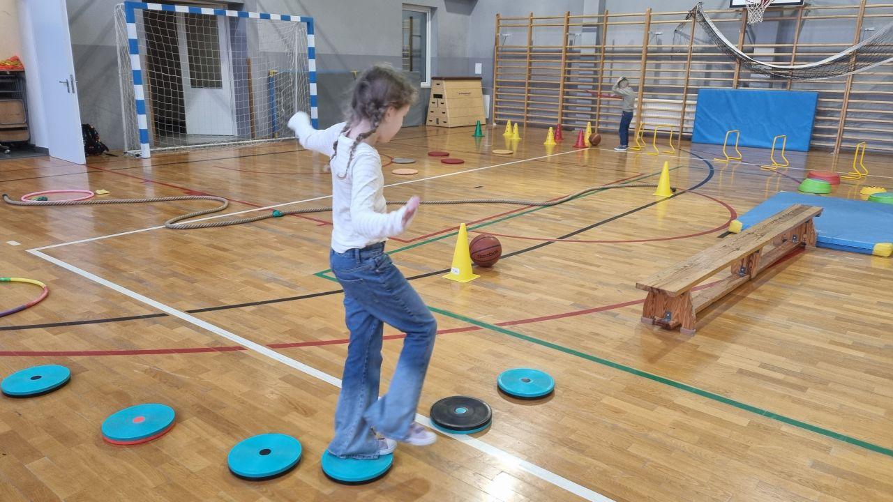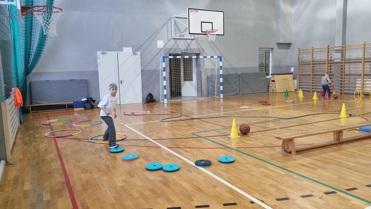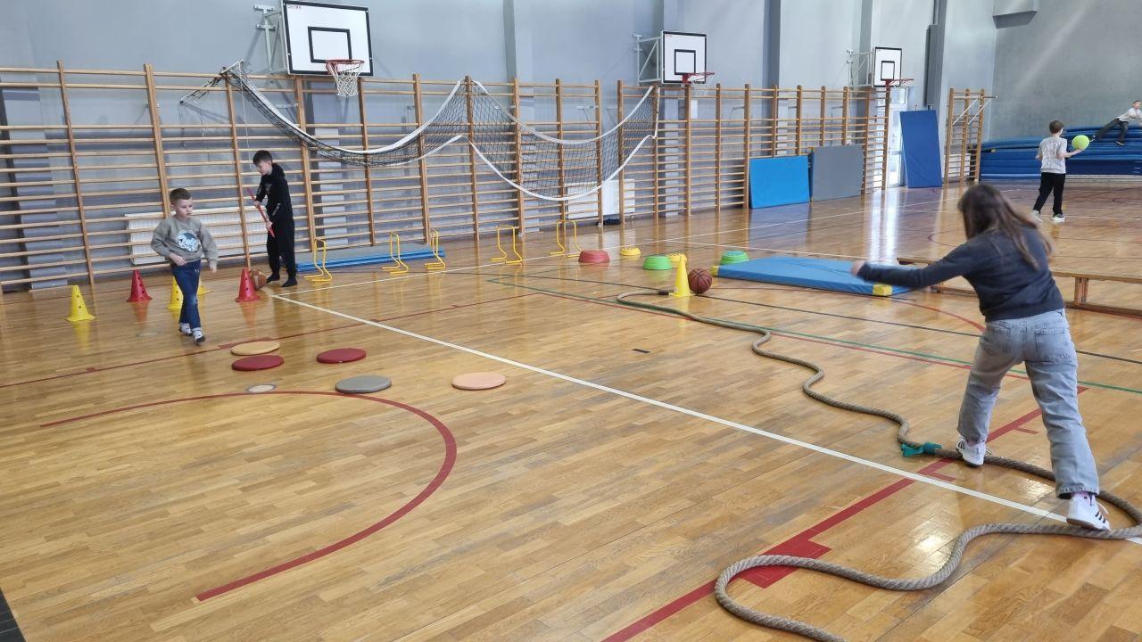 na których dzieci rozwijają swoją sprawność i koordynację. Świetliczaki, korzystając ze sprzętu sportowego i wykorzystując swoją nieograniczaną pomysłowość, budują imponujące tory przeszkód. Zabawa jest przednia, a codzienna porcja ruchu zaliczona!