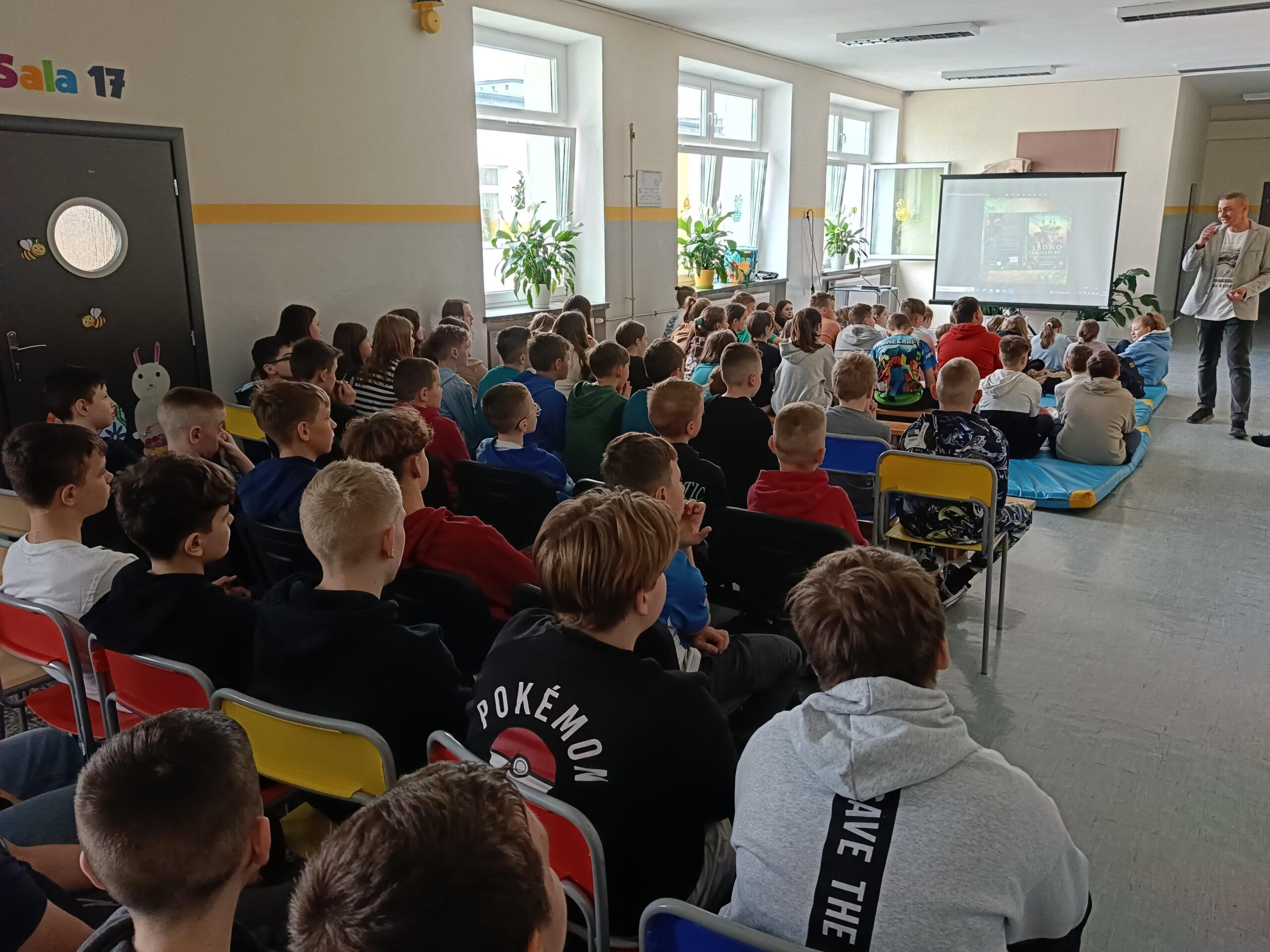 Uczniowie klas 4-7 mieli niezwykłą okazję spotkać się z pisarzem fantastyki, panem Maciejem Wasilewski z Iłży.