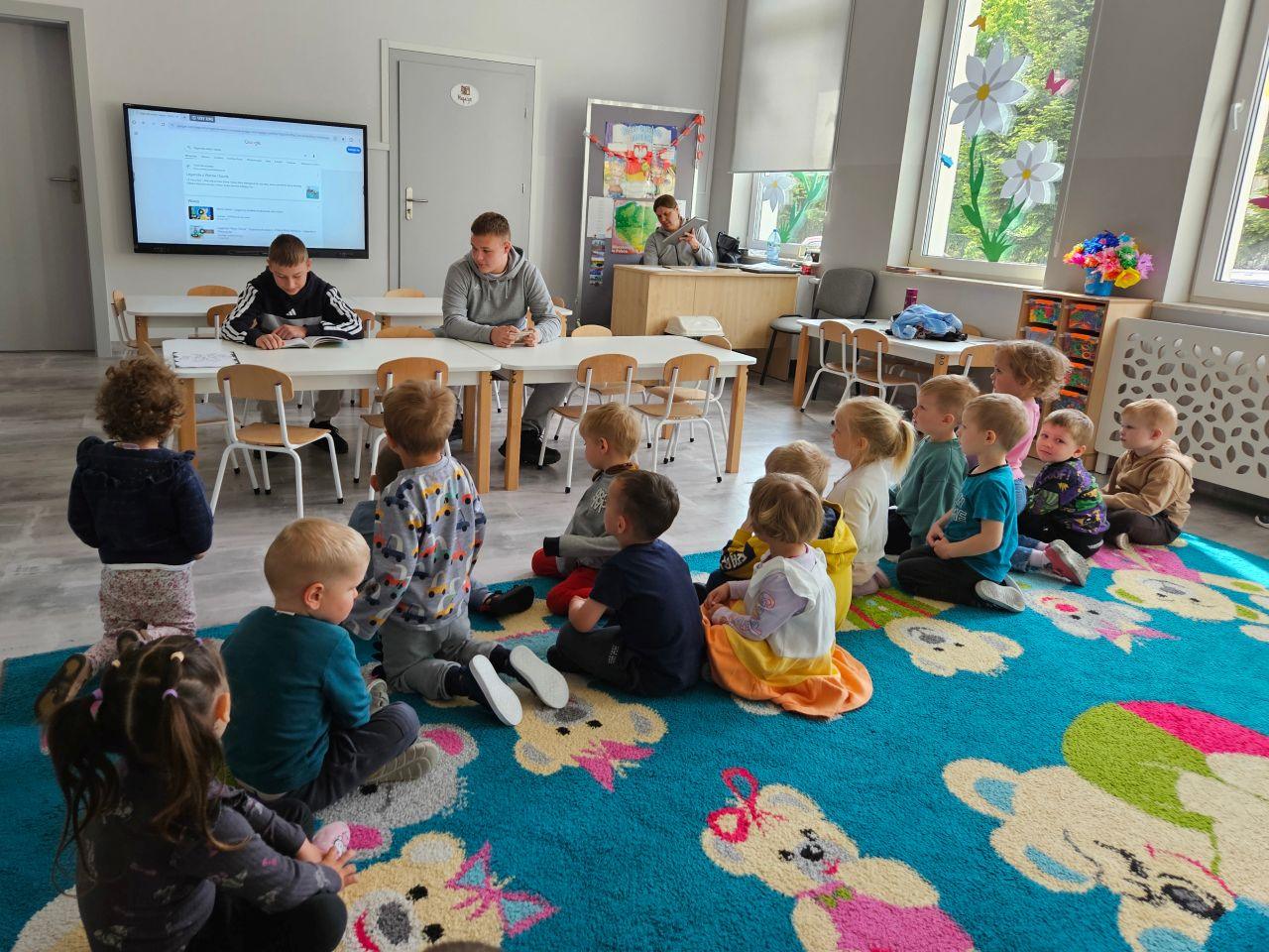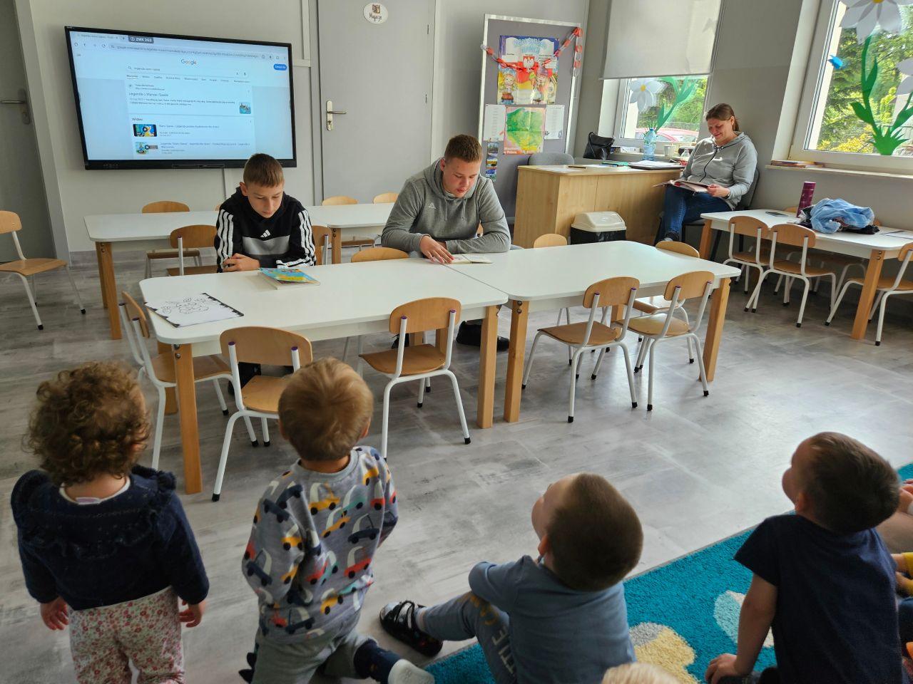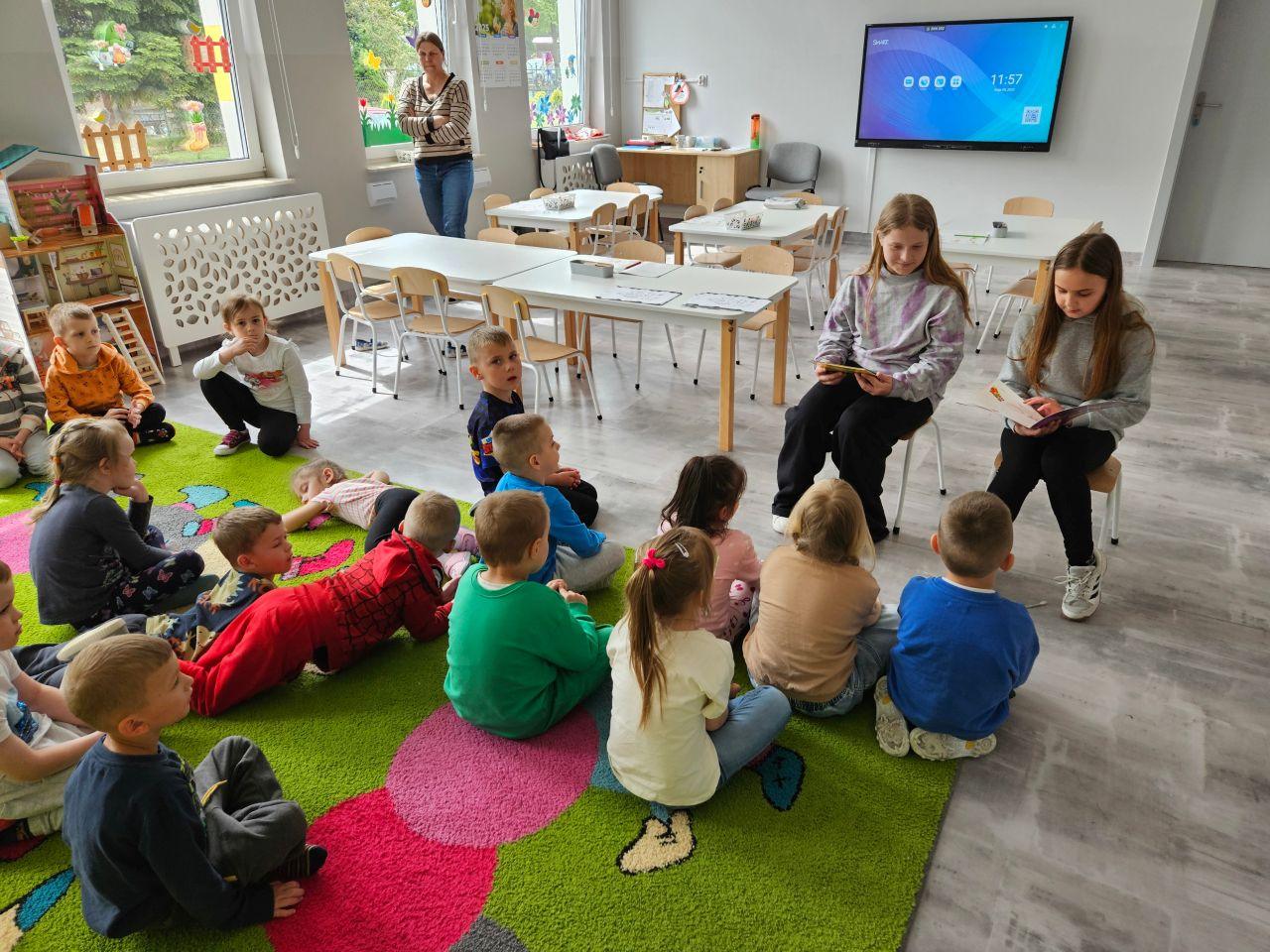 Od początku roku szkolnego, najpierw przedstawiciele samorządu szkolnego, a teraz starsi koledzy i koleżanki odwiedzają przedszkole, żeby poczytać młodszym ciekawe historie. Przedszkolaki słuchają bajek i poznają nowe słowa, a starsi uczą się, jak być odpowiedzialnym i dbać o młodszych. To fajna zabawa i nauka dla wszystkich! Dzięki temu przedszkolaki bardziej lubią książki, a starsi czują się ważni. Jesteśmy dumni z tej inicjatywy, która buduje mosty między różnymi grupami wiekowymi w naszej szkolnej społeczności i promuje tak ważną wartość, jaką jest czytelnictwo.