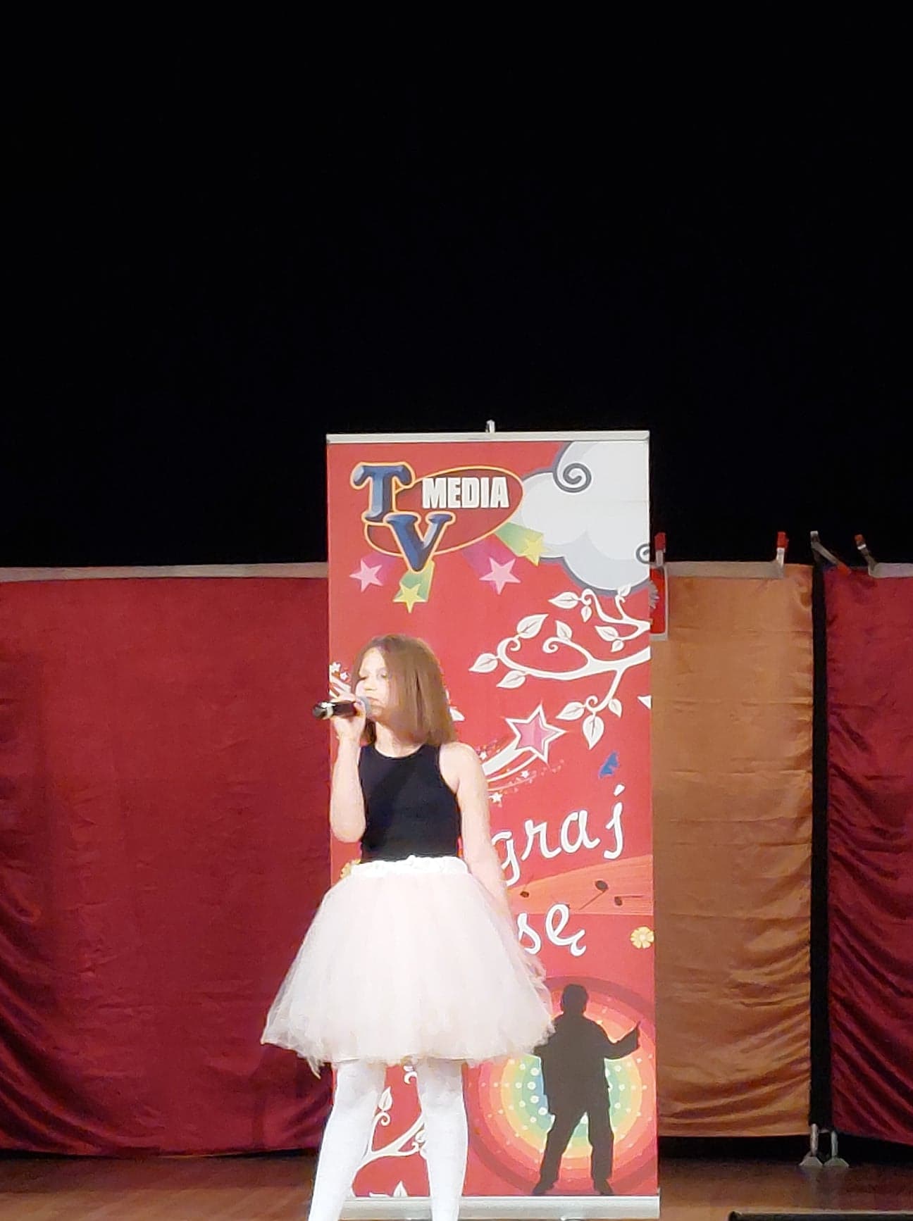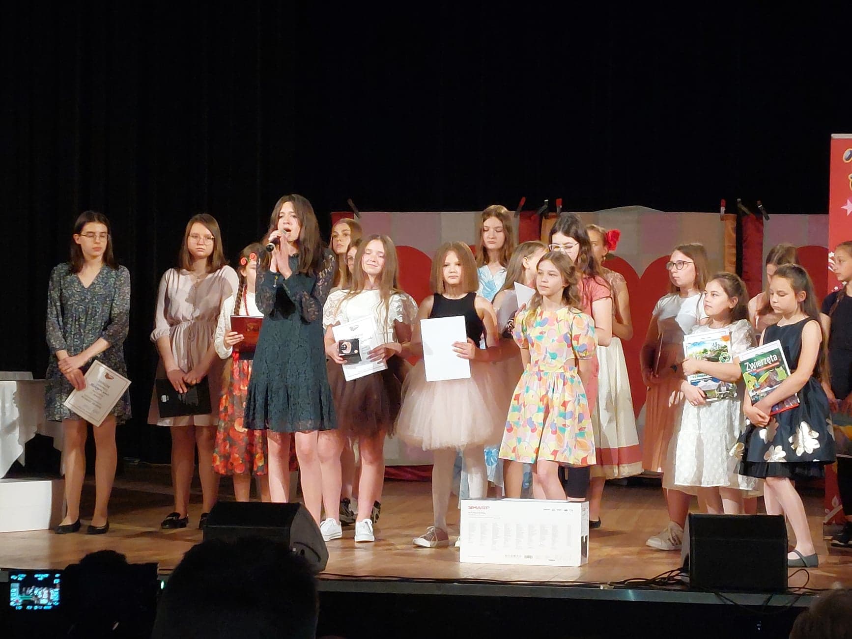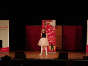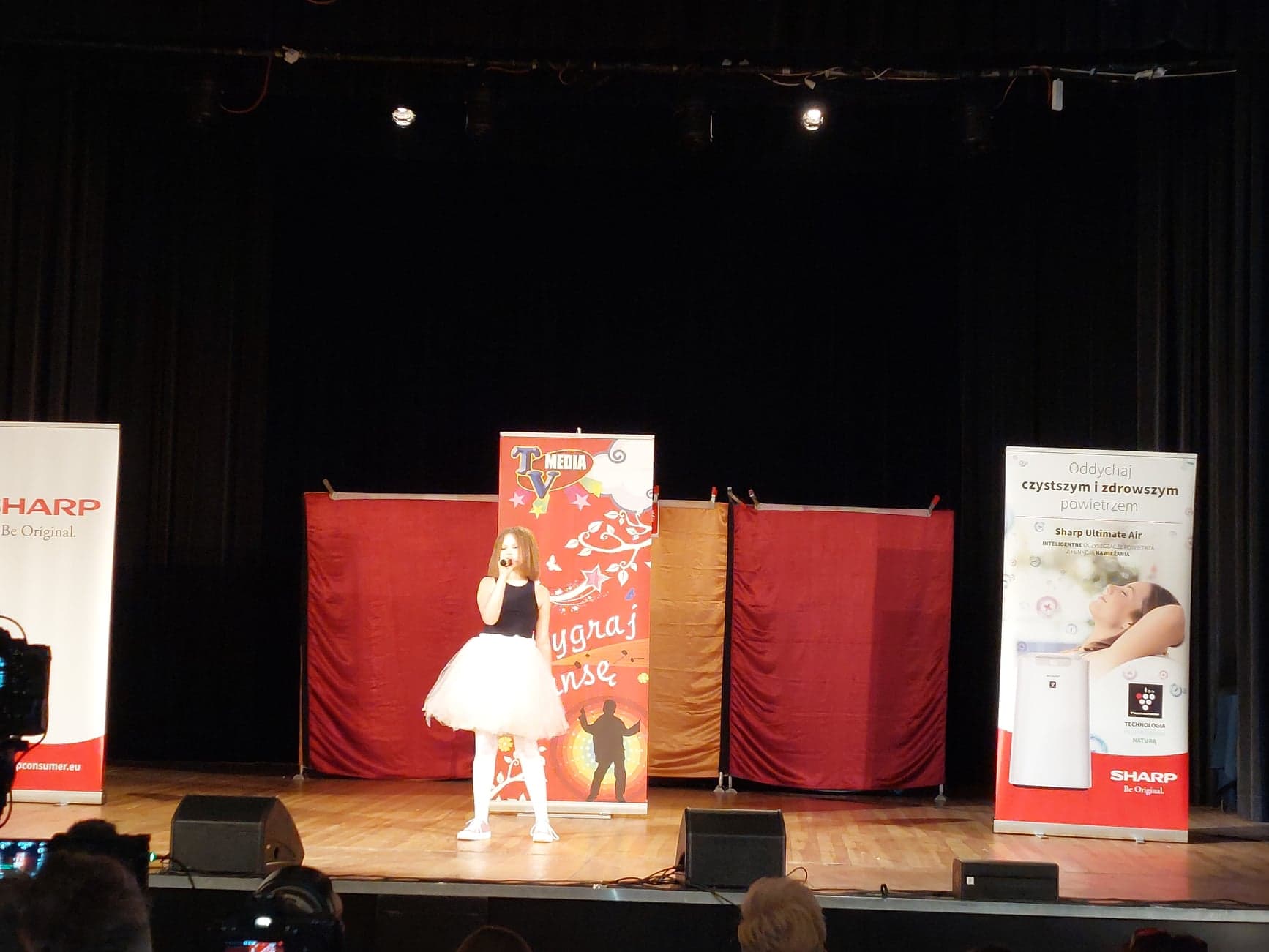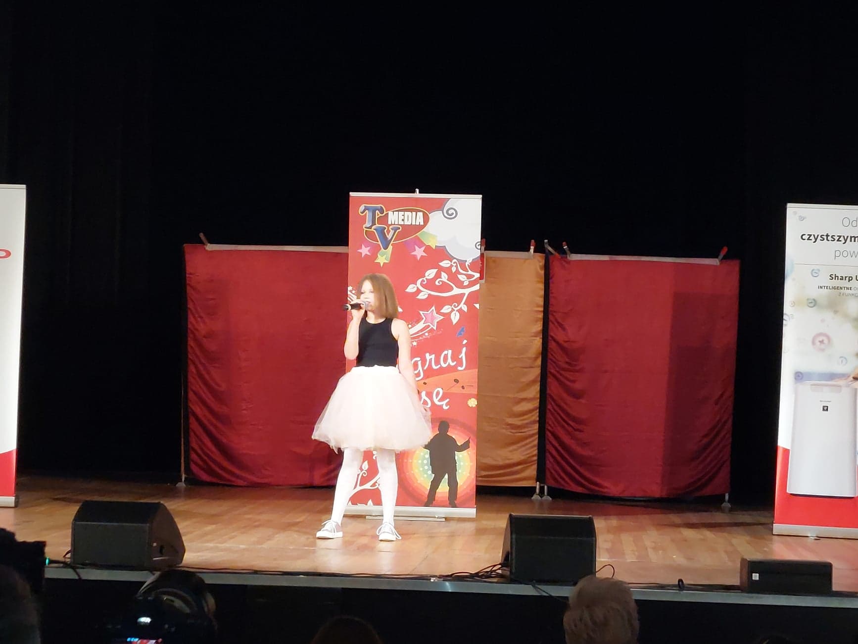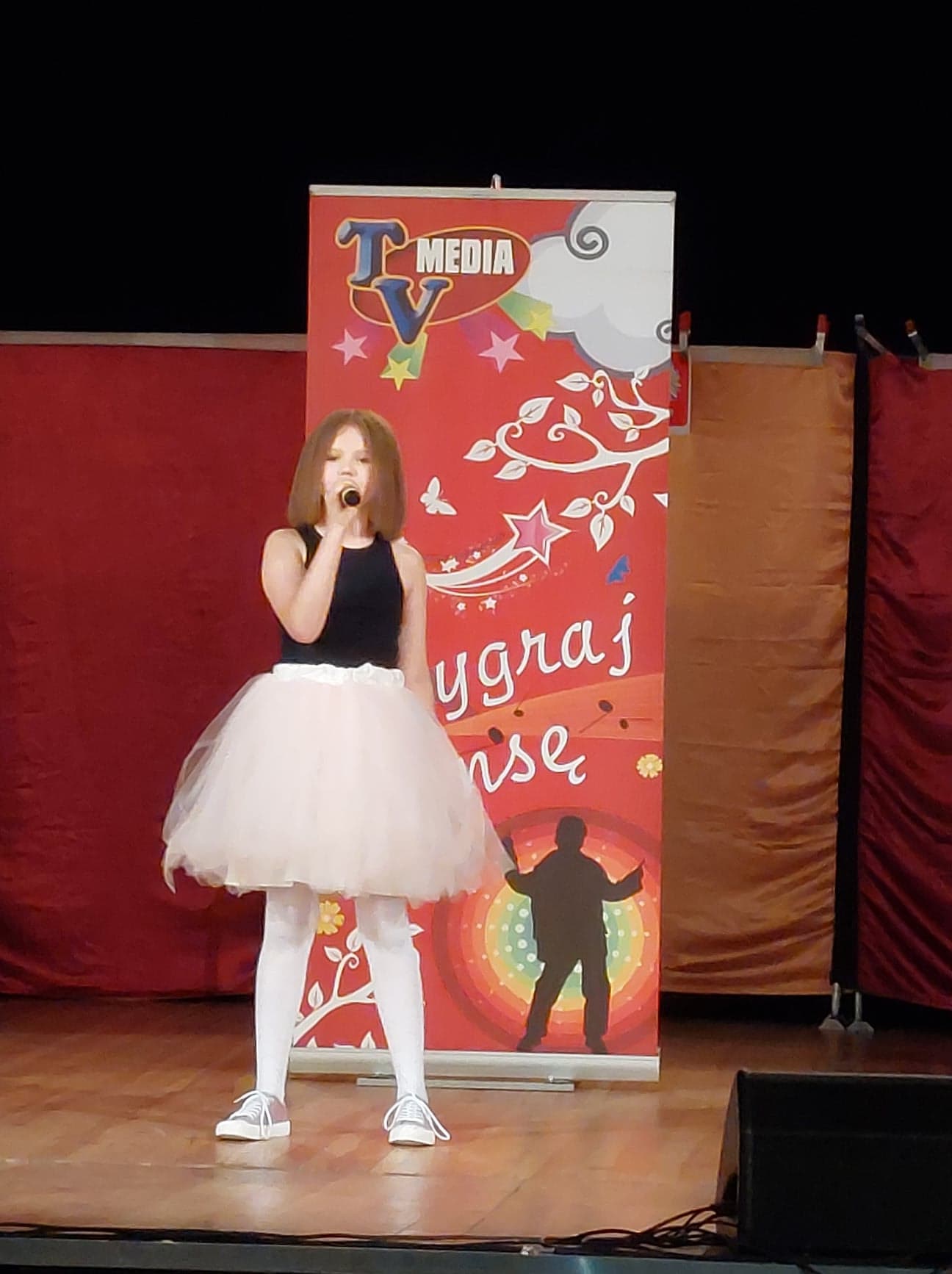 Wokaliści zaprezentowali utwory z gatunku muzyki dziecięcej, a także muzyki popularnej. Wśród dobrze znanych piosenek znalazły się: ,,Czerwone korale”, ,,Dłoń”, ,,Czas nas uczy pogody”, ,,Chodź pomaluj mój świat” i wiele innych. Nasza Antonina na scenie czuła się pewnie, zaprezentowała się wspaniale i przepięknie wyśpiewała dobrze znany dzieciom utwór ,,Mała smutna królewna” Tym samym wywalczyła sobie WYRÓŻNIENIE!