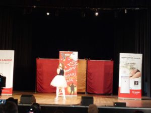 Atmosfera na widowni była gorąca, gdyż każdy wykonawca przyjechał ze swoją grupą wsparcia. Za naszą Antoninę mocno trzymała kciuki klasa 4b.