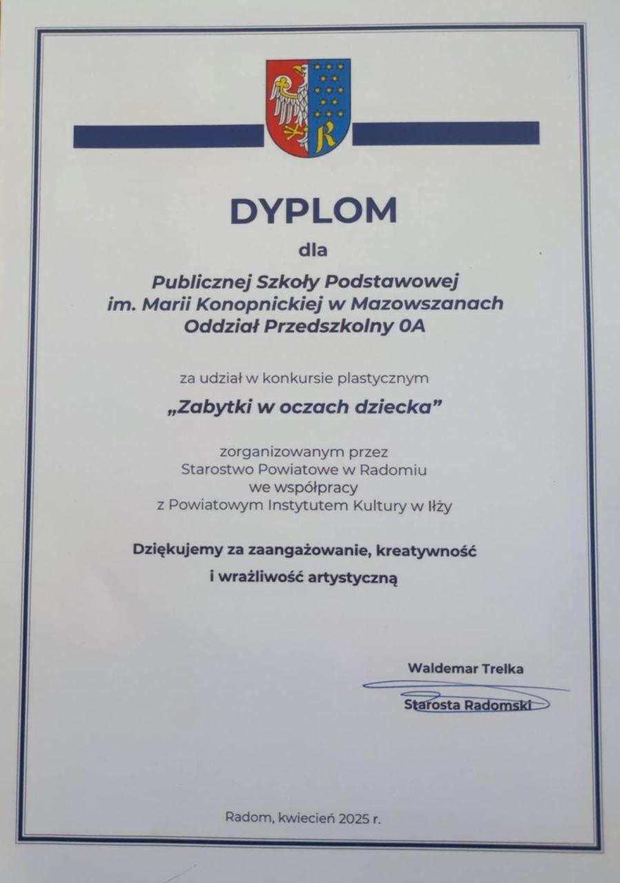 Dzieci z grupy 0a z dumą reprezentowały naszą placówkę w dwóch konkursach zorganizowanych przez Starostwo Powiatowe w Radomiu we współpracy z Powiatowym Instytutem Kultury w Iłży.