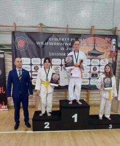Mijający rok szkolny był bardzo owocny dla młodych zawodników judo, którzy sięgnęli po najwyższe odznaki w tej dyscyplinie sportu. Silna grupa czwartoklasistów w składzie: Alicja Górczyńska, Maja Przedwój, Lena Borowiecka i Mikołaj Odzimek, to reprezentanci klubu ULKS Judo Kowala i jednocześnie bardzo dobrzy uczniowie naszej szkoły. Trudno wymienić wszystkie miejsca, gdzie występowali młodzi sportowcy, ale na pewno warto wspomnieć o turnieju judo w Bardejovie. Turniej zgromadził 1000 zawodników z 12 państw, z 82 klubów. Zawodnikom klubu ULKS Judo Kowala udało się wywalczyć 8 medali co pozwoliło zająć 15 miejsce w klasyfikacji medalowej. Cieszymy się z sukcesów naszych uczniów, podziwiamy wytrwałość i siłę w dążeniu do celu. Gorąco im kibicujemy i życzymy dalszych sukcesów.