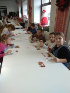 Drugoklasiści poznali historie piernikarstwa, własnoręcznie wytworzyli kolorowe lukry i ozdobili pierniczki, które pięknie zapakowane zawisną na choinkach, staną się prezentem dla najbliższych, a część od razu została zjedzona z wielkim apetytem.