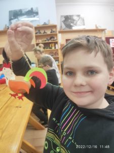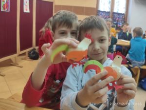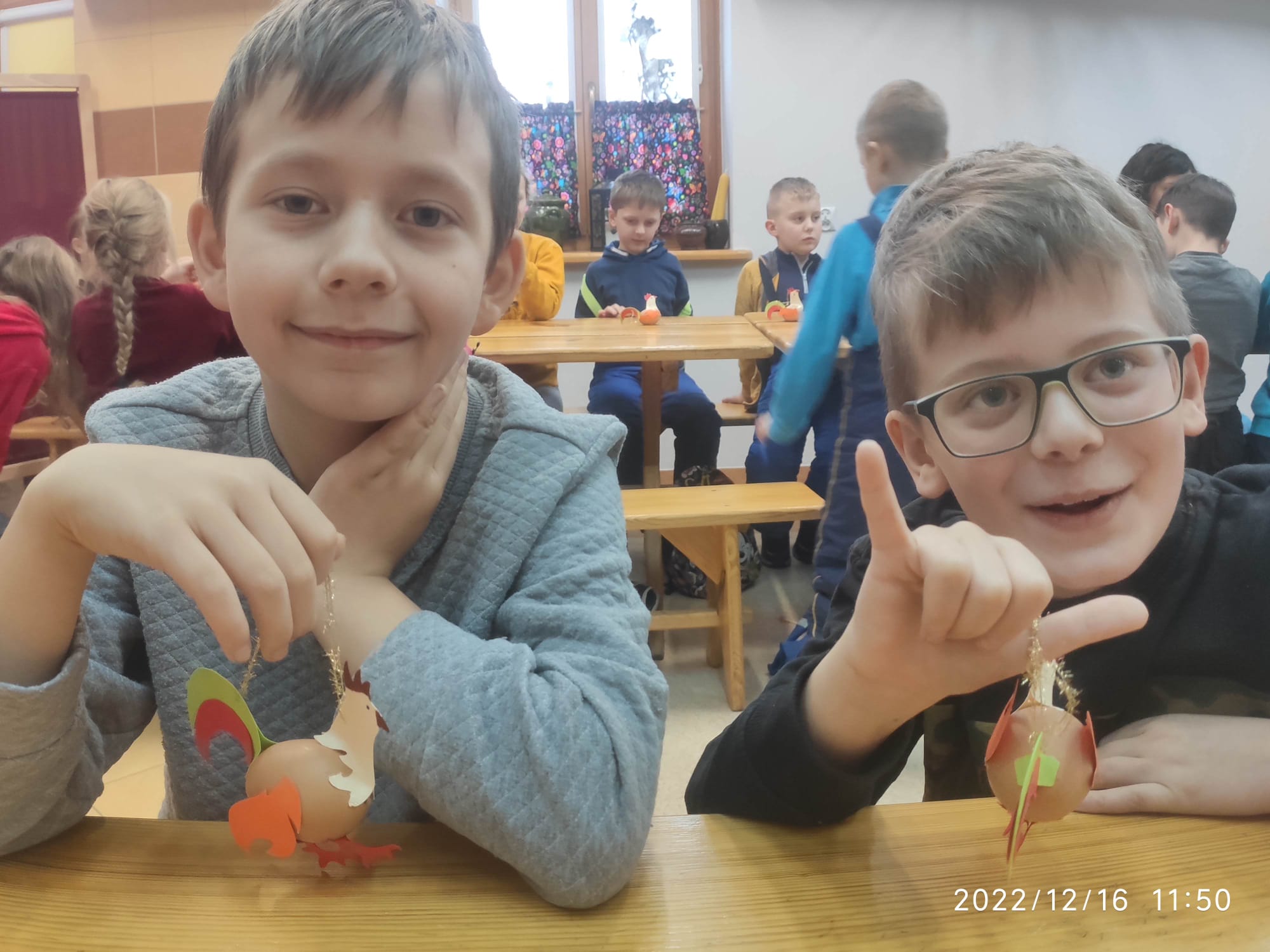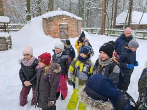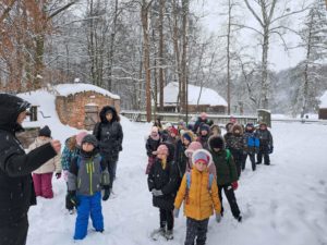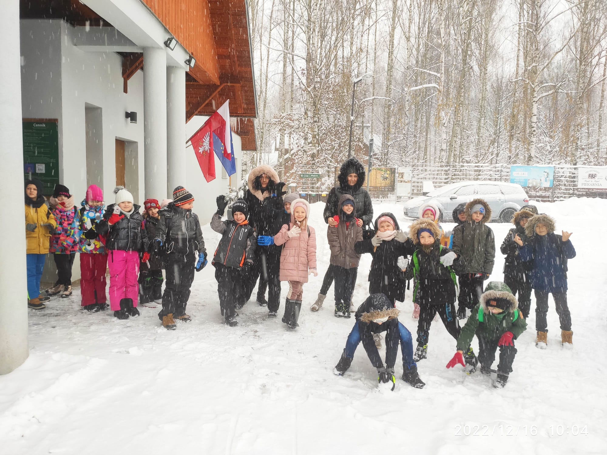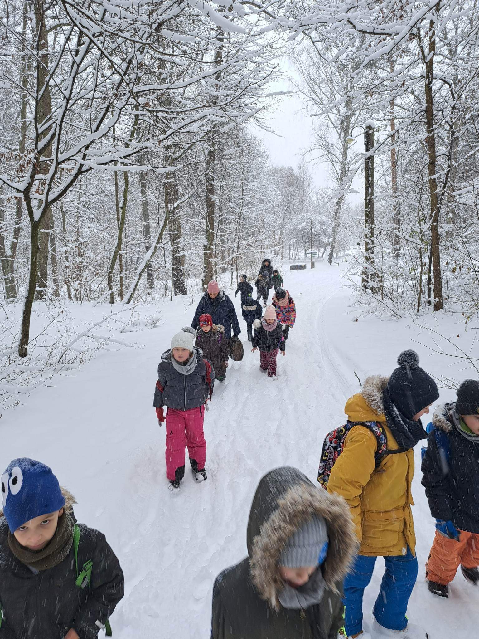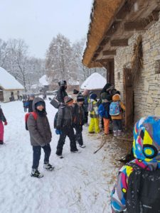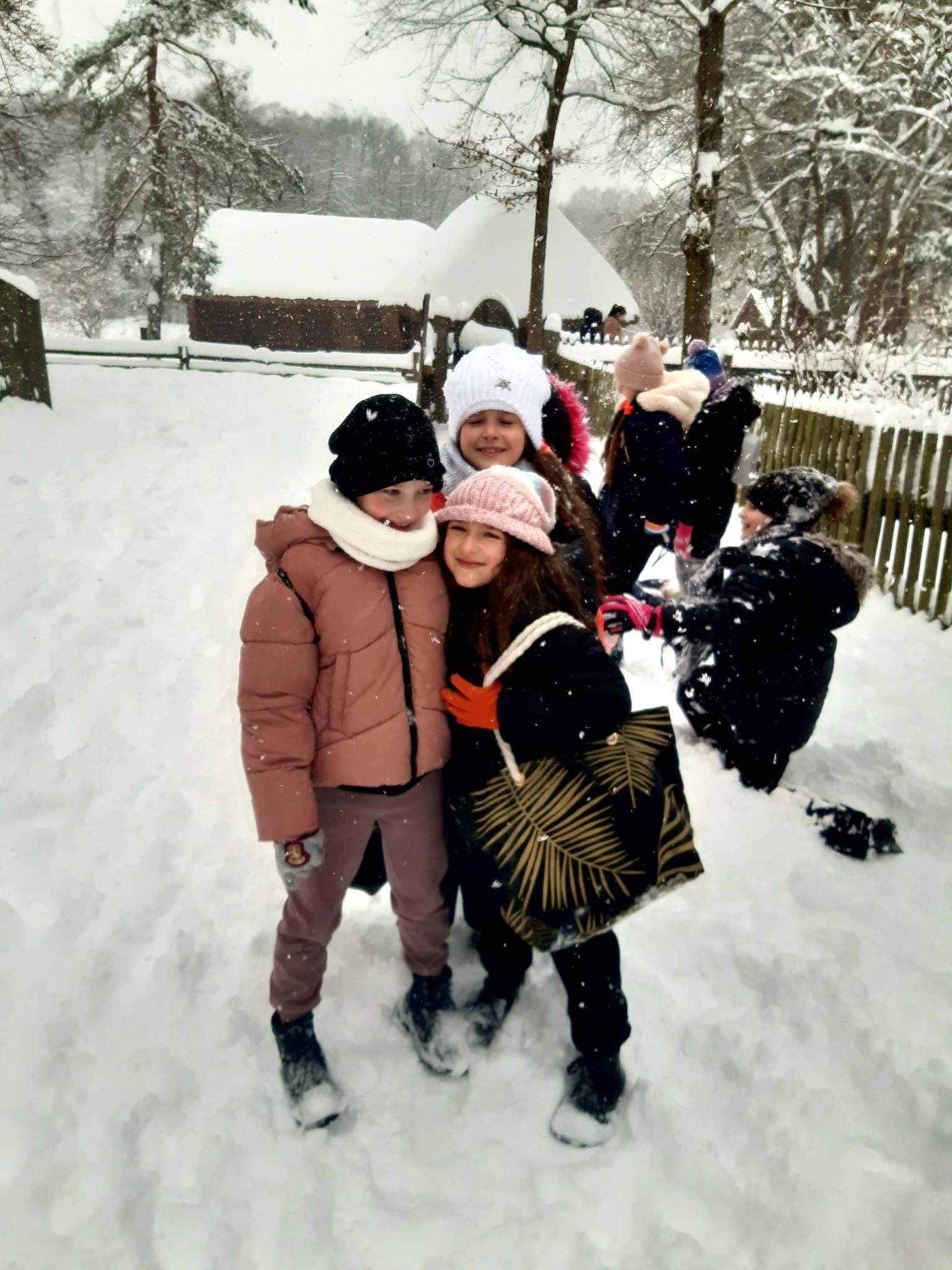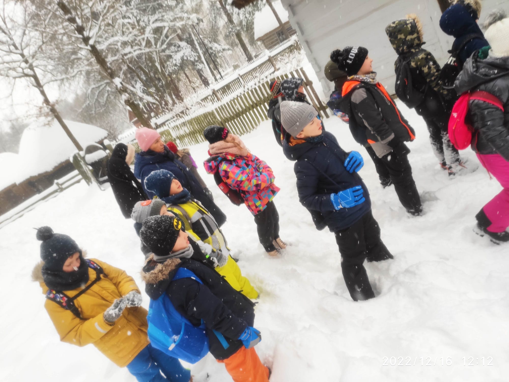 Uczniowie klasy 2a, 2b, 3a i 3b wzięli udział w wycieczce do Muzeum Wsi Radomskiej. Program wycieczki obejmował lekcję warsztatową „Wigilia i Boże Narodzenie” oraz zwiedzanie skansenu pod opieką przewodnika. Uczniowie poznali tradycje związane z czasem adwentu oraz Świąt Bożego Narodzenia. W ramach lekcji odbyły się również zajęcia plastyczne, których celem było wykonanie tradycyjnej ozdoby choinkowej- papierowego kogucika na wydmuszce jajka. Wszyscy świetnie poradzili sobie z tym zadaniem, a przy tym bardzo dobrze się bawili. Kolejnym punktem wycieczki był spacer po zaśnieżonym skansenie. Przewodnik w ciekawy sposób opowiadał o dawnym życiu codziennym i zwyczajach świątecznych na radomskiej wsi. W zabudowaniach gospodarskich i domostwach, uczniowie uzupełnili swoją wiedzę o tradycjach bożonarodzeniowych. To był bardzo udany dzień!