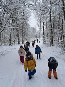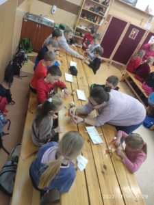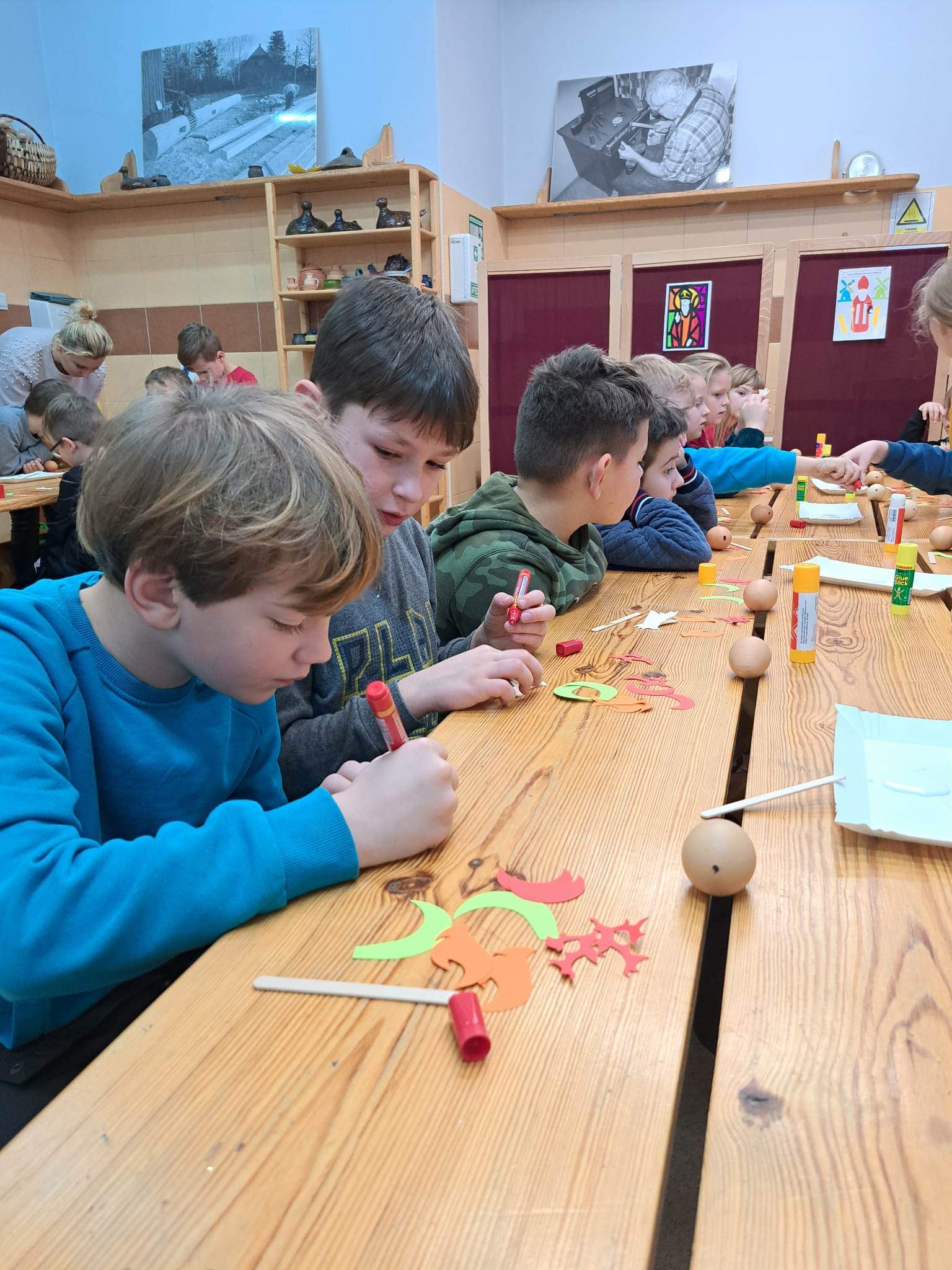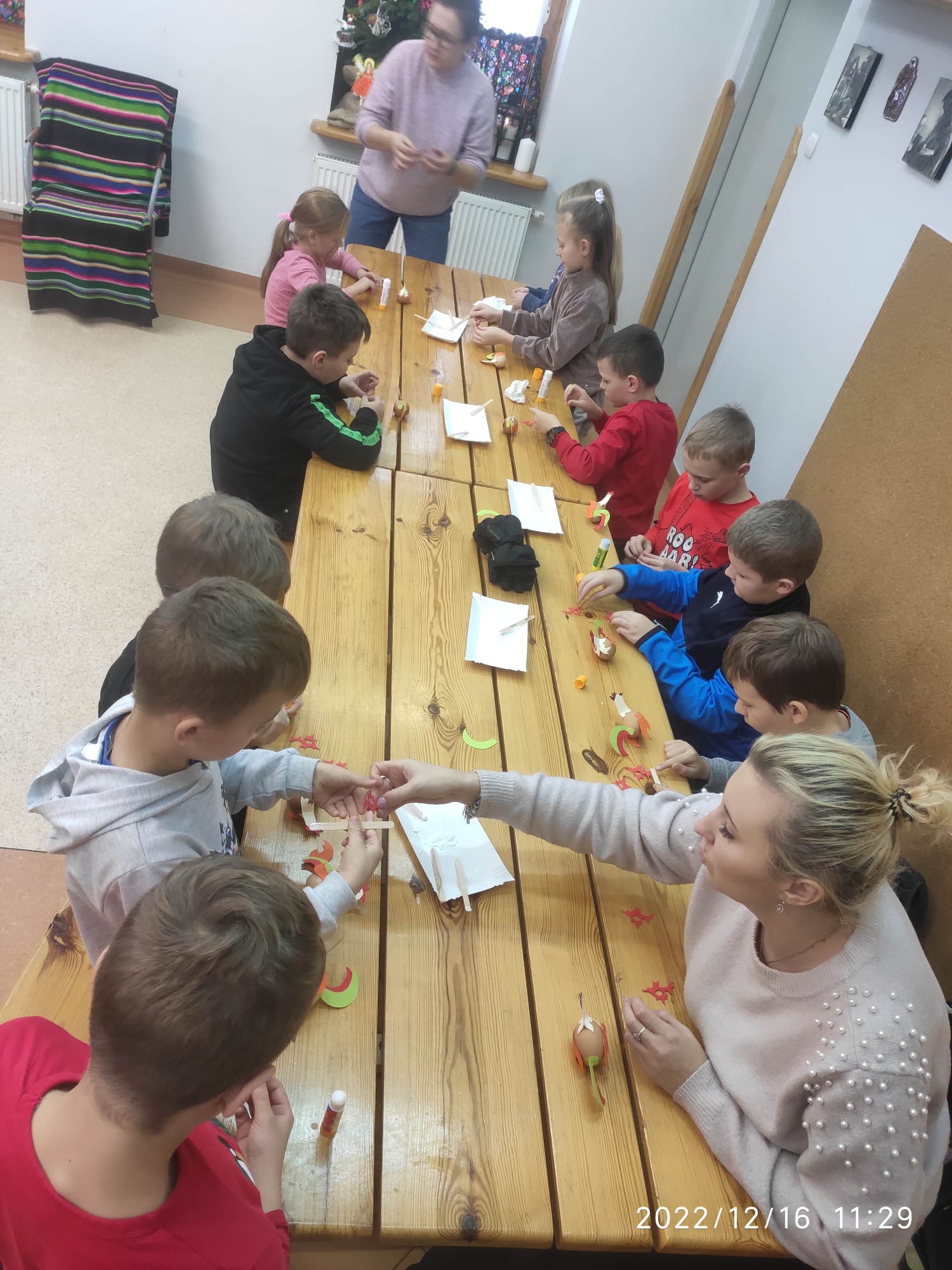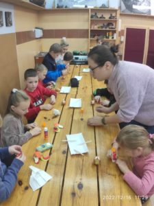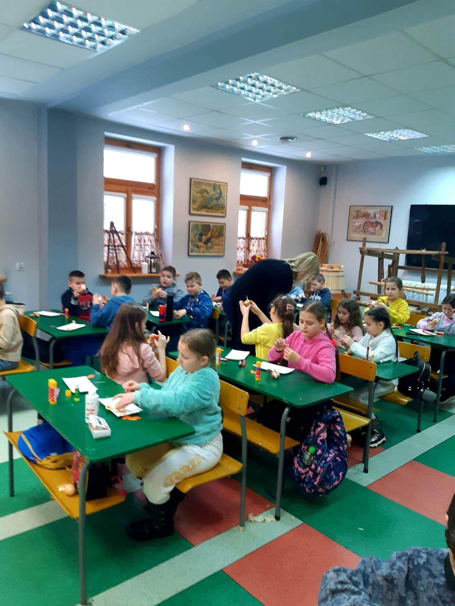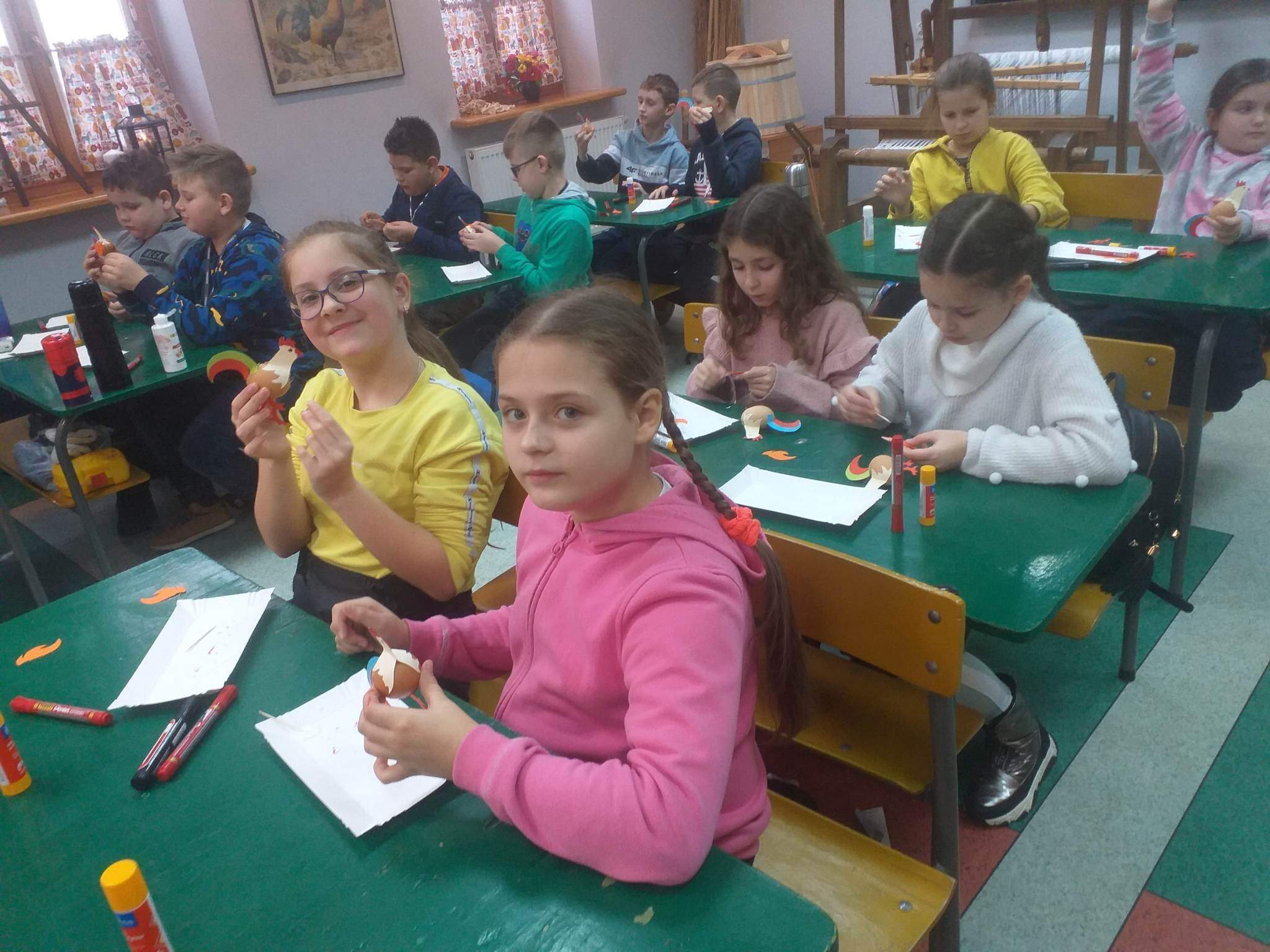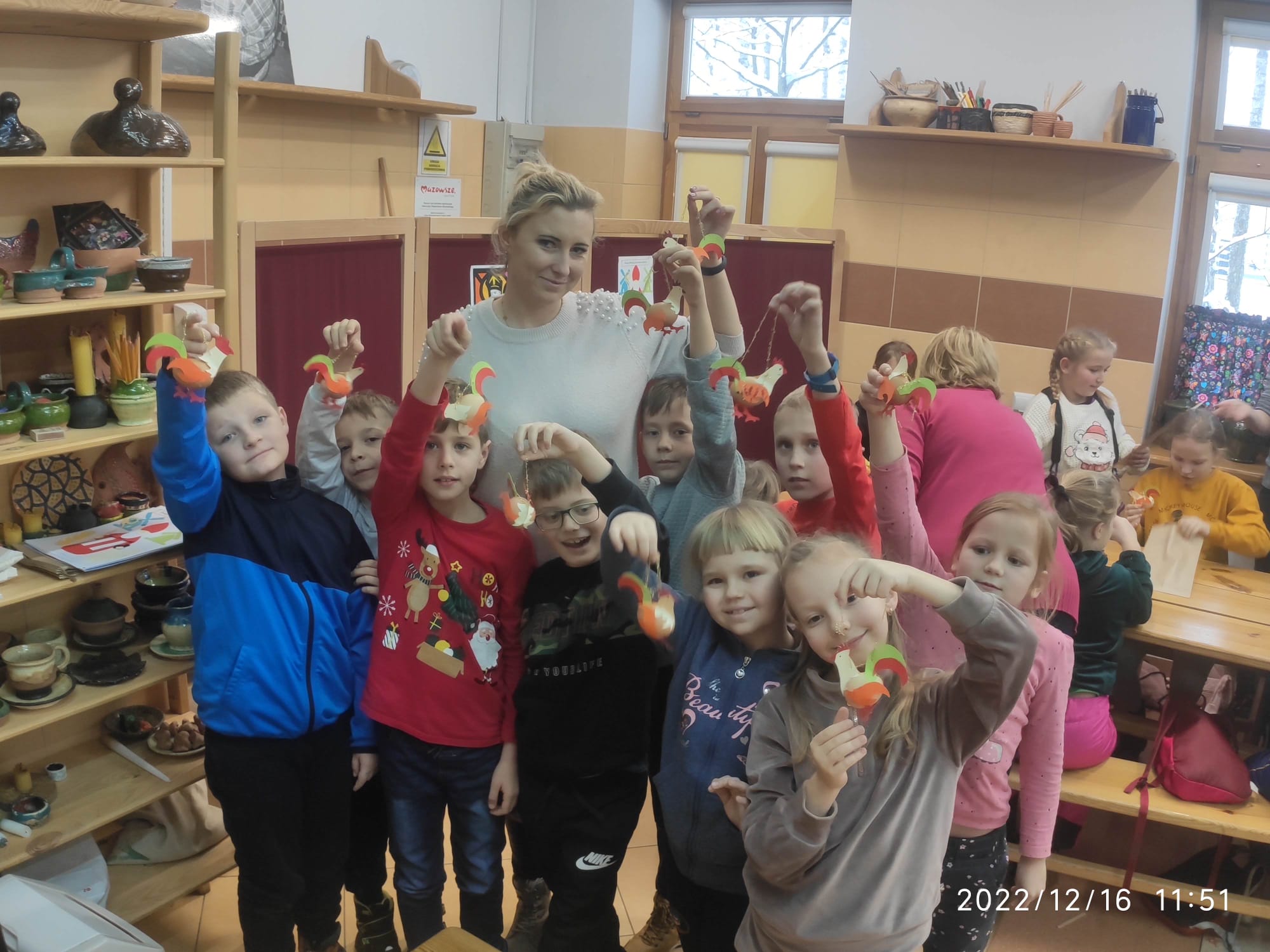 Uczniowie klasy 2a, 2b, 3a i 3b wzięli udział w wycieczce do Muzeum Wsi Radomskiej. Program wycieczki obejmował lekcję warsztatową „Wigilia i Boże Narodzenie” oraz zwiedzanie skansenu pod opieką przewodnika. Uczniowie poznali tradycje związane z czasem adwentu oraz Świąt Bożego Narodzenia. W ramach lekcji odbyły się również zajęcia plastyczne, których celem było wykonanie tradycyjnej ozdoby choinkowej- papierowego kogucika na wydmuszce jajka. Wszyscy świetnie poradzili sobie z tym zadaniem, a przy tym bardzo dobrze się bawili. Kolejnym punktem wycieczki był spacer po zaśnieżonym skansenie. Przewodnik w ciekawy sposób opowiadał o dawnym życiu codziennym i zwyczajach świątecznych na radomskiej wsi. W zabudowaniach gospodarskich i domostwach, uczniowie uzupełnili swoją wiedzę o tradycjach bożonarodzeniowych. To był bardzo udany dzień!