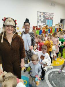 W tym samym dniu w przedszkolu świętowaliśmy Światowy Dzień Pluszowego Misia, podczas którego na dzieci czekało wiele atrakcji. Przedszkolaki przyniosły do placówki swoje ulubione pluszowe misie, które towarzyszyły im przez cały dzień. W sali odbyły się: