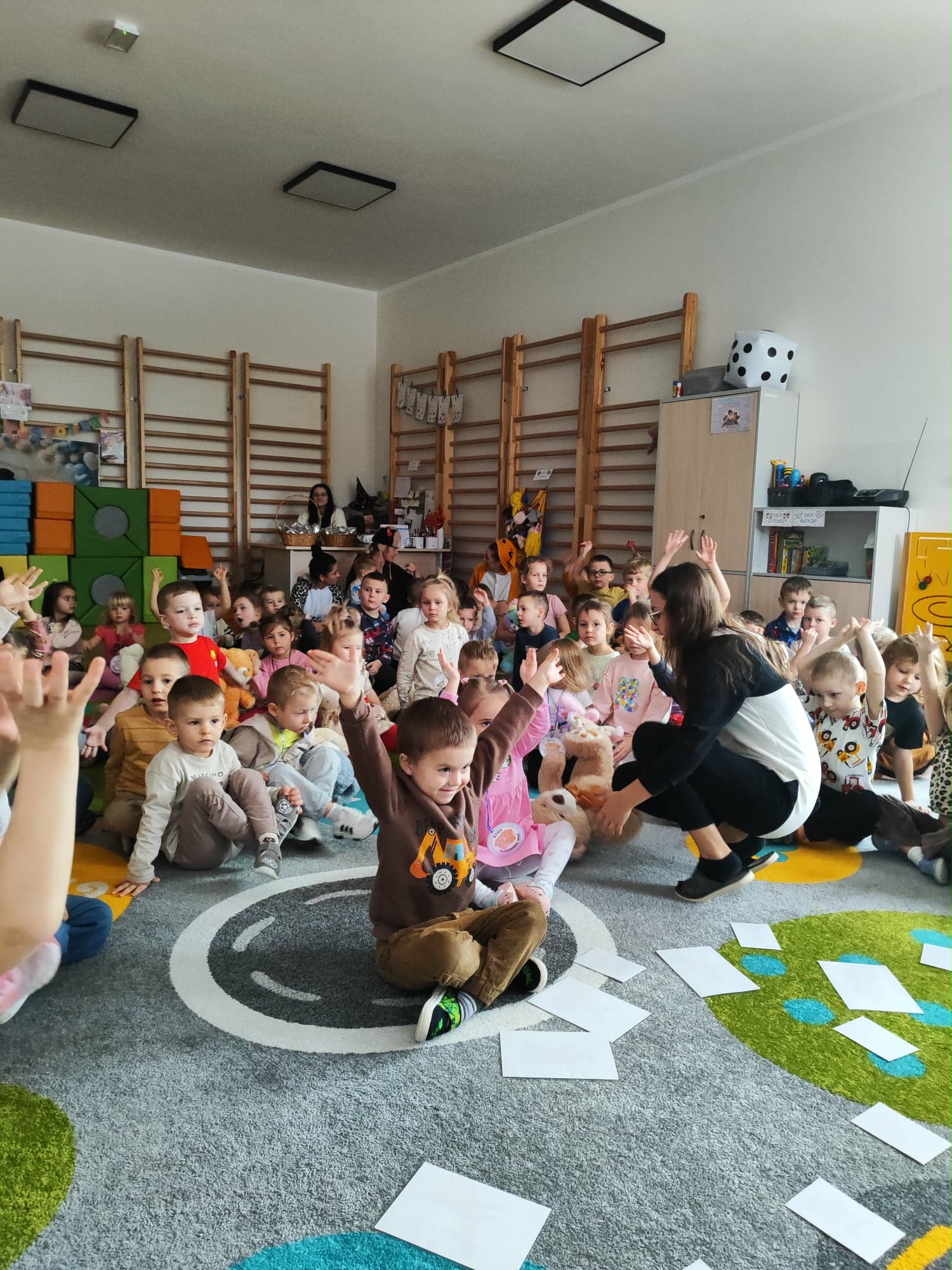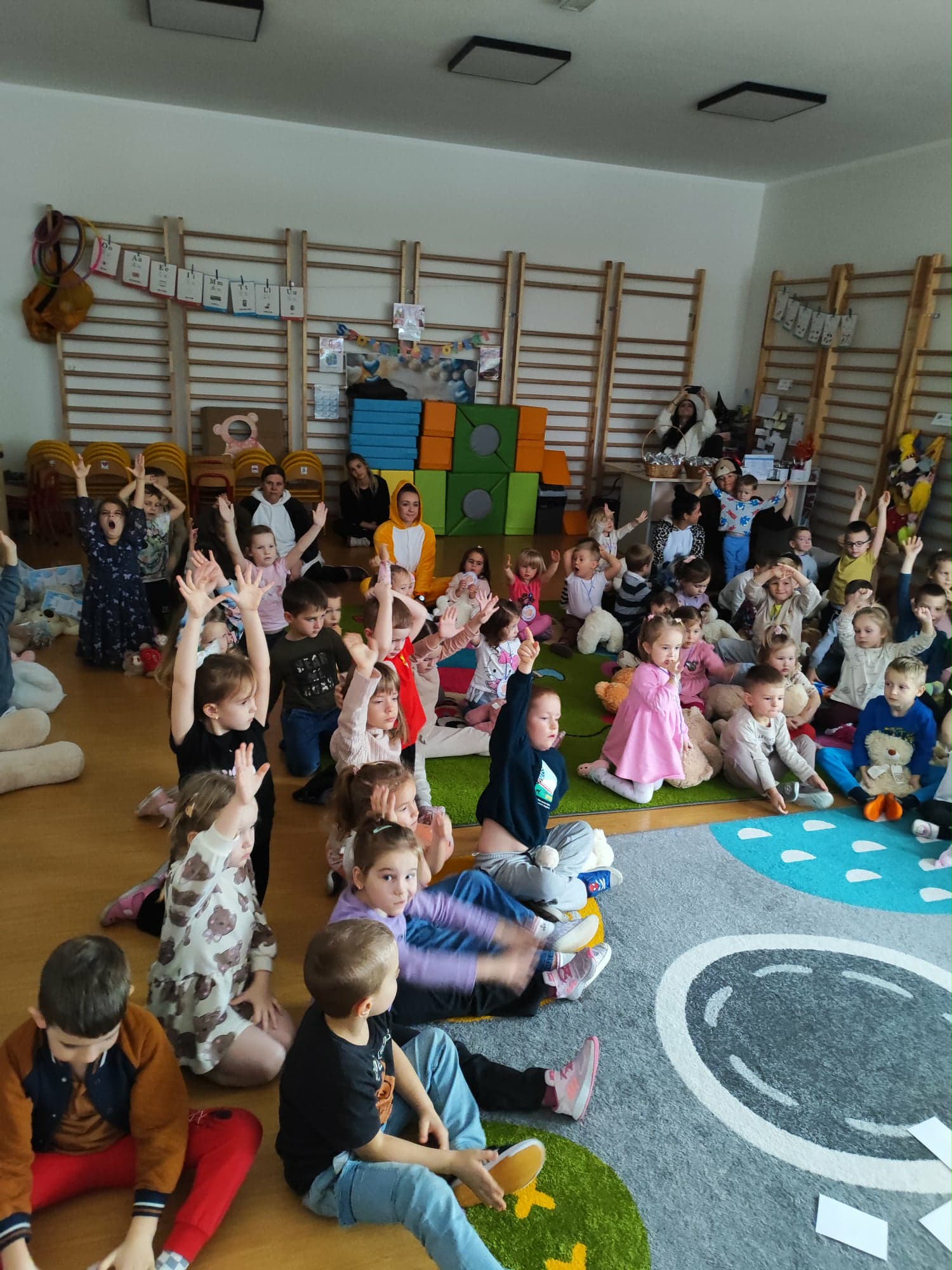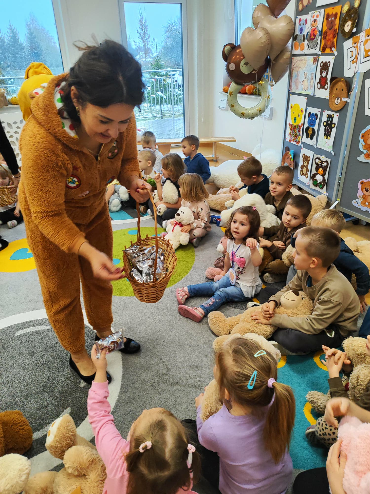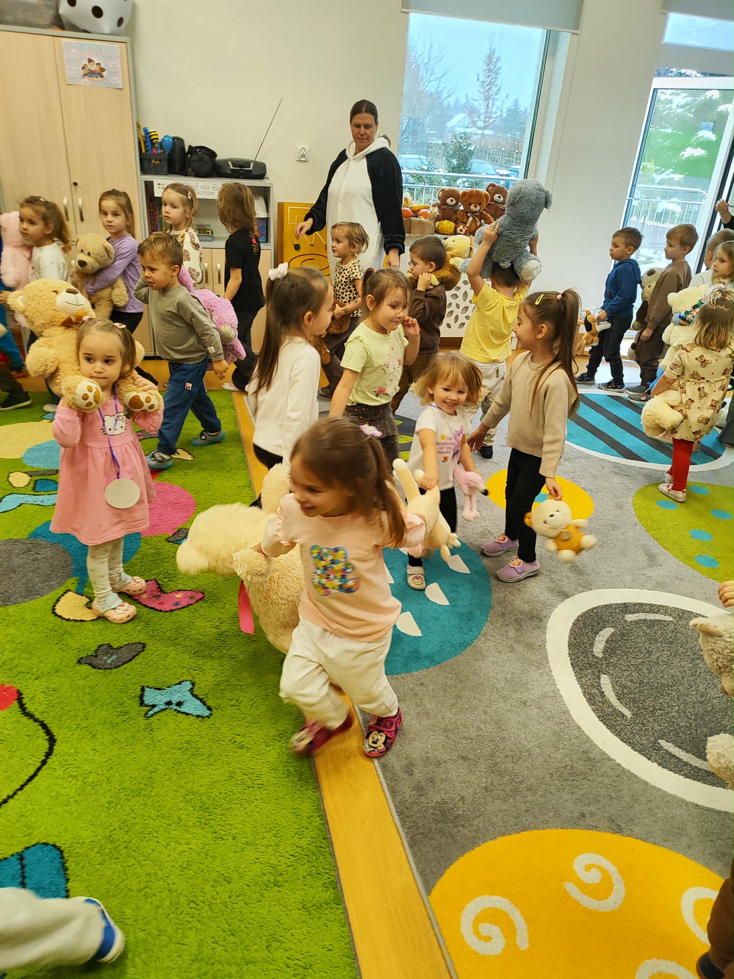 W tym samym dniu w przedszkolu świętowaliśmy Światowy Dzień Pluszowego Misia, podczas którego na dzieci czekało wiele atrakcji. Przedszkolaki przyniosły do placówki swoje ulubione pluszowe misie, które towarzyszyły im przez cały dzień. W sali odbyły się: