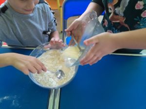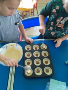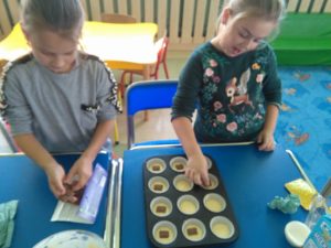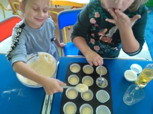 Wśród wielu zajęć prowadzonych w świetlicy szkolnej znalazły się również zajęcia kulinarne. Podczas nich wychowankowie świetlicy uczniowie przygotowali przepyszne muffinki z nadzieniem czekoladowym. Mali kucharze dzielnie pracowali, a po skonsumowaniu swoich wypieków zachwytom nie było końca. Po zajęciach wszystkie dzieci miały uśmiech na twarzy i pytały, kiedy znowu coś pysznego przygotujemy.