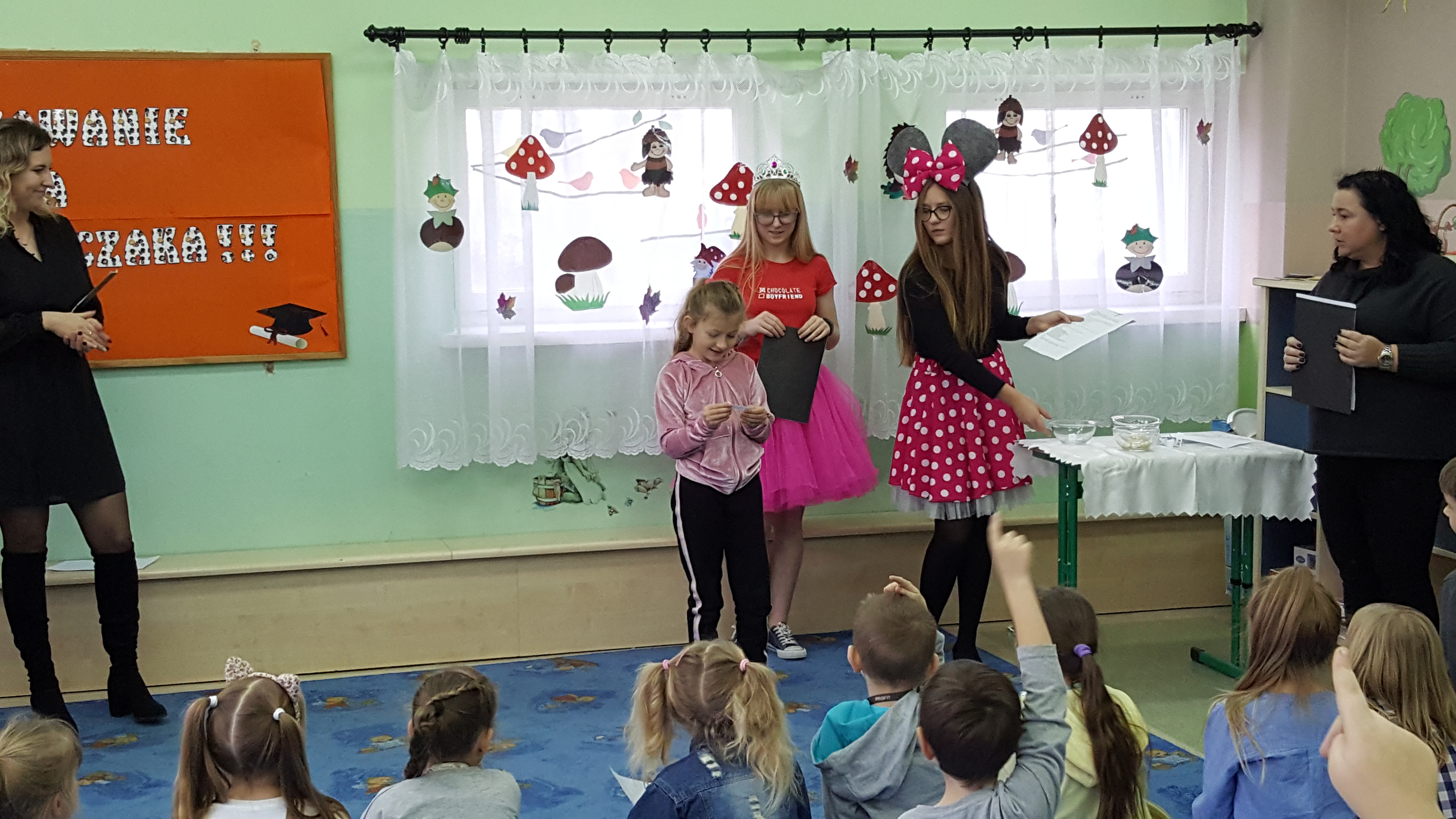 W naszej świetlicy odbyło się pasowanie na Świetliczaka dla wychowanków klas 1. Na uroczystość zaprosiliśmy Panią Dyrektor Małgorzatę Trelkę oraz wychowawcę klasy pierwszej – Panią Elżbietę Wójcicką. Nasze Świetliczaki musiały zaliczyć próby wiedzy, znajomości regulaminu, sprawności i wspólnej zabawy. Po zaliczeniu prób Świetliczaki przystąpiły do Ślubowania, a nasza królewna wraz z Myszką Miki dokonała aktu Pasowania na Świetliczaka. Na zakończenie, uczniowie otrzymali medal ,,Super Świetliczaka”. Uroczystość przebiegła w miłej atmosferze, pełnej śmiechu.