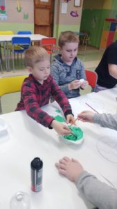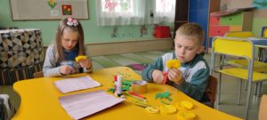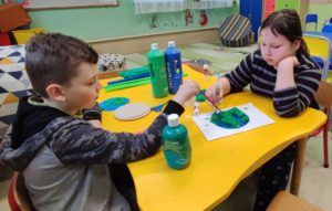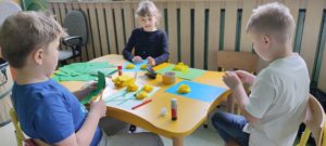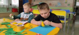 - Różnego rodzaju zajęcia plastyczne i techniczne wykorzystujące różnorodne środki plastyczne, takie jak: kredki, pastele, farby, plastelinę, papier kolorowy, tekturę, włóczkę, suszone rośliny, liście, masę solną czy bibułę.