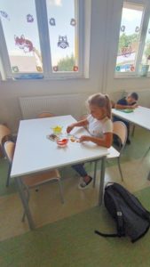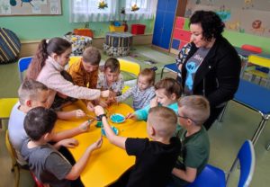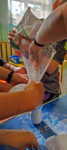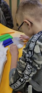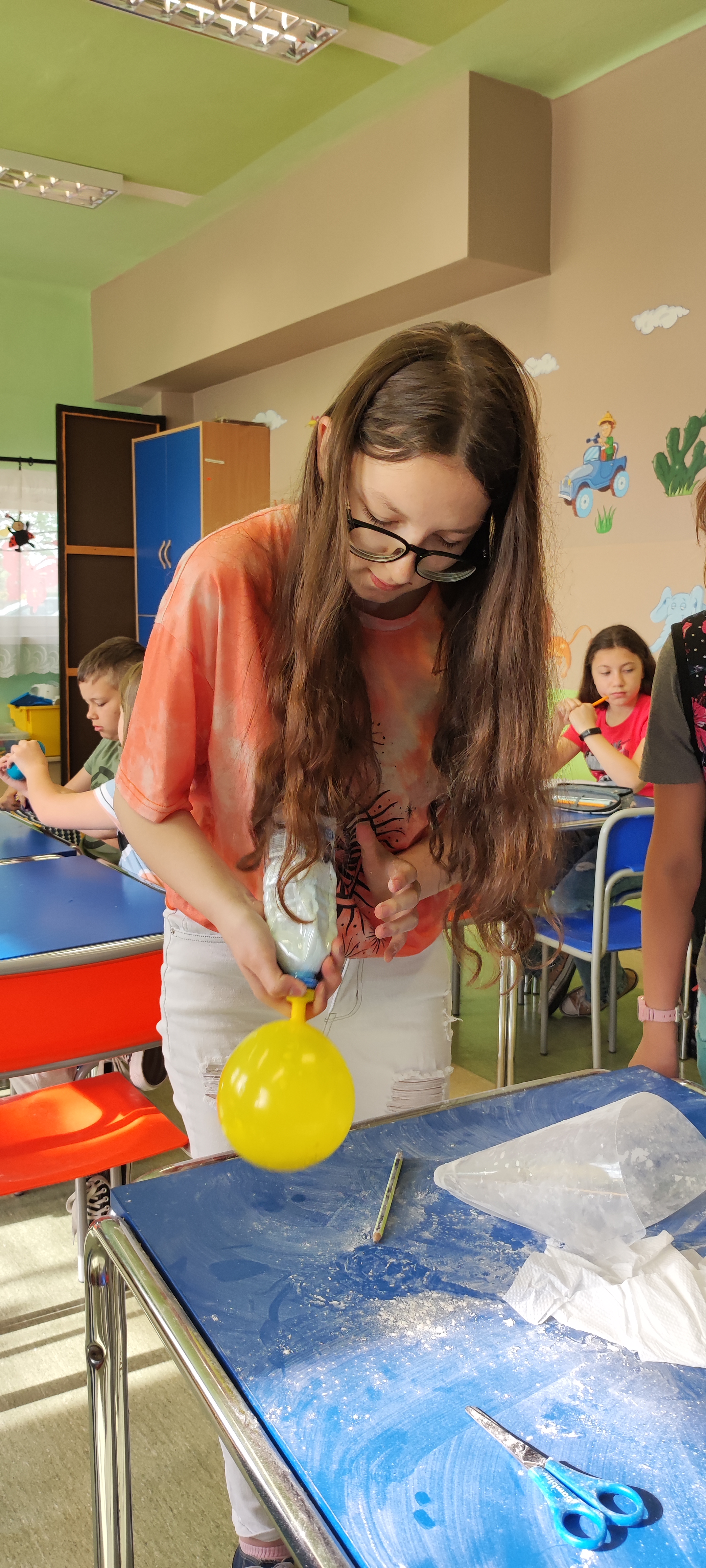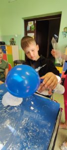 W tym tygodniu dzieci w świetlicy wykonywały antystresowe gniotki. Zgniatanie balona wypełnionego mąką świetnie odstresowuje i pozwala wyrzucić z siebie negatywne emocje, relaksując i wprowadzając w dobry nastrój.