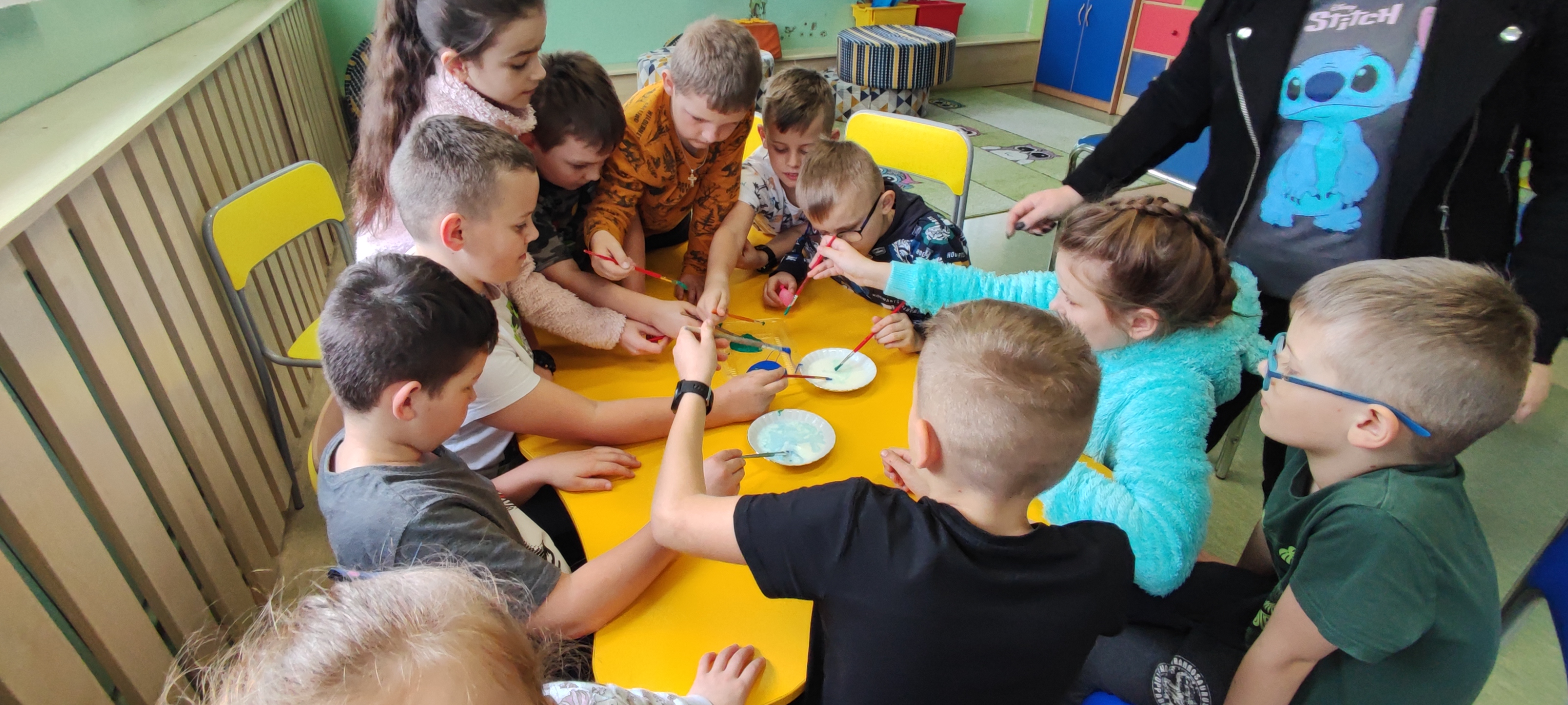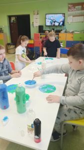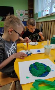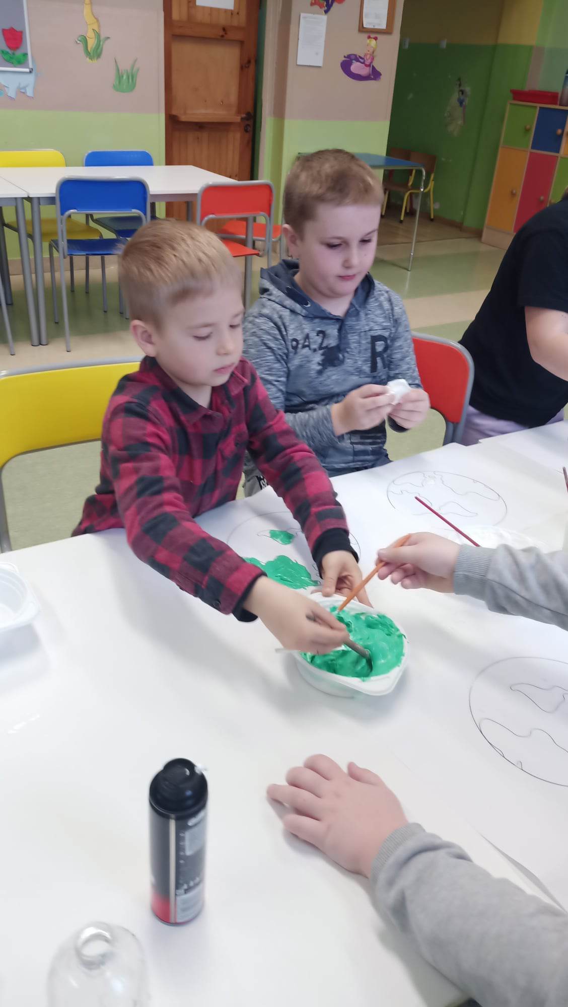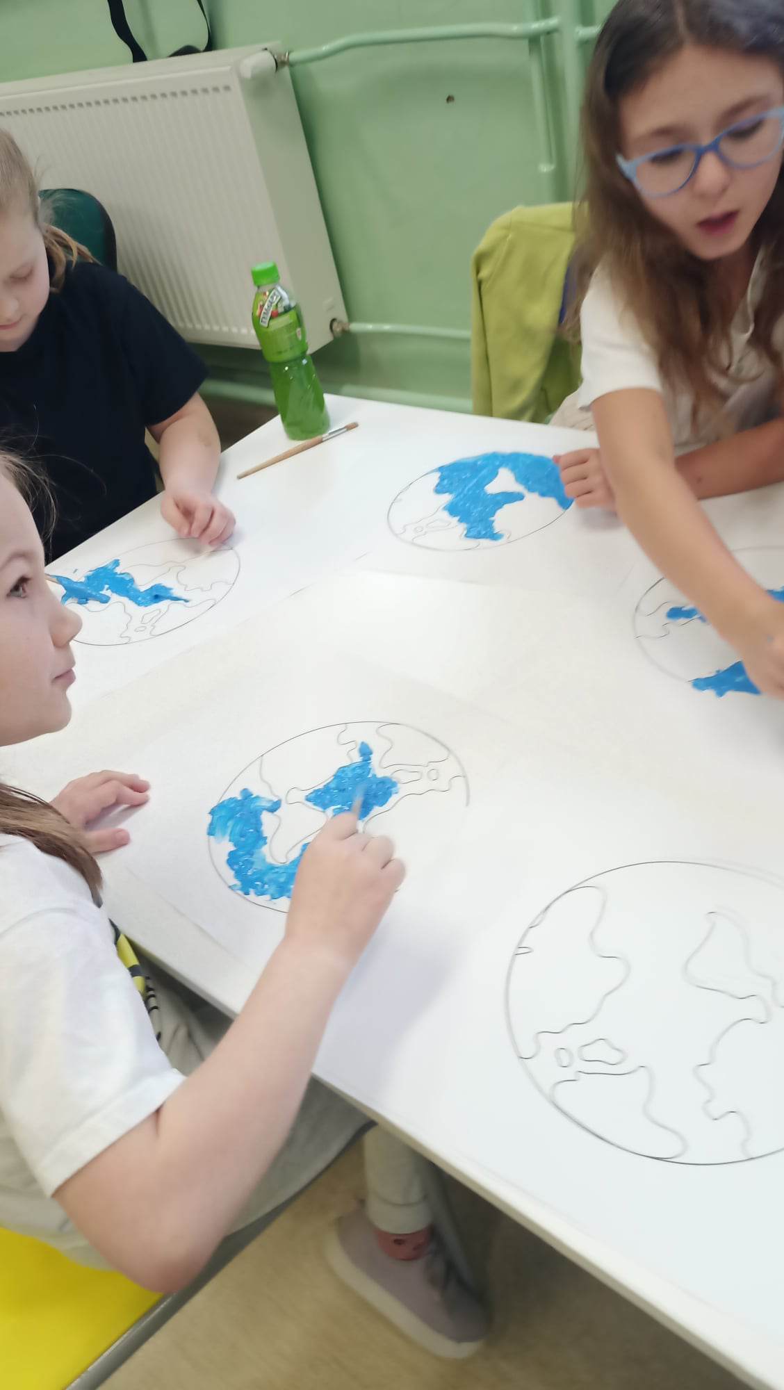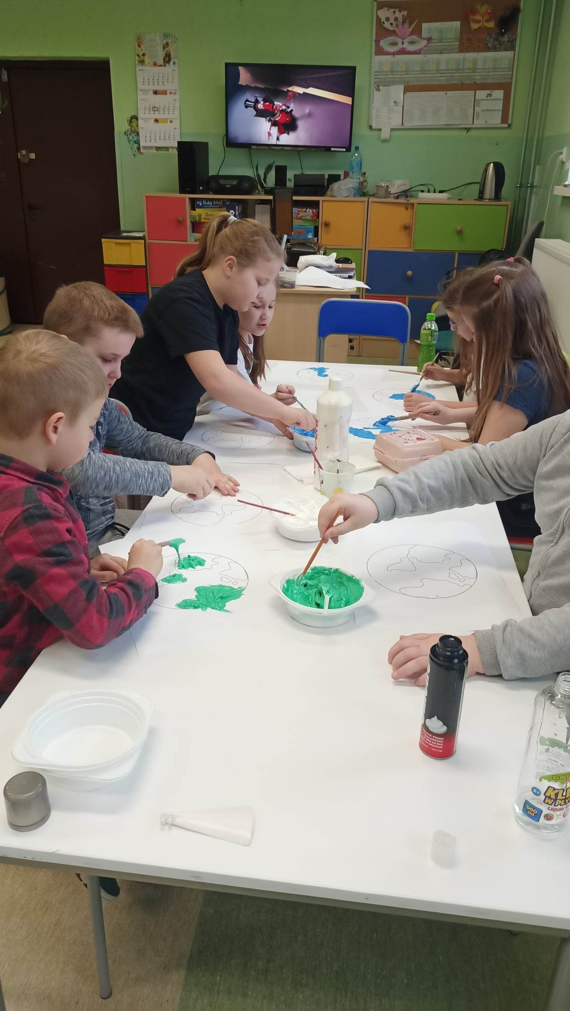 Wychowankowie świetlicy włączyli się w obchody tego święta i przez trzy dni realizowali zajęcia o charakterze edukacyjno- ekologicznym, w trakcie których uczniowie poznawali zasady zachowań proekologicznych, malowali prace plastyczne pt. „Moja Ziemia” oraz wykonali doświadczenie – malowanie naszej planety na mleku.