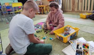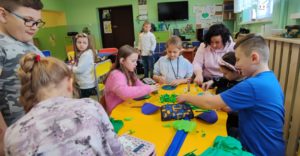 Kolejną atrakcją urozmaicającą zajęcia świetlicowe są Klocki Lego Education, które stymulują naturalną ciekawość świata dzieci, chęć odkrywania nowych zjawisk, a także rozwijają ich umiejętności emocjonalne, społeczne i językowe.
