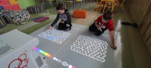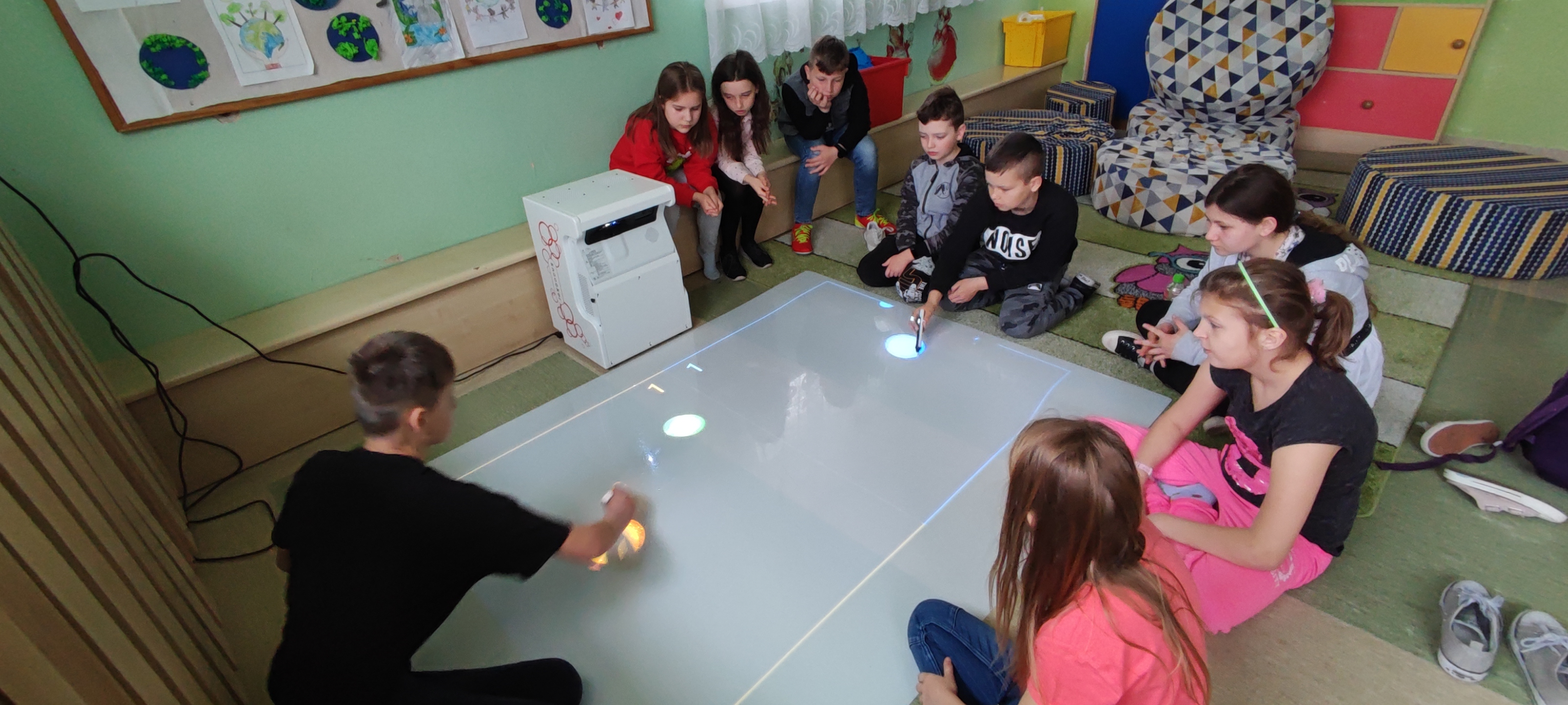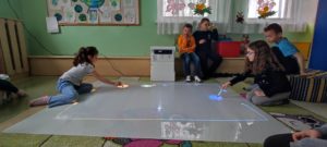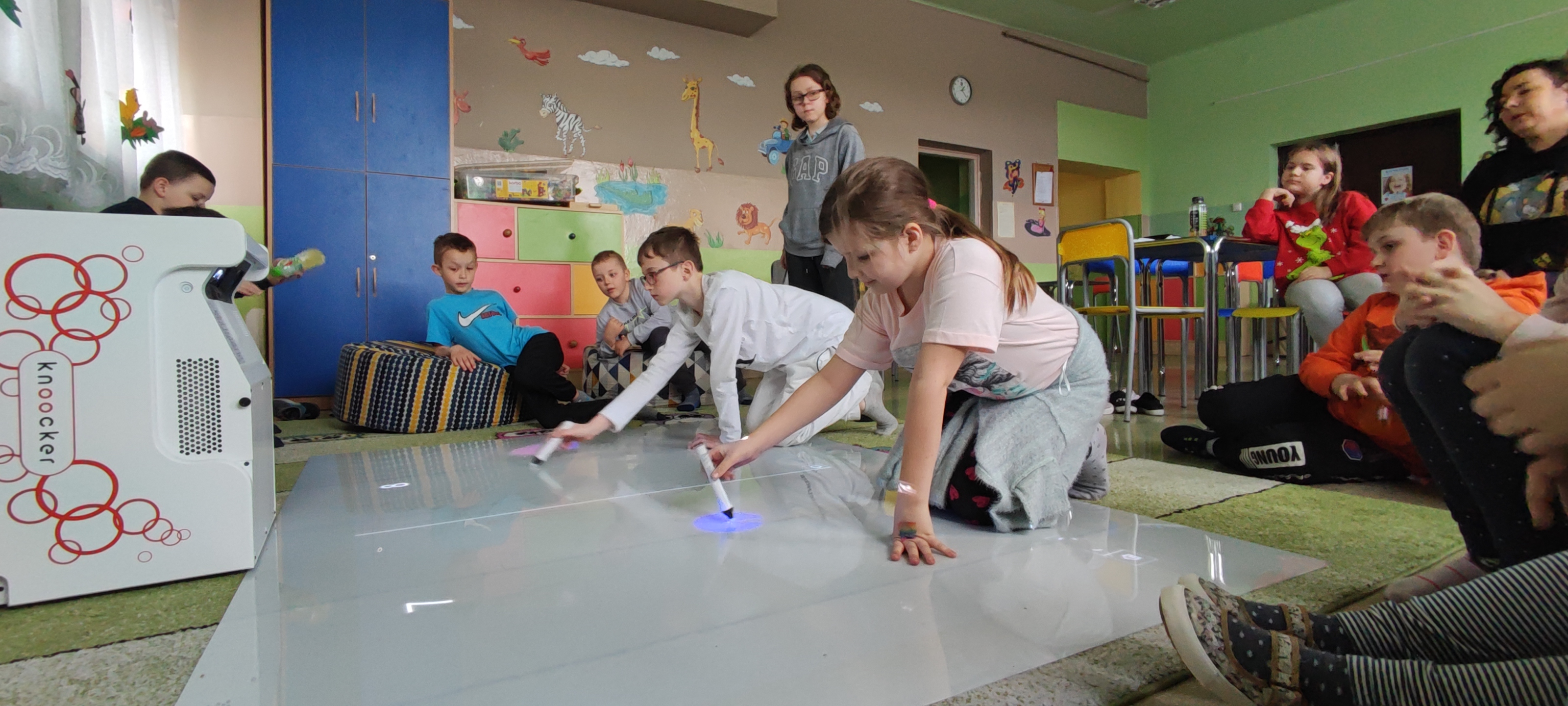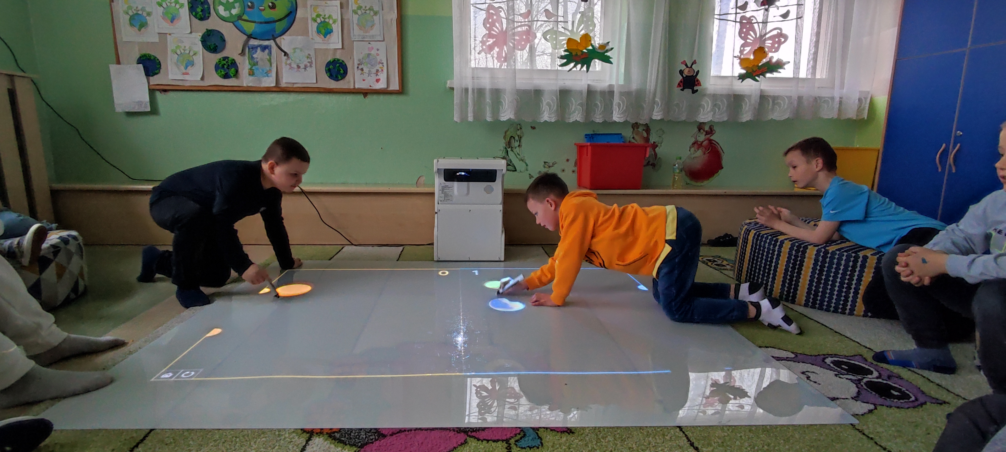 W ramach zajęć świetlicowych dzieci mają okazję korzystać z różnych form zabawy i nauki. Jedną z nich jest specjalnie zaprojektowany rzutnik, który tworzy „wirtualny, magiczny dywan”, na którym dzieci przeżywają wspaniałe przygody, począwszy od gier i zabaw ruchowych po edukację poznawczą z wielu obszarów wiedzy. Podczas zabawy uczestnicy ingerują w jej tok za pomocą ruchów rąk. Zajęcia te rozwijają uczniów na wielu płaszczyznach.