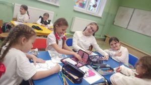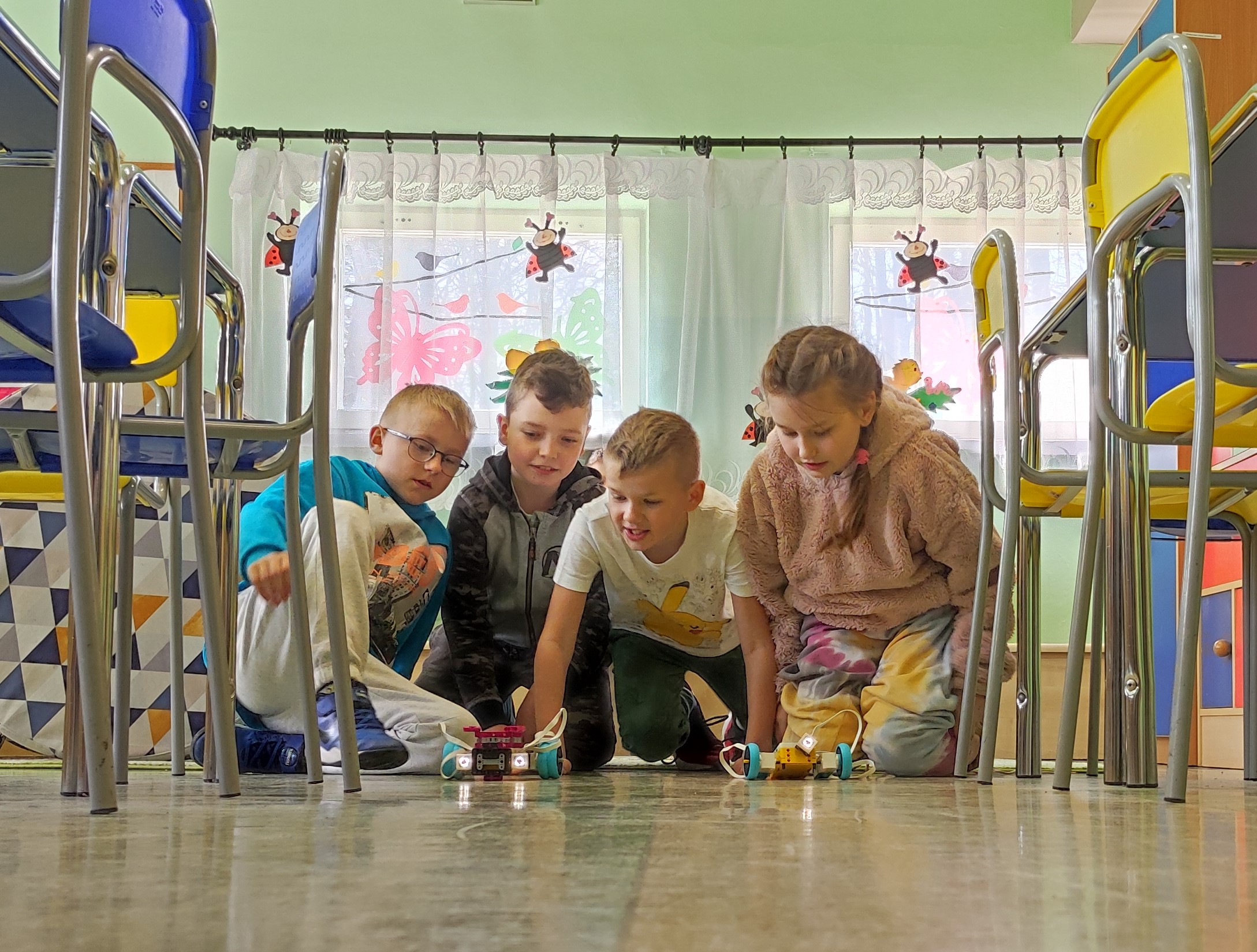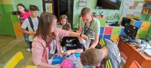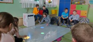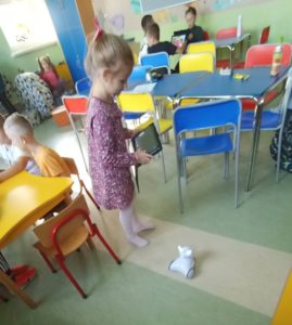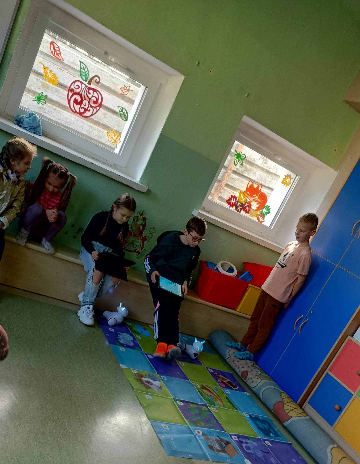 Podczas jednych z zajęć świetlicowych uczniowie poznali Photona i jego możliwości. Photon to interaktywny robot edukacyjny, który dzięki aplikacji mobilnej oraz powiązanymi z nią doświadczeniami i eksperymentami wprowadza dzieci w świat nowych technologii. W ten sposób rozwija kreatywność, zdolność logicznego myślenia oraz ułatwia poznawanie podstaw programowania. Dzieci dowiedziały się w jaki sposób porusza się robot, jak zmienia kolory i jakie może wydawać dźwięki. Uczniowie, jako wstęp do programowania, uczyli się poruszać Photonem. Wszyscy świetnie się bawili ucząc się nowych rzeczy.