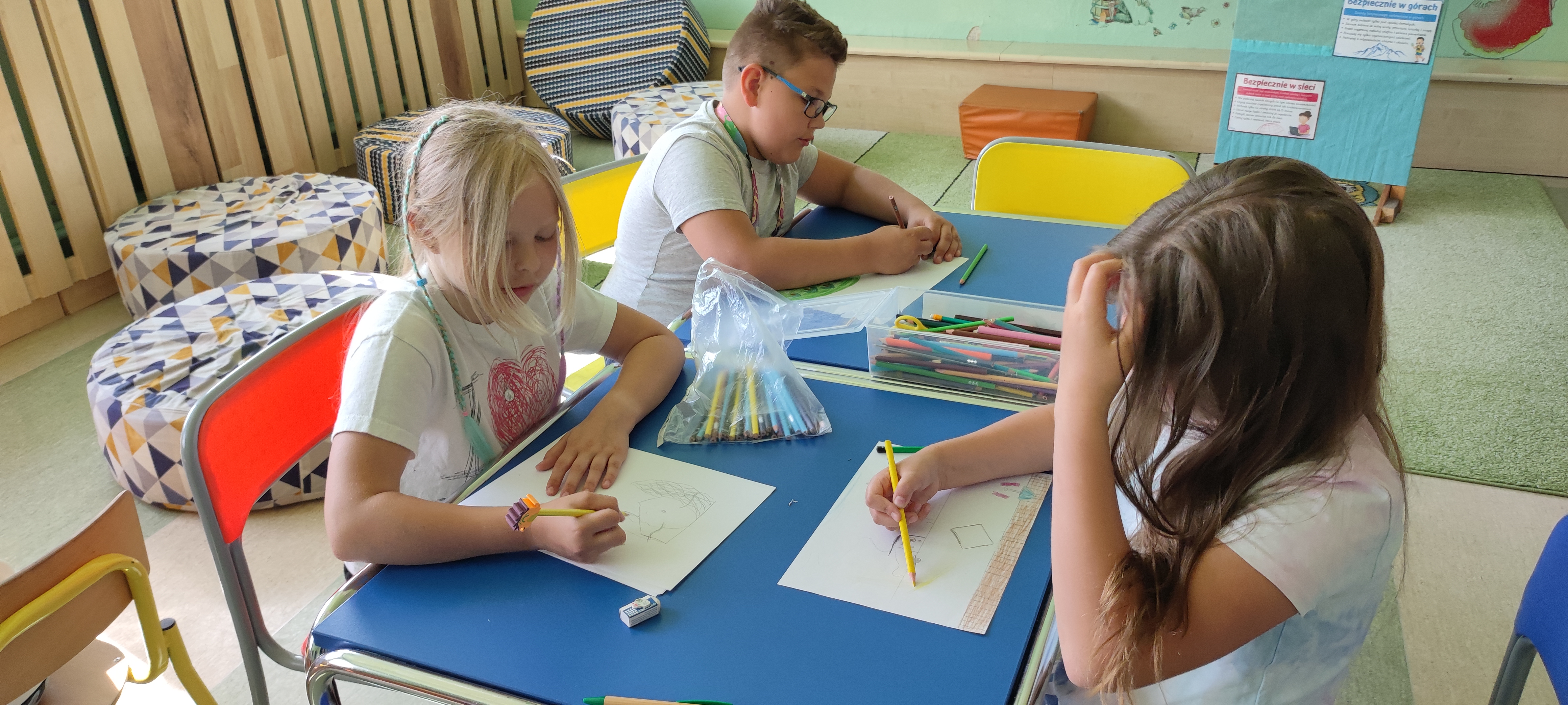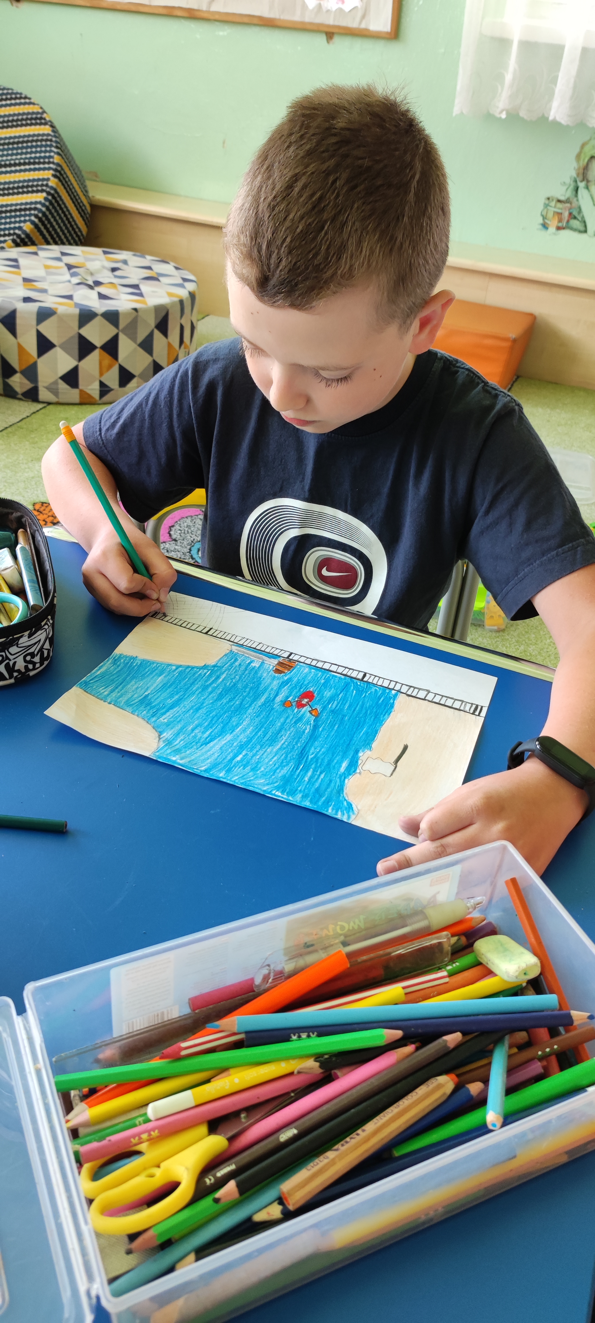 Pod koniec czerwca rozpoczynamy wakacje. Jest to czas wolny od szkoły. W tym okresie ludzie częściej podróżują, spotykają się z rodziną i znajomymi. Podczas wakacji musimy pamiętać o bezpieczeństwie w każdym miejscu. W ramach zajęć świetlicowych dzieci poznały zasady bezpiecznego zachowania nad jeziorem i morzem, w górach, w lesie oraz w sieci. Podsumowaniem zajęć było wykonanie ilustracji oraz gazetki świetlicowej o tematyce bezpieczeństwa podczas wakacji.