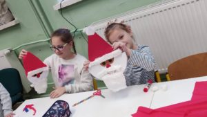 6 grudnia, to szczególny dzień wyczekiwany przez wszystkie dzieci, bo właśnie wtedy przez świat wędruje święty Mikołaj i obdarowuje wszystkich prezentami. W tym roku podczas mikołajek w świetlicy szkolnej dzieci obejrzały filmik edukacyjny „Legenda o Św. Mikołaju”. Śpiewały pięknie piosenki związane z tematem dnia: „Kochany Panie Mikołaju”, „O Dobrym Świętym Mikołaju” oraz bardzo aktywnie odgadywały mikołajkowe zagadki. Kolejną propozycją dla naszych podopiecznych była mikołajkowa praca plastyczno – techniczna: „Św. Mikołaj”. Chcąc upamiętnić ten radosny dzień świetliczaki wspólnie z wychowawcą wykonały, piękne prace plastyczne. Wszyscy wspaniale się bawili.