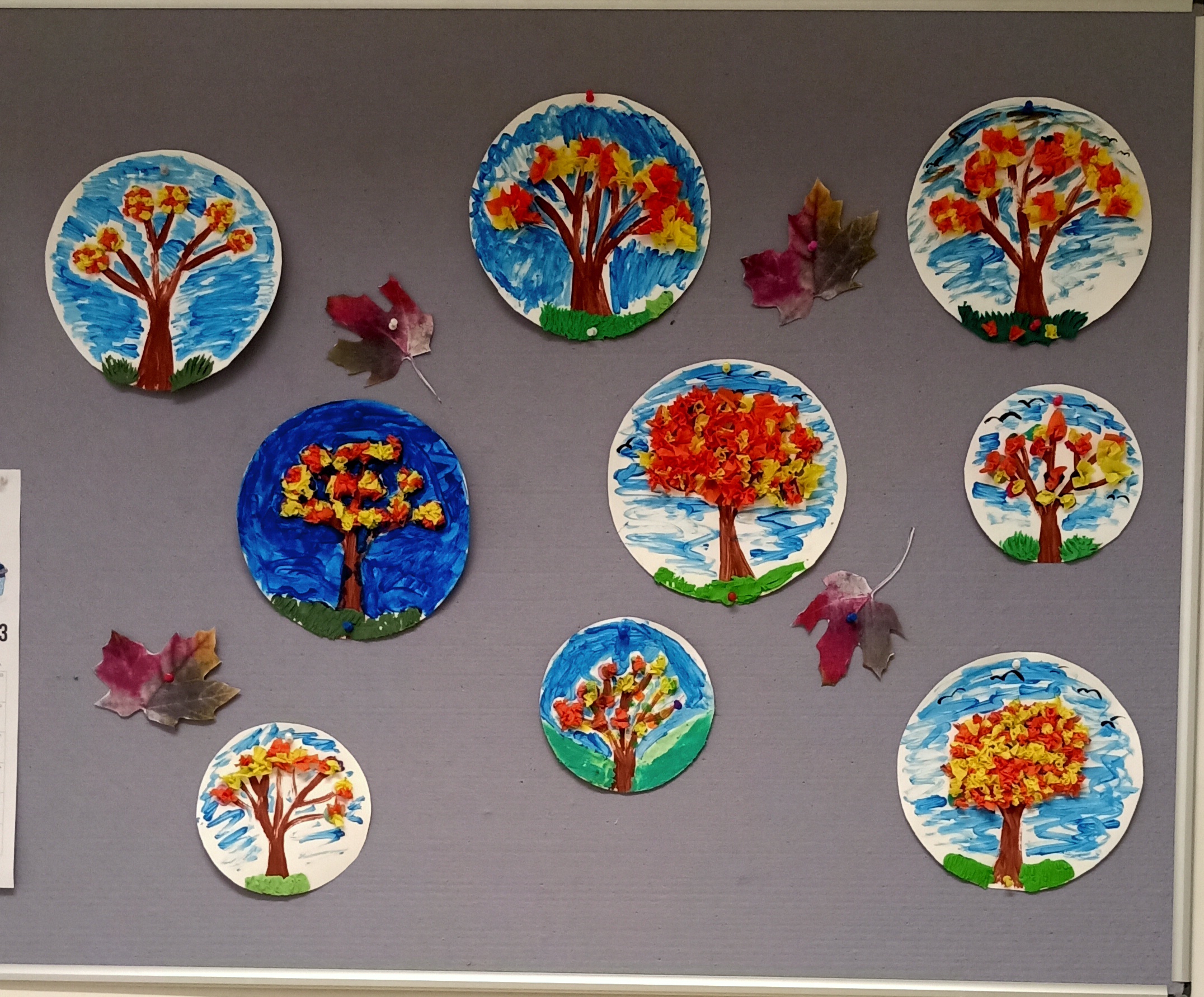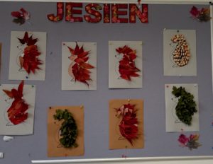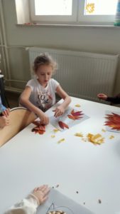 Jesień to bardzo bogata pora roku. Przynosi nam obfite dary: owoce, warzywa, dary lasu. W miesiącu październiku jesień zagościła na dobre, nie tylko w otoczeniu ale również w naszej świetlicy! Początkowo sale rozweselały kolorowe liście i widok jesiennych drzew, a stopniowo dołączały do nich inne prace. Dzieci wykonywały bardzo chętnie piękne prace plastyczne, wykorzystując barwy i skarby jesieni, tworząc tym samym cykl zajęć poświęconych tematyce jesiennej. Jedną z takich prac było stworzenie kolorowych liści z masy solnej.
