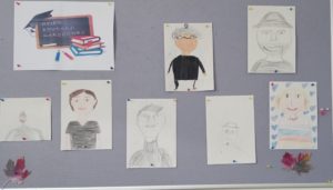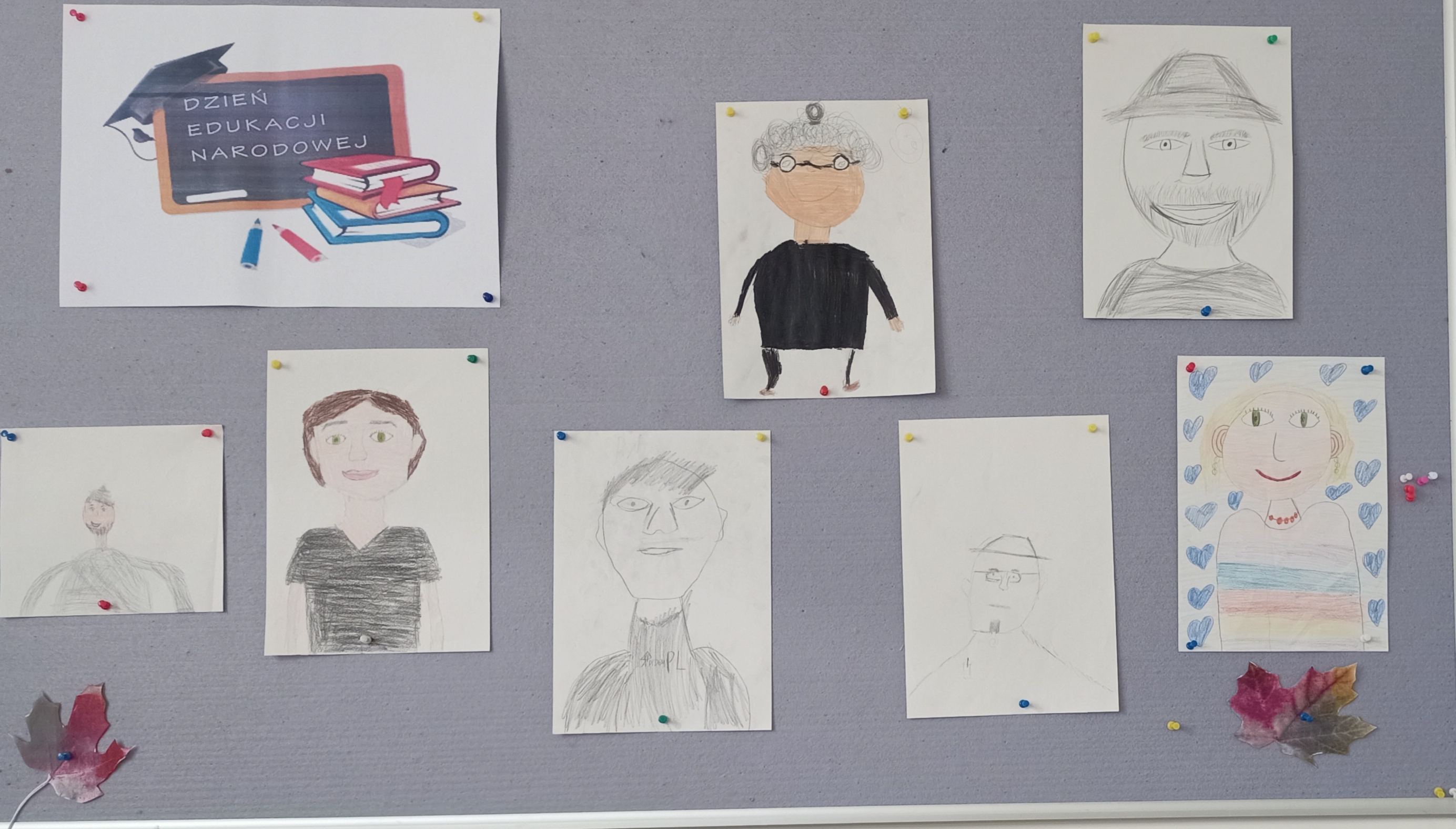 12 października 2023 roku obchodziliśmy 250 rocznicę powstania Komisji Edukacji Narodowej czyli popularne święto Belferskiej Braci. Dzieci uczestniczące w zajęciach w świetlicy szkolnej przyłączając się do życzeń przygotowały niespodziankę. Własnoręcznie wykonały portrety nauczycieli, które zostały wyeksponowane na naszej tablicy. Wystawa nosiła znamienny tytuł – „Zgadnij kto to”. Trudność polegała na tym, że portrety nie zostały podpisane i każdy musiał rozpoznać kogo przedstawia dana praca. Było dużo zabawy i śmiechu. Dziękujemy małym artystom za wkład pracy i uświetnienie naszego święta.
