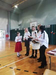 Po krótkim wstępie odbył się przegląd pieśni patriotycznych pod okiem wychowawców klas i pani muzyk Izabeli Tracz. Uroczystość podsumowała wicedyrektor szkoły pani Agnieszka Czerwińska.