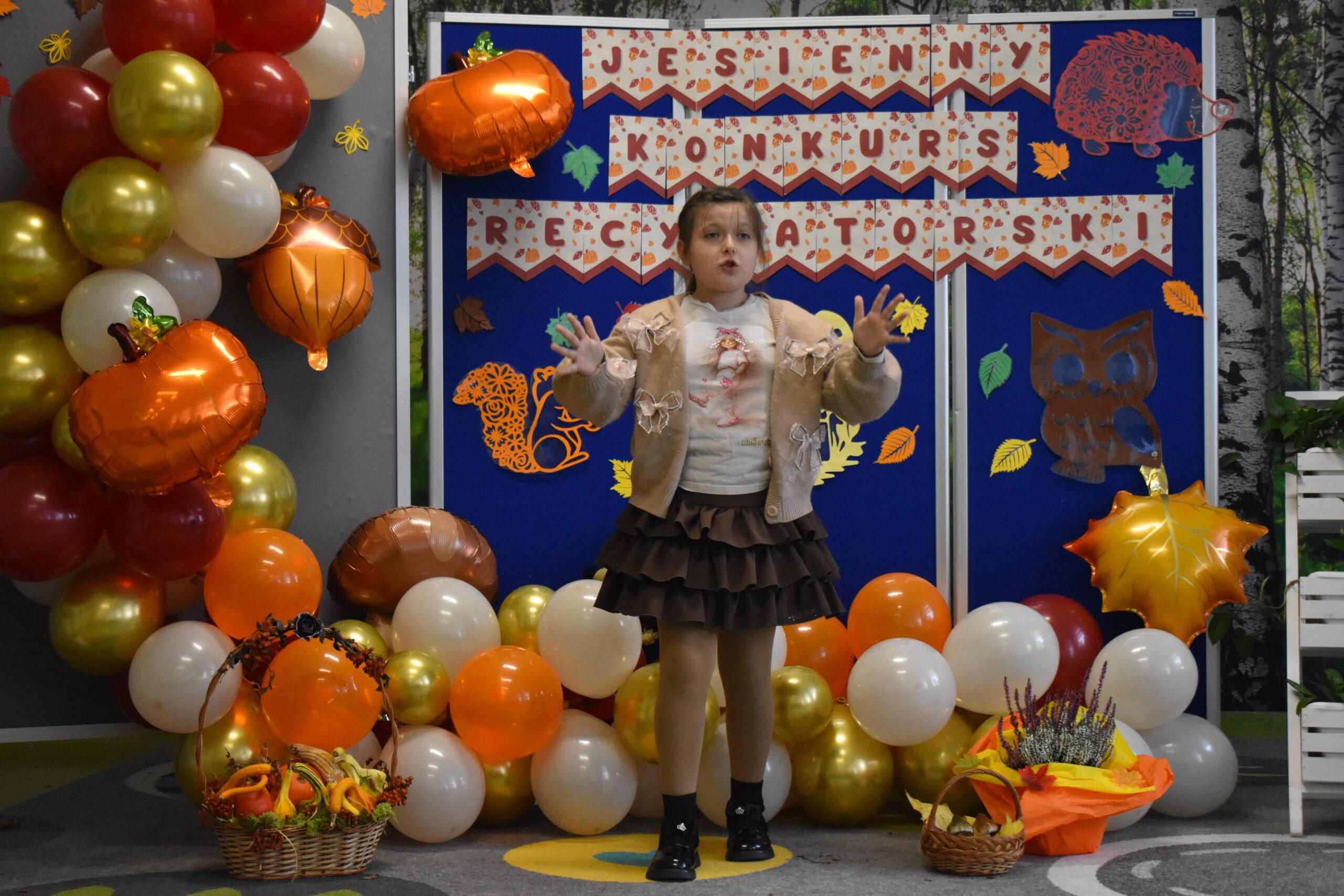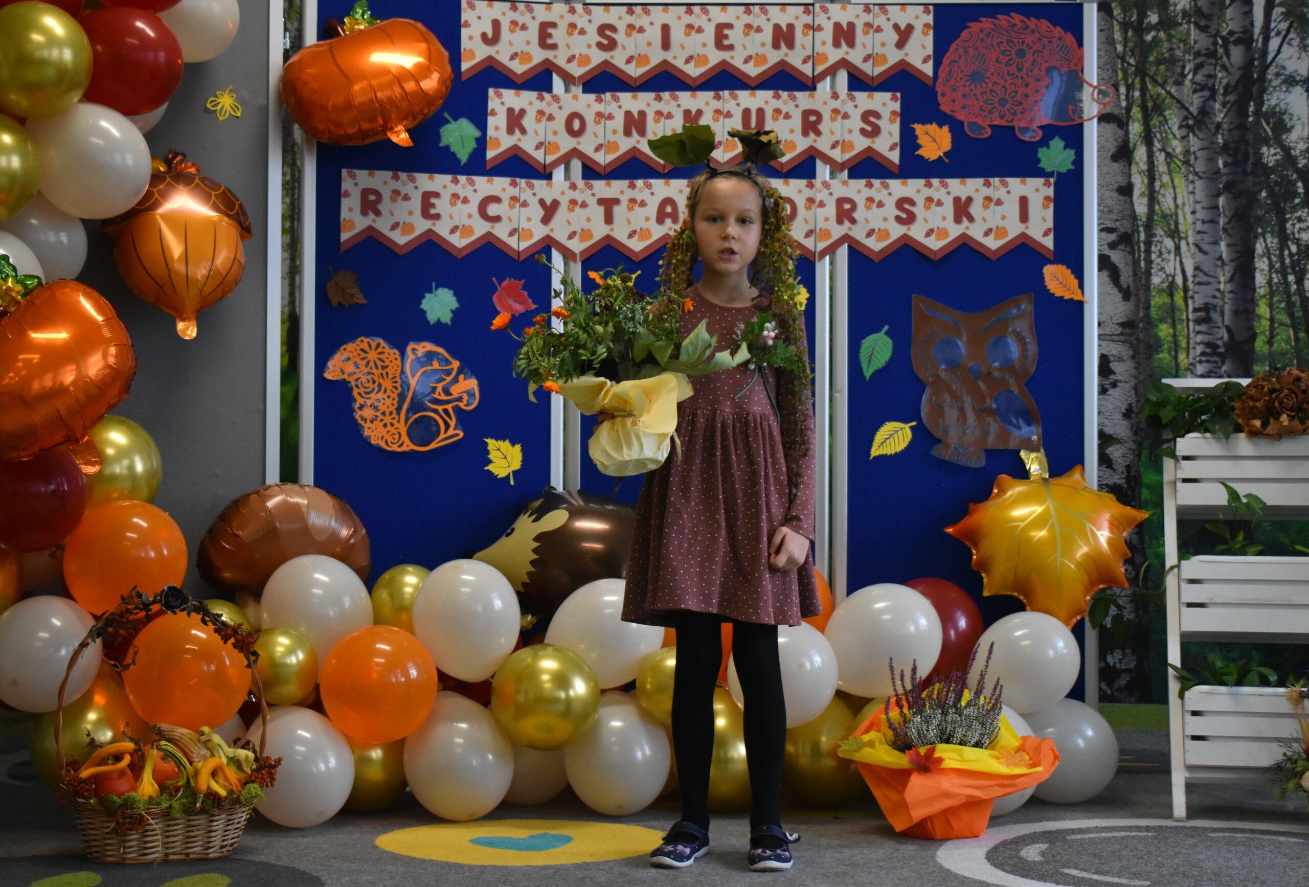 Młodzi recytatorzy zaprezentowali piękne interpretacje wierszy o tematyce jesiennej. Nie zabrakło kolorowych liści, parasoli, kasztanów i wielu innych jesiennych akcentów. Uczestnicy zachwycili nie tylko interpretacją utworów, ale także własnoręcznie przygotowanymi strojami i pomysłowymi rekwizytami, które doskonale oddawały klimat prezentowanych wierszy.