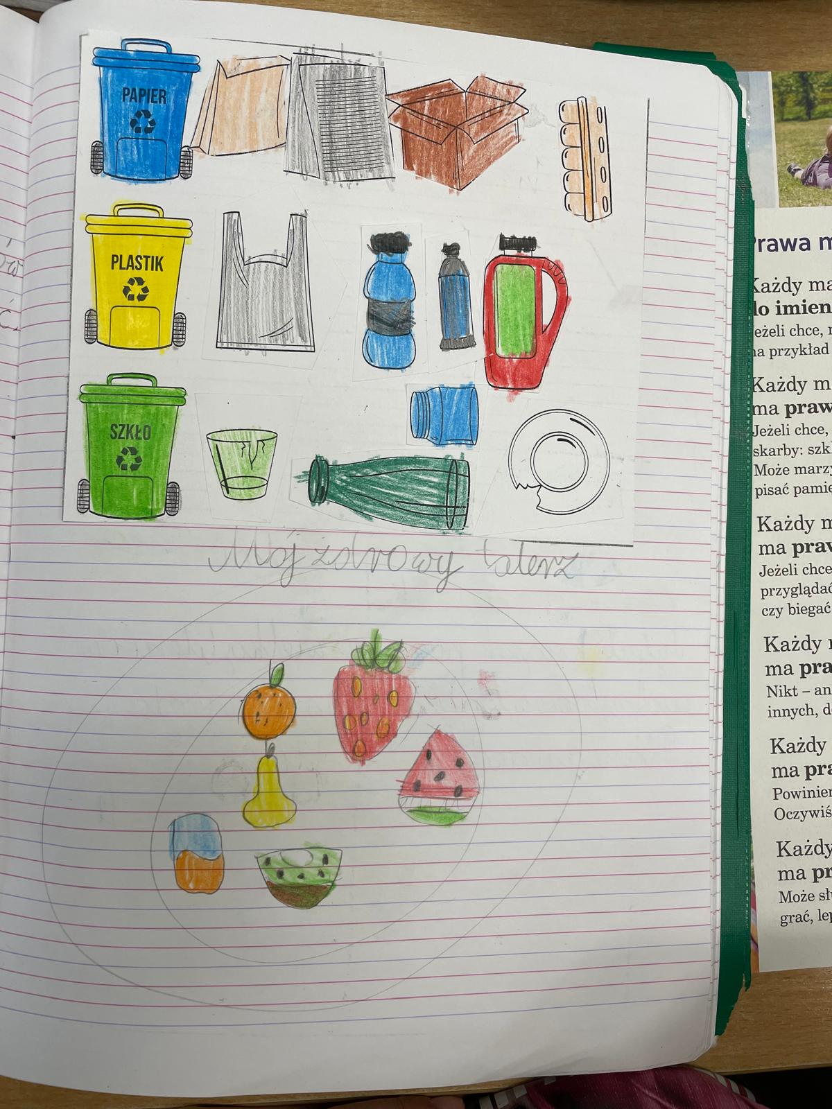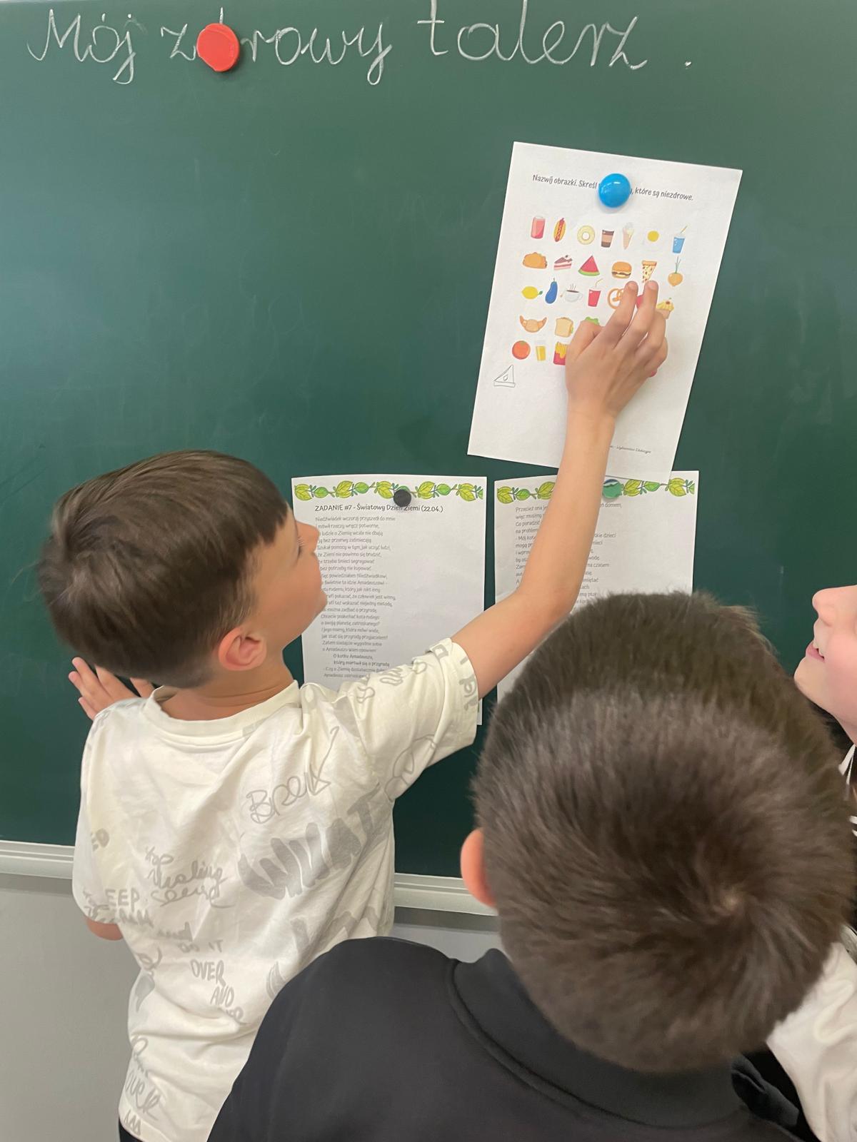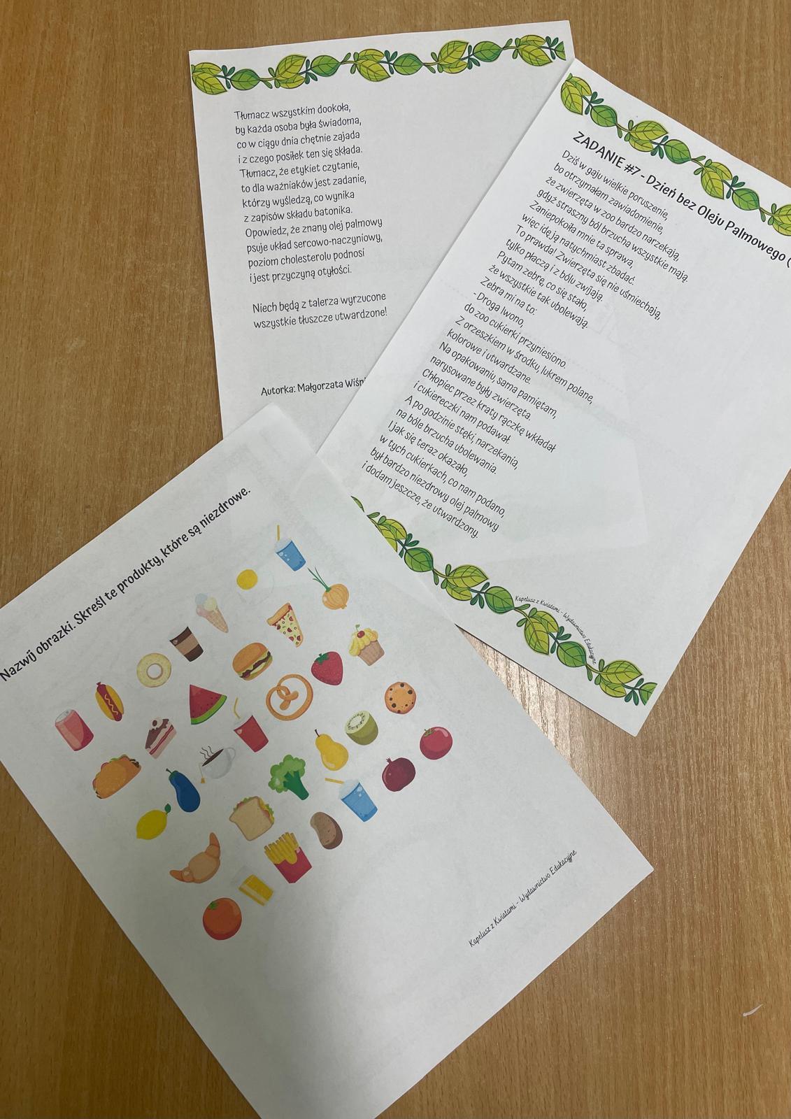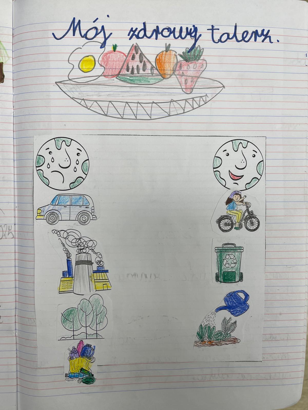 Klasa 2a aktywnie uczestniczyła w realizacji zadań w ramach ogólnopolskiego projektu edukacyjnego „Szlachetnie i zdrowo z małpką Iwonką”. Uczniowie wzięli udział w zajęciach pt. „Dzień bez oleju palmowego”, podczas których poznali szkodliwy wpływ oleju palmowego i tłuszczów utwardzonych na zdrowie. Przyniesione przez dzieci opakowania po przekąskach posłużyły do wspólnego czytania etykiet i analizy składów. Uczniowie nauczyli się rozpoznawać niezdrowe produkty i świadomie wybierać te, które służą zdrowiu. Zajęcia zakończyły się dyskusją na temat tego, jak ważne jest czytanie składów i unikanie szkodliwych dodatków. Z kolei z okazji Światowego Dnia Ziemi uczniowie wysłuchali wiersza o kotku Amadeuszu, który troszczy się o naszą planetę. Rozmawiali o sposobach dbania o środowisko i podejmowania codziennych, proekologicznych wyborów. Wypełniali karty pracy, segregowali odpady, wskazywali działania szkodliwe i korzystne dla przyrody. Dodatkowo, chętni uczniowie przygotowali plakaty promujące ochronę środowiska, które ozdobiły klasową gazetkę. Oba działania spotkały się z dużym zaangażowaniem ze strony uczniów i były ważnym elementem kształtowania postaw prozdrowotnych i proekologicznych.