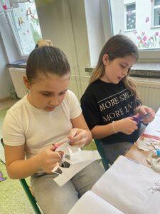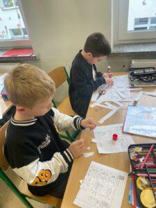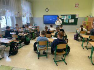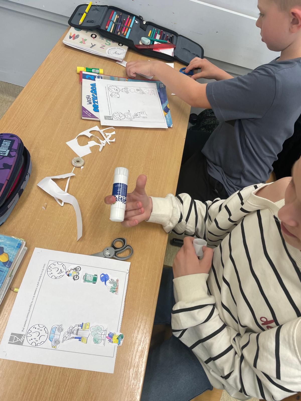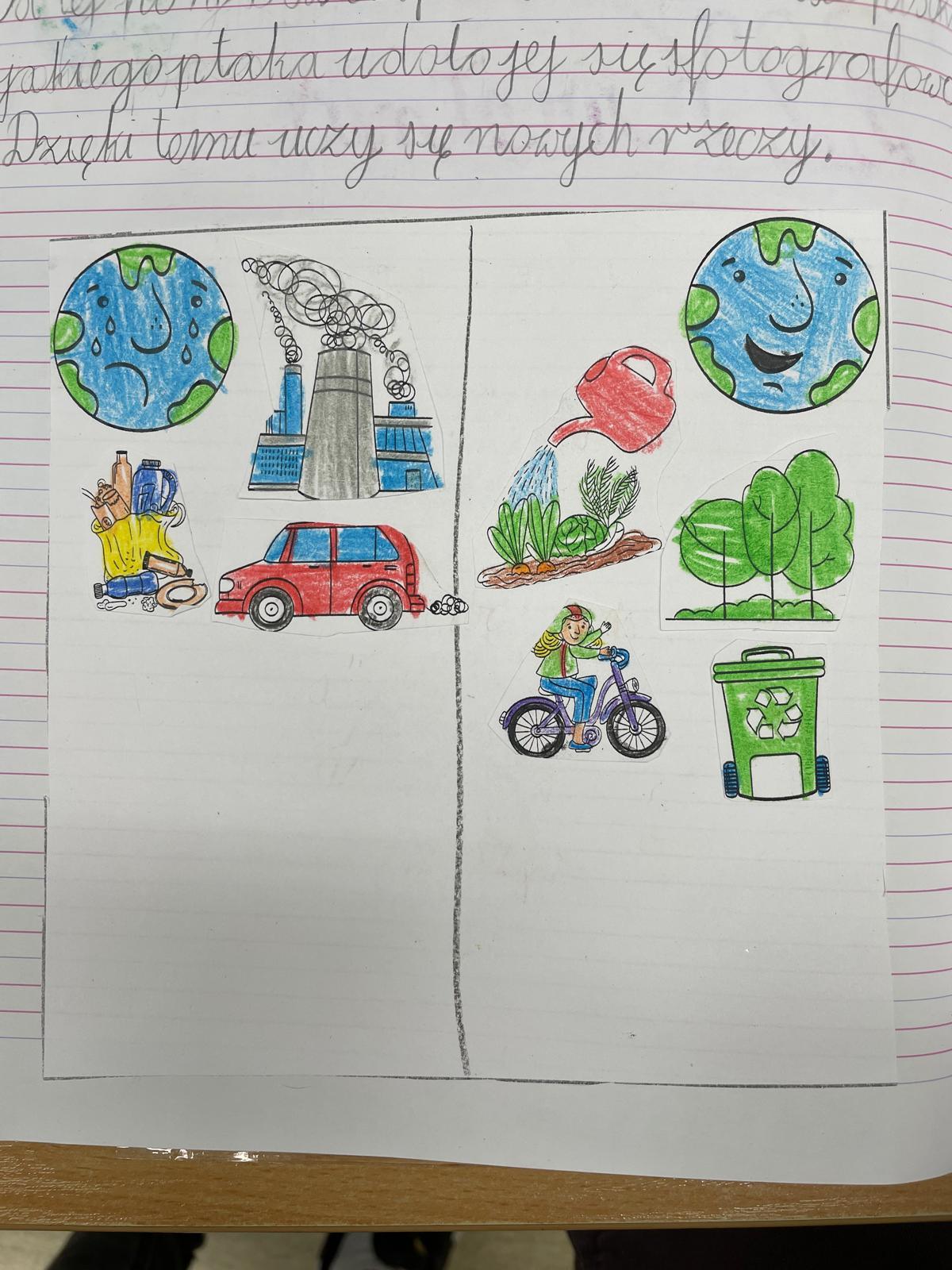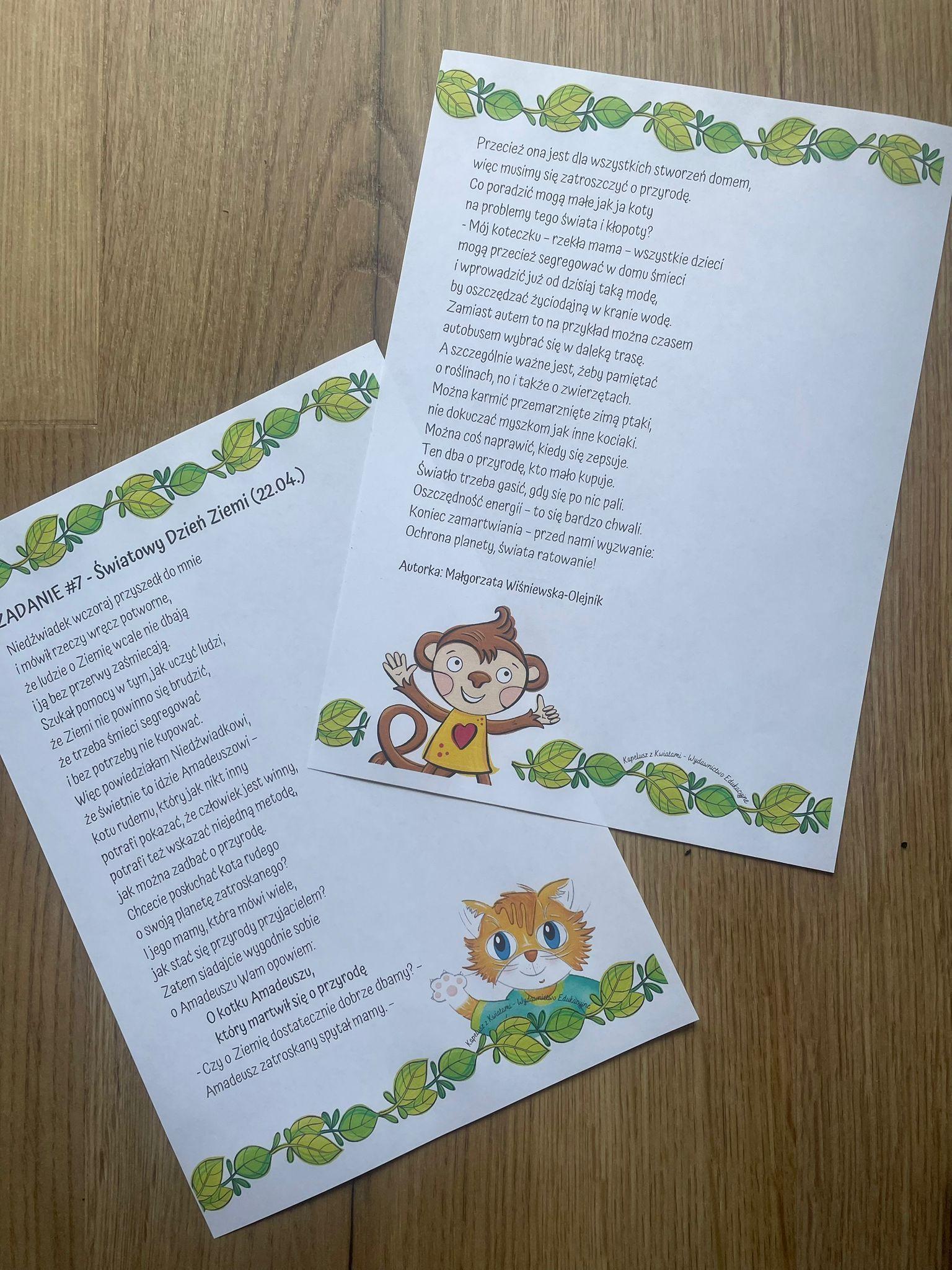Klasa 2a aktywnie uczestniczyła w realizacji zadań w ramach ogólnopolskiego projektu edukacyjnego „Szlachetnie i zdrowo z małpką Iwonką”. Uczniowie wzięli udział w zajęciach pt. „Dzień bez oleju palmowego”, podczas których poznali szkodliwy wpływ oleju palmowego i tłuszczów utwardzonych na zdrowie. Przyniesione przez dzieci opakowania po przekąskach posłużyły do wspólnego czytania etykiet i analizy składów. Uczniowie nauczyli się rozpoznawać niezdrowe produkty i świadomie wybierać te, które służą zdrowiu. Zajęcia zakończyły się dyskusją na temat tego, jak ważne jest czytanie składów i unikanie szkodliwych dodatków. Z kolei z okazji Światowego Dnia Ziemi uczniowie wysłuchali wiersza o kotku Amadeuszu, który troszczy się o naszą planetę. Rozmawiali o sposobach dbania o środowisko i podejmowania codziennych, proekologicznych wyborów. Wypełniali karty pracy, segregowali odpady, wskazywali działania szkodliwe i korzystne dla przyrody. Dodatkowo, chętni uczniowie przygotowali plakaty promujące ochronę środowiska, które ozdobiły klasową gazetkę. Oba działania spotkały się z dużym zaangażowaniem ze strony uczniów i były ważnym elementem kształtowania postaw prozdrowotnych i proekologicznych.