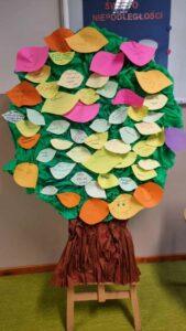 Na zakończenie całej inicjatywy społeczność szkolna wspólnie stworzyła Drzewa Życzliwości – wyjątkowe liście, na których każdy mógł umieścić swoje życzliwe słowo lub napisać, czym dla niego jest życzliwość. Powstała praca stała się pięknym symbolem tego, że „ małe radości i drobne gesty życzliwości są najpiękniejszymi iskierkami naszej codzienności”