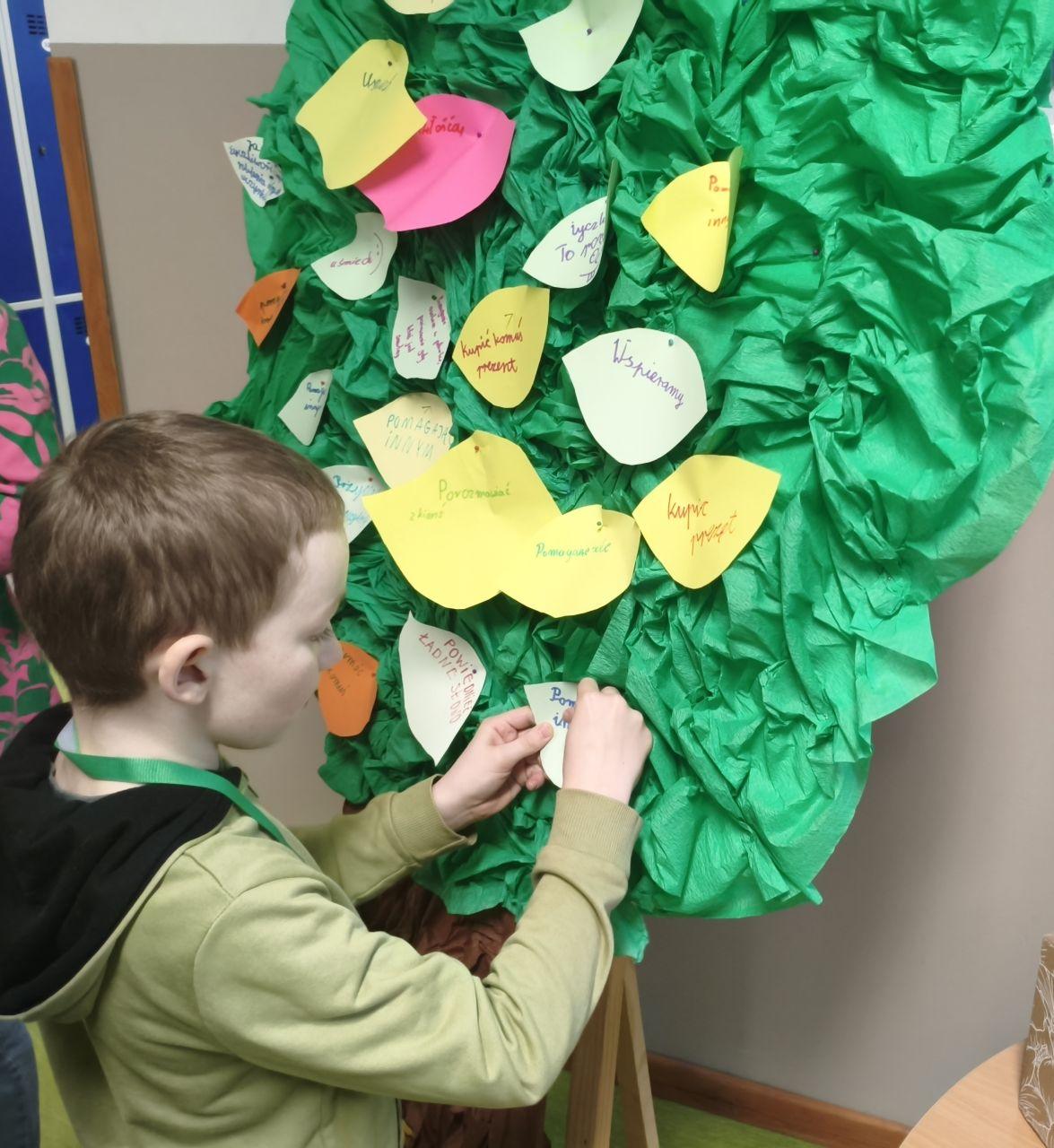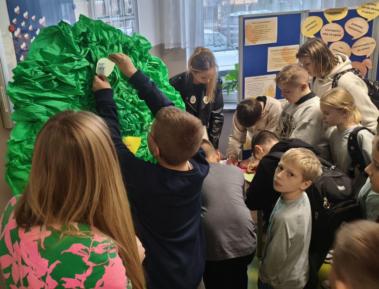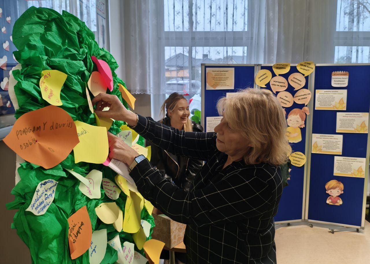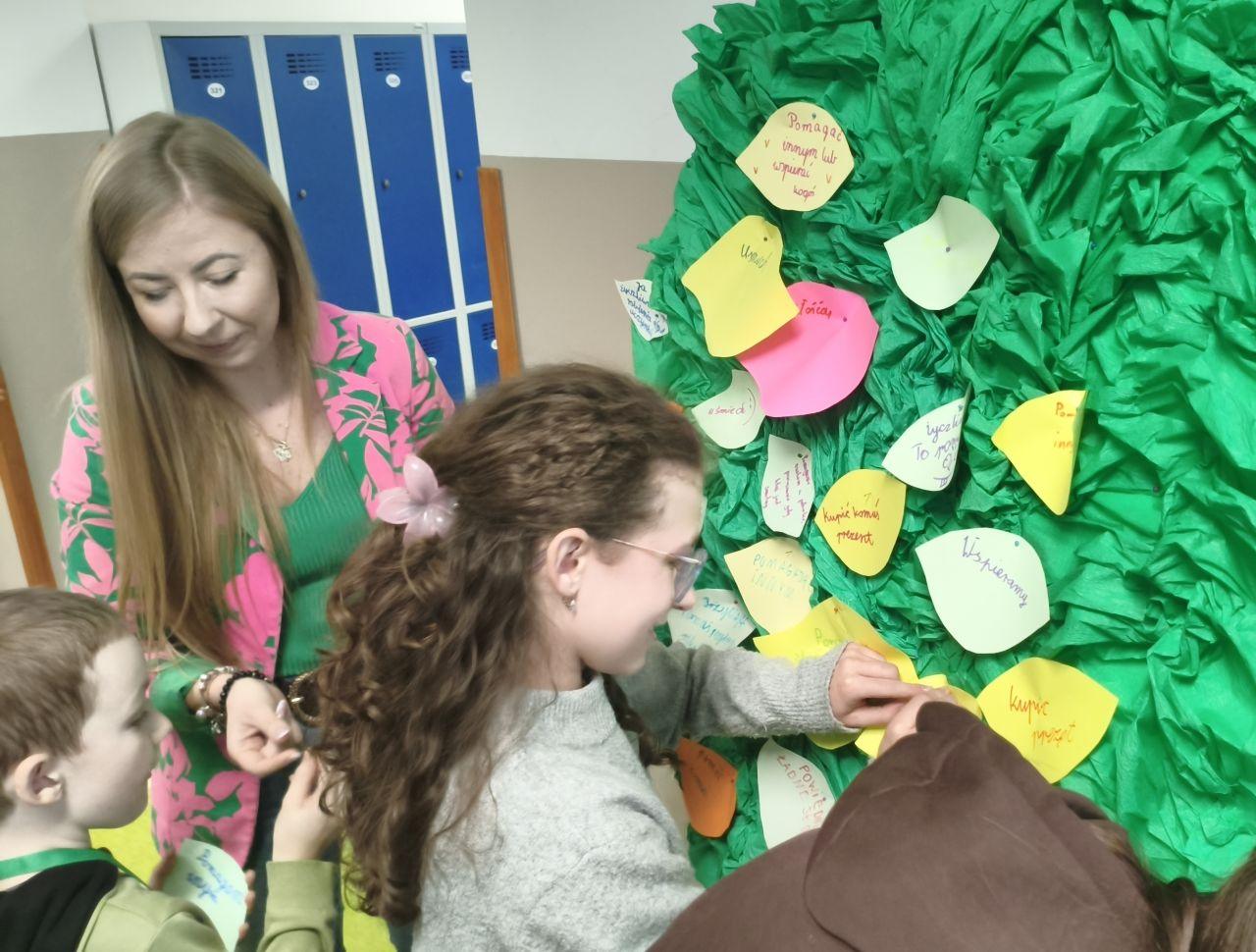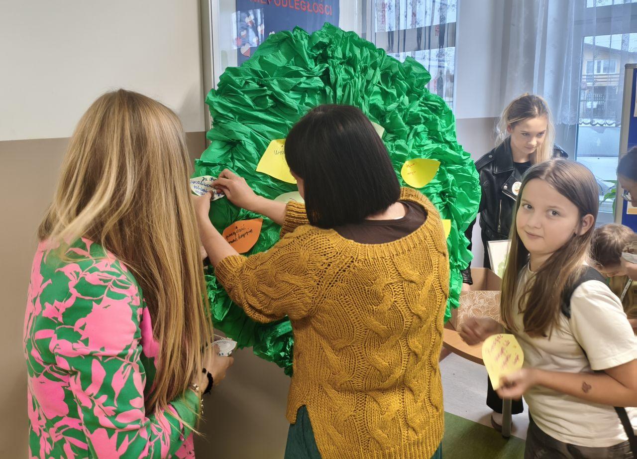 Na zakończenie całej inicjatywy społeczność szkolna wspólnie stworzyła Drzewa Życzliwości – wyjątkowe liście, na których każdy mógł umieścić swoje życzliwe słowo lub napisać, czym dla niego jest życzliwość. Powstała praca stała się pięknym symbolem tego, że „ małe radości i drobne gesty życzliwości są najpiękniejszymi iskierkami naszej codzienności”
